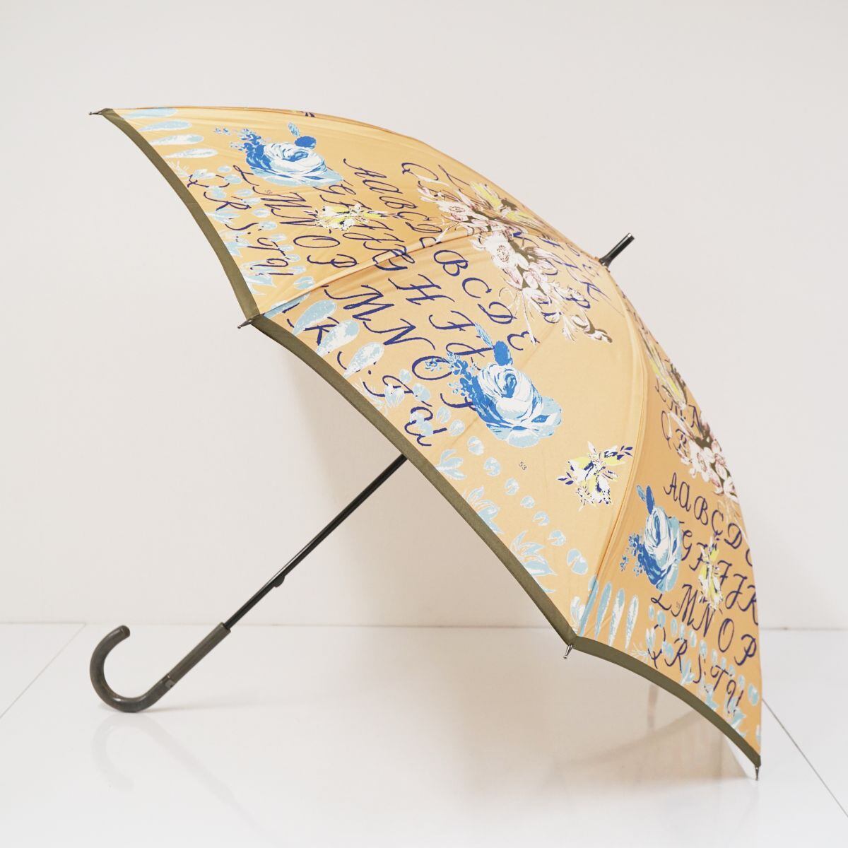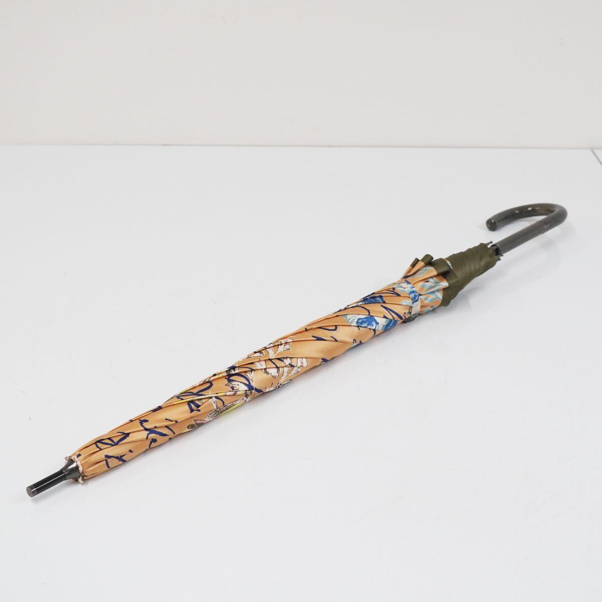 EPICE エピス 高級傘 USED美品 花とレタード柄 フラワー サーモンピンク×カーキ グラス骨 60cm A1506