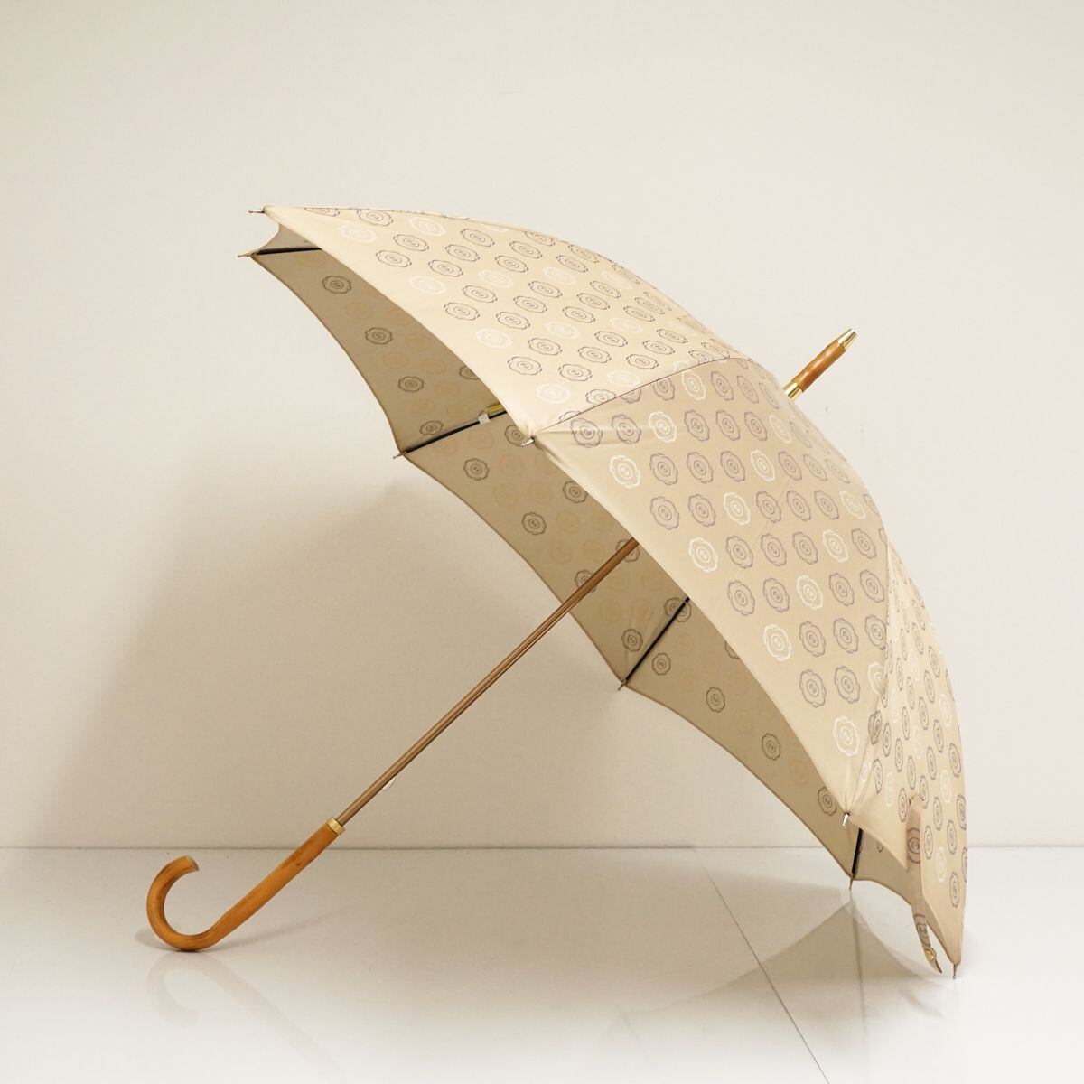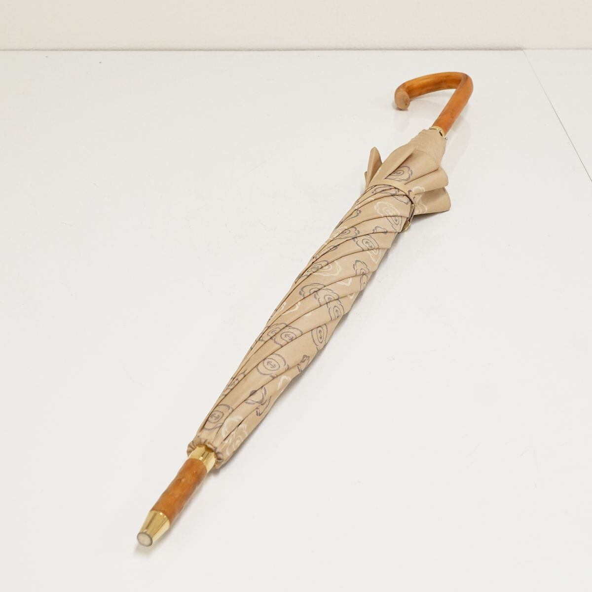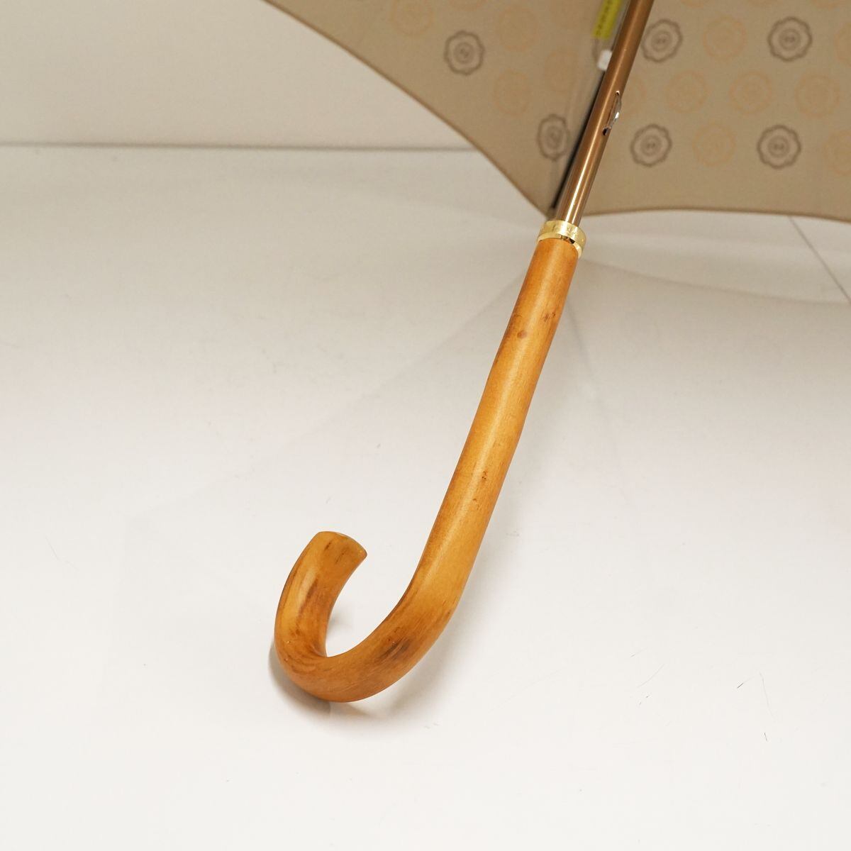 高級傘 HANWAY ハンウェイ USED品 花柄ロゴ ライトベージュ 木製手元 エレガント 60cm S1510