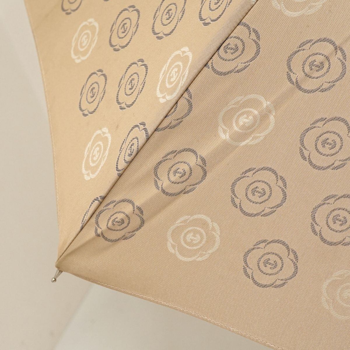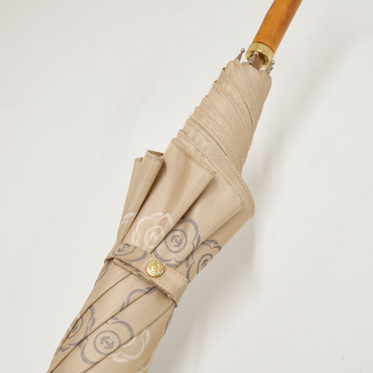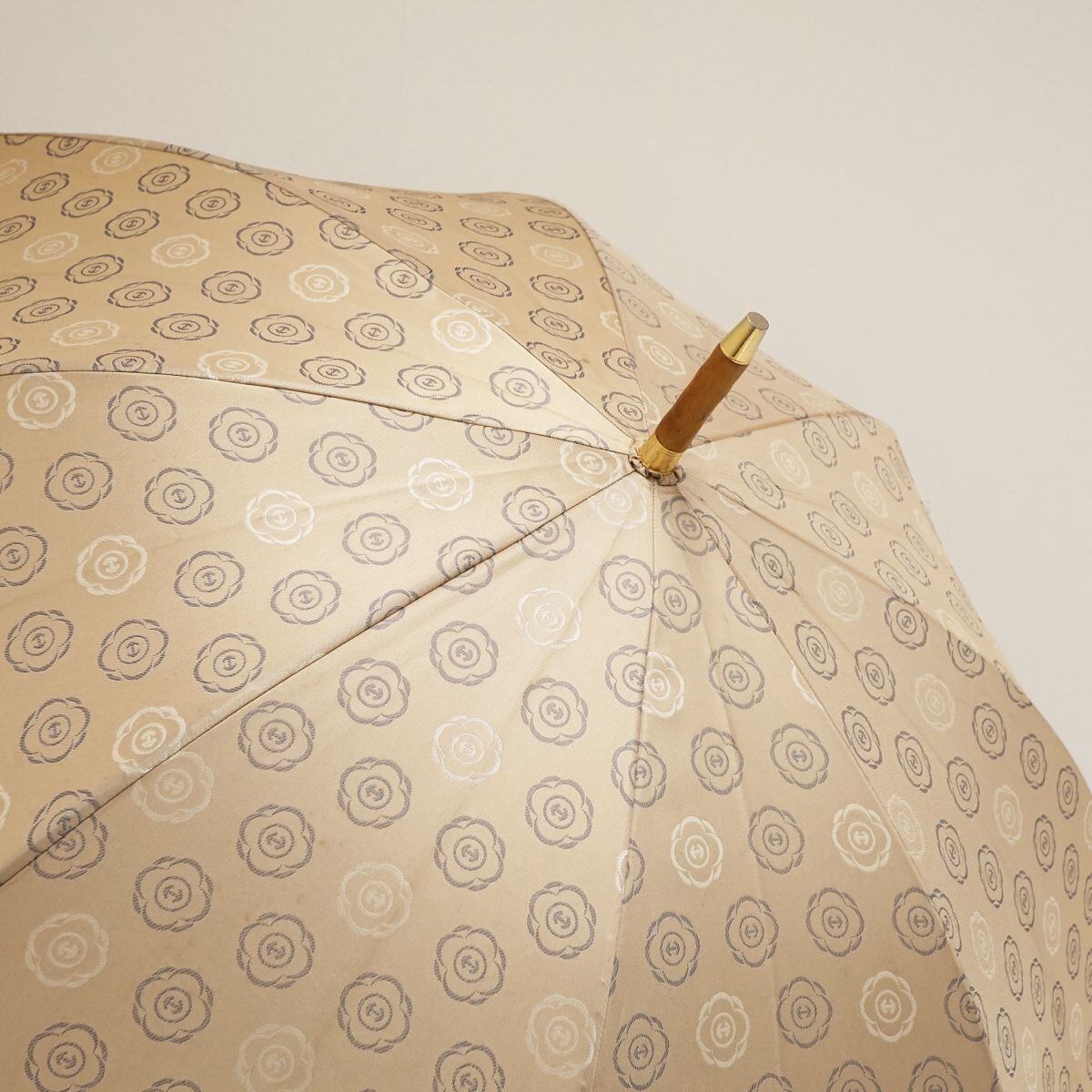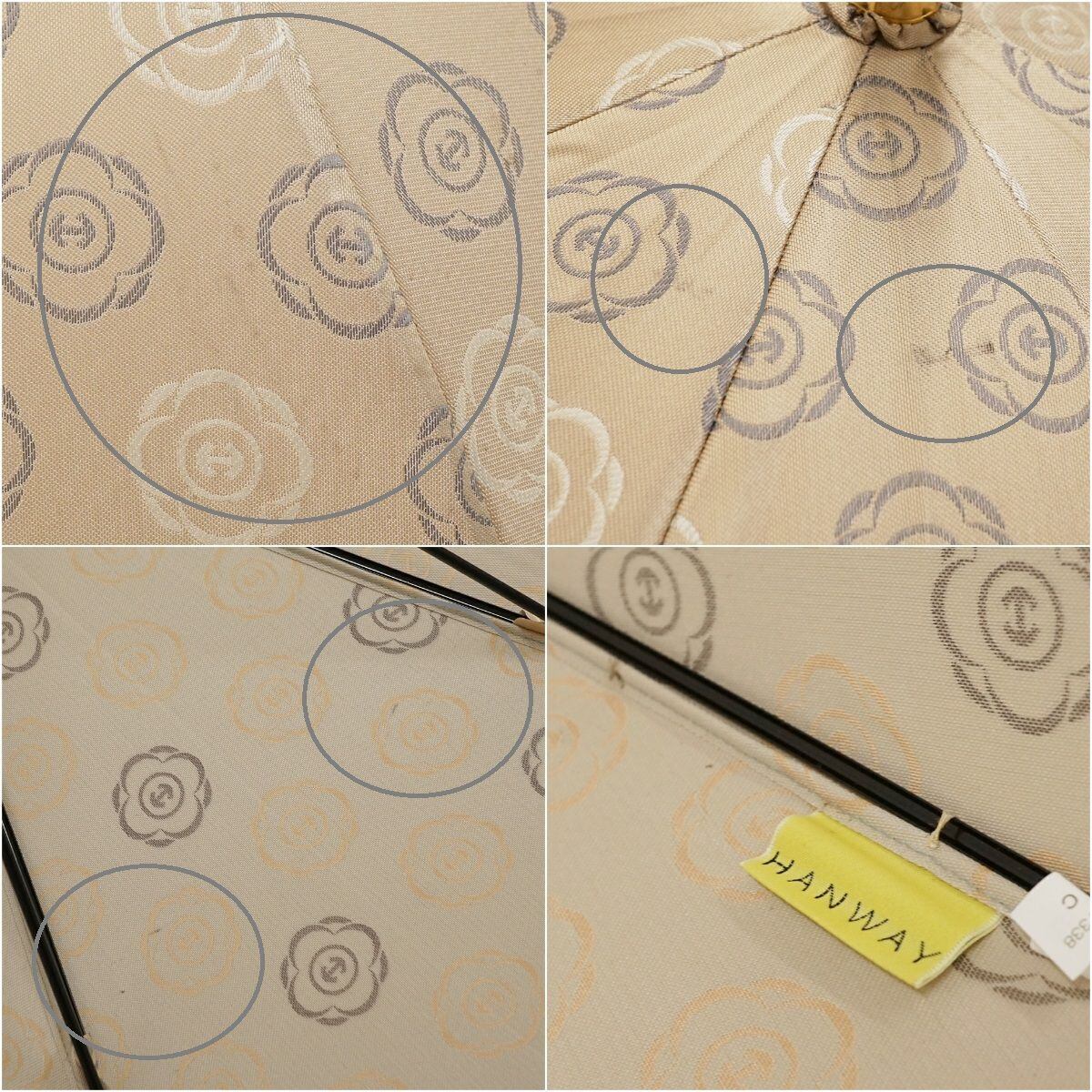 高級傘 HANWAY ハンウェイ USED品 花柄ロゴ ライトベージュ 木製手元 エレガント 60cm S1510