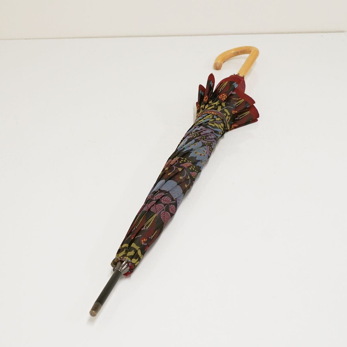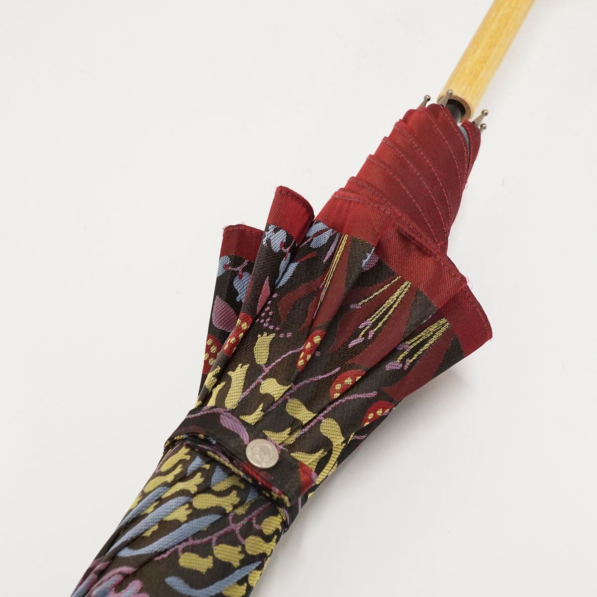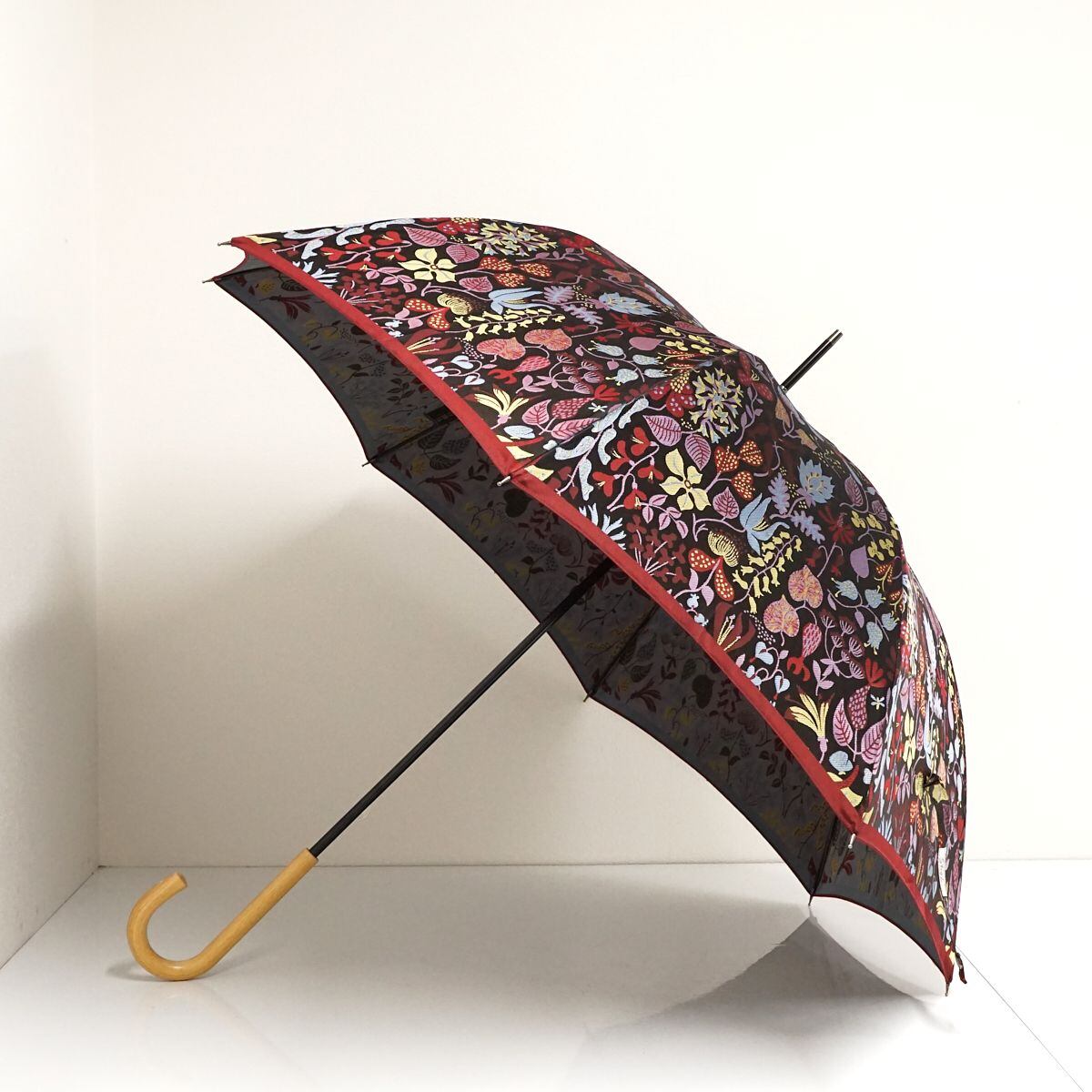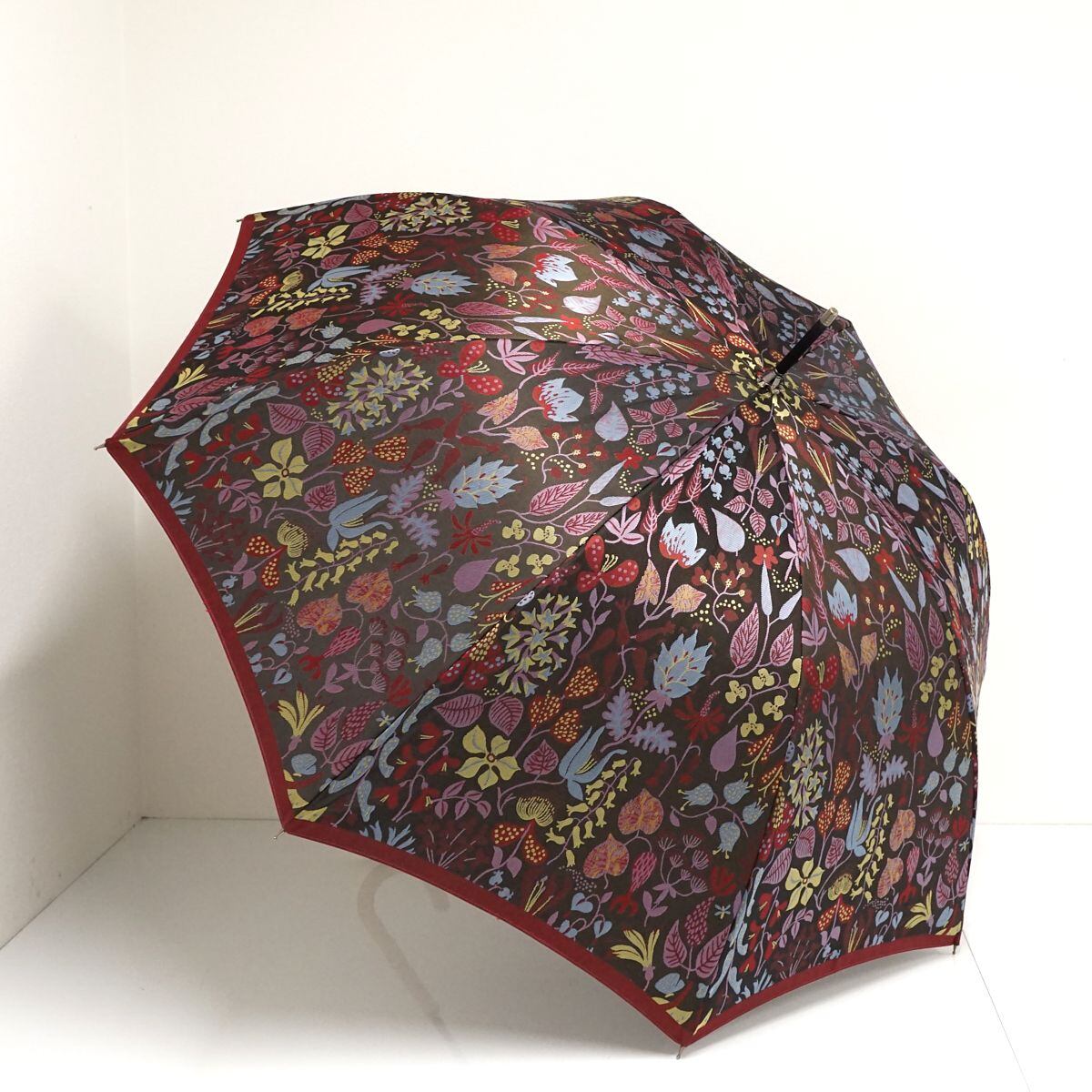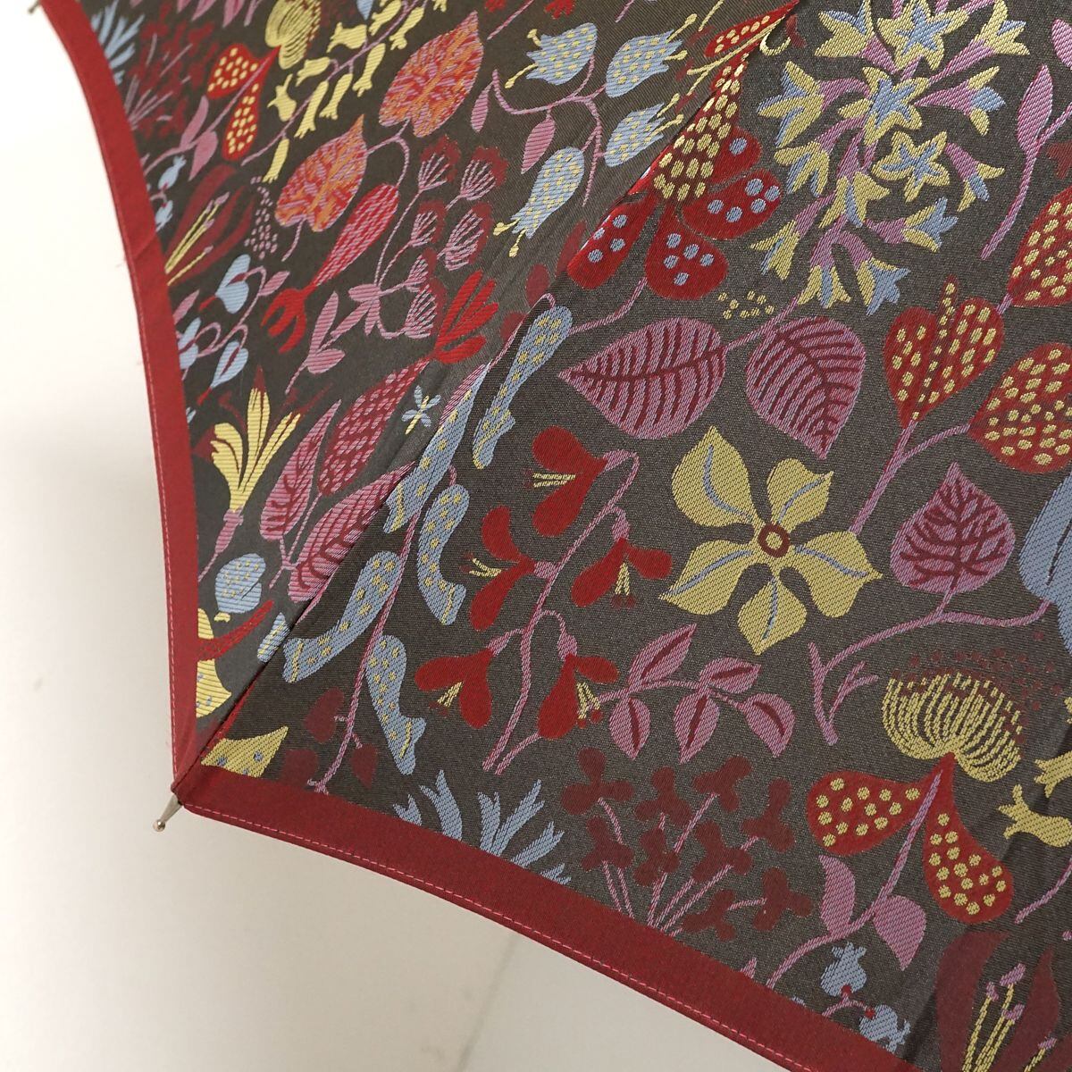 高級傘 槙田商店 Stig L. HERBARIUM USED美品 晴雨兼用雨傘 スティグ・リンドベリ ハーバリウム 北欧 植物柄 レッド 60cm S1513