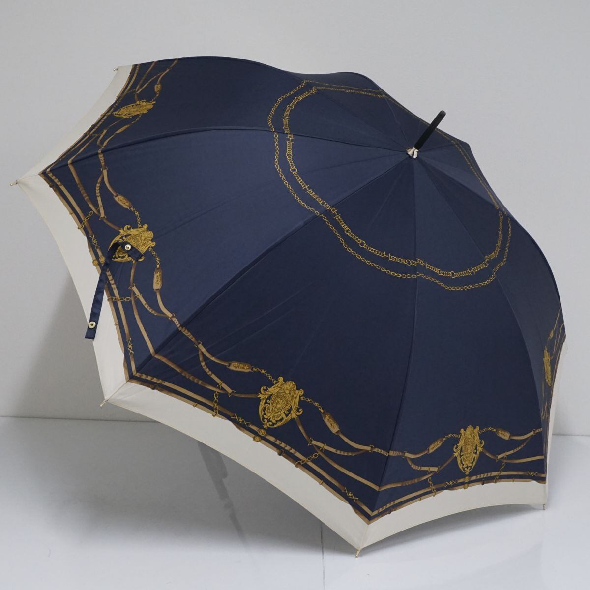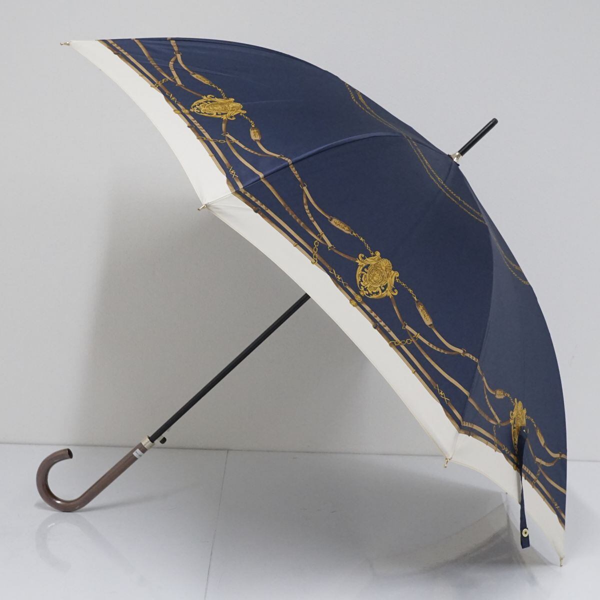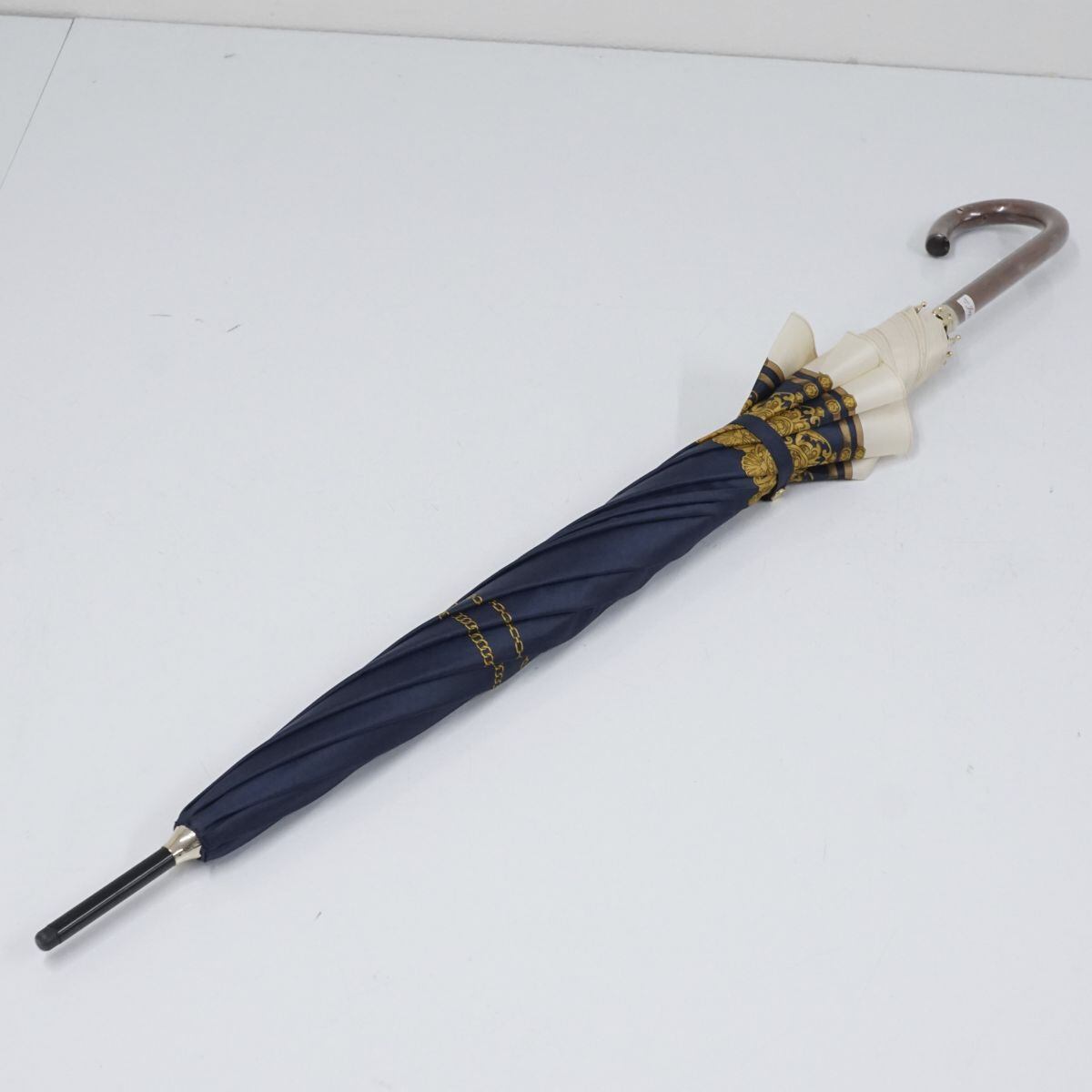 耐風傘 Aquascutum アクアスキュータム USED美品 ネイビー チェーン柄 ワンタッチ式 ジャンプ 60cm S2214
