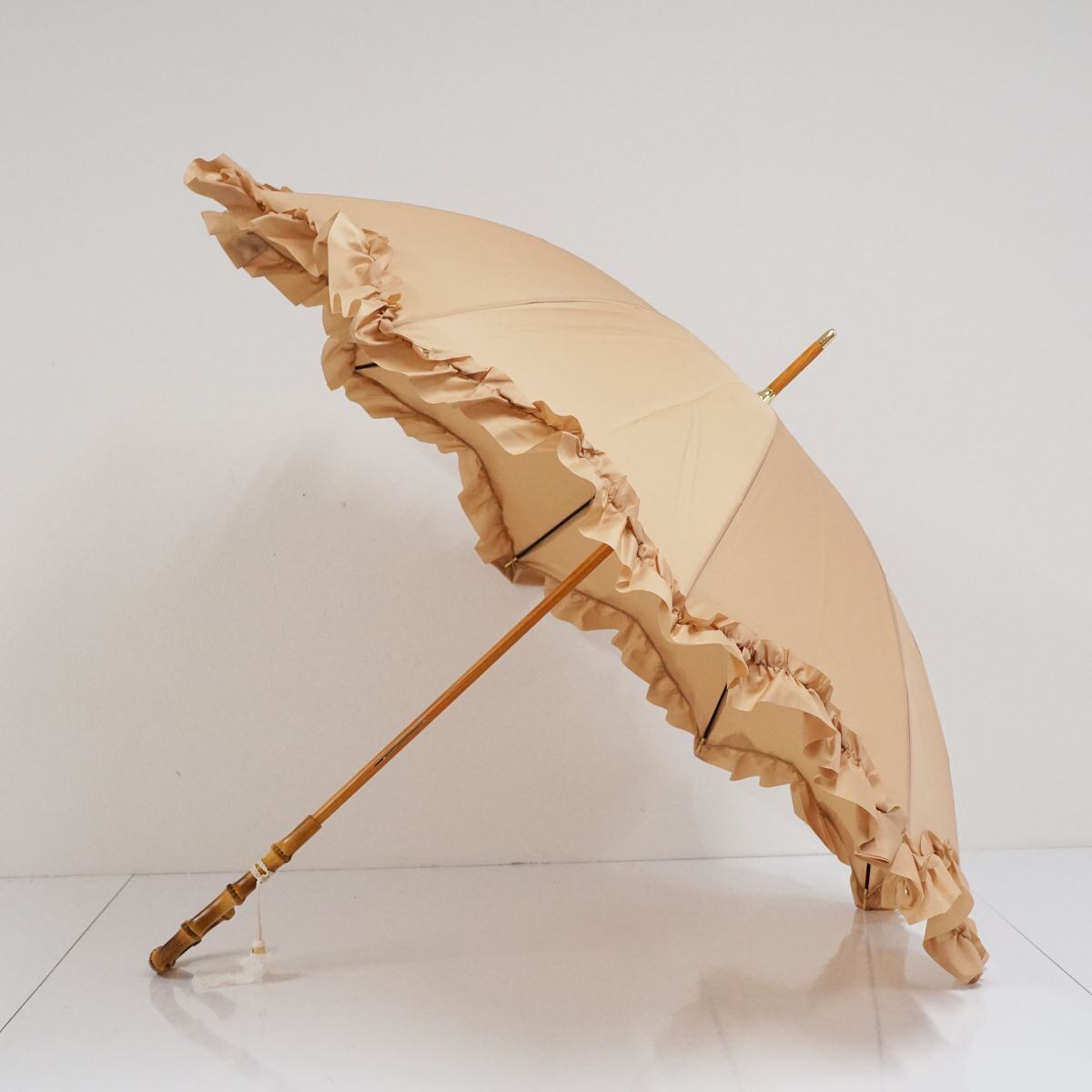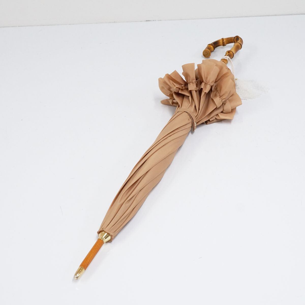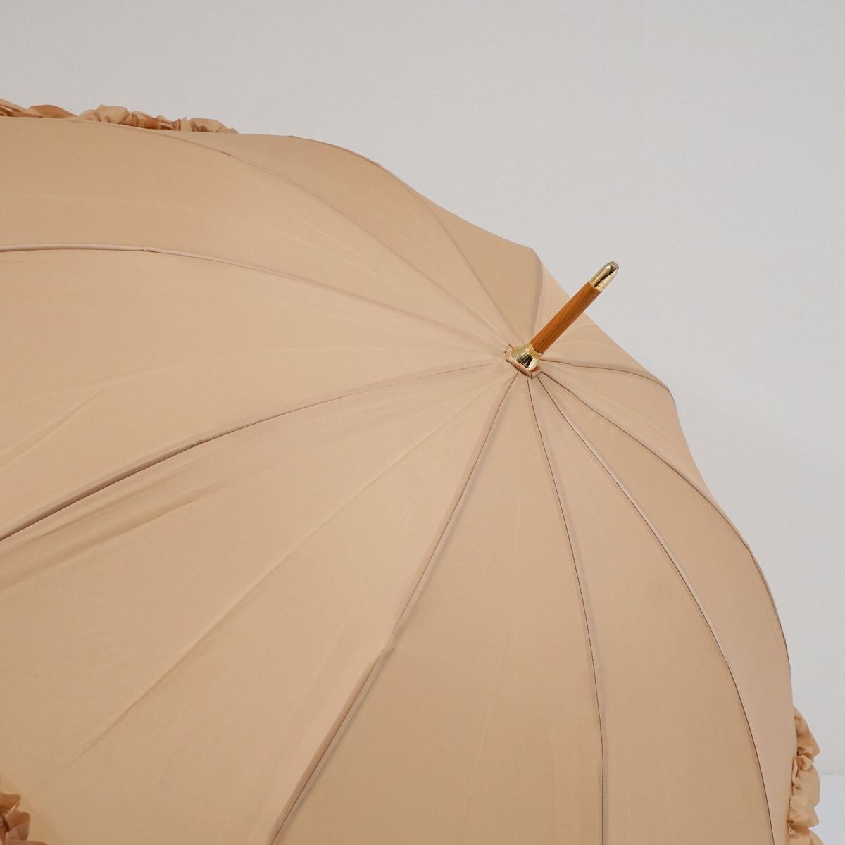 傘 solstiss paris ソルティス USED美品 ライトベージュ フリル レース 寒竹手元 無地 ベージュ シンプル 55cm S1519