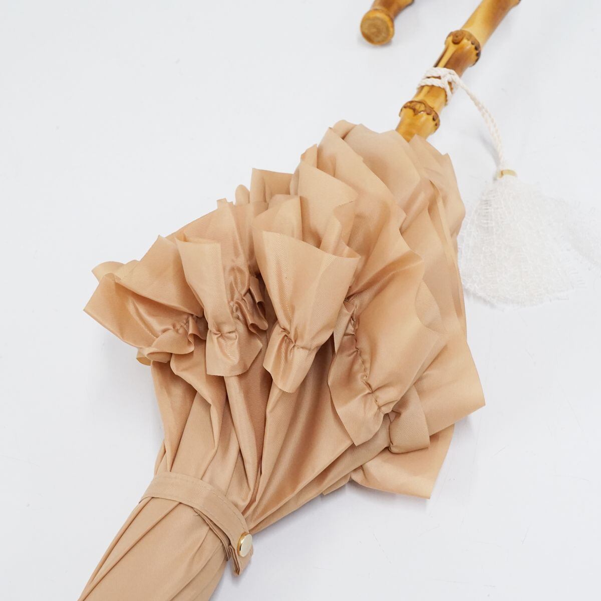 また、たたんだ際にもフリルとレースの存在感が際立ちます。