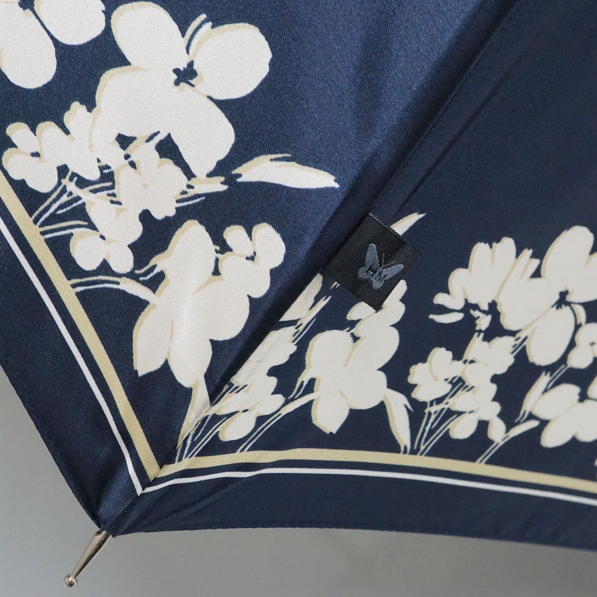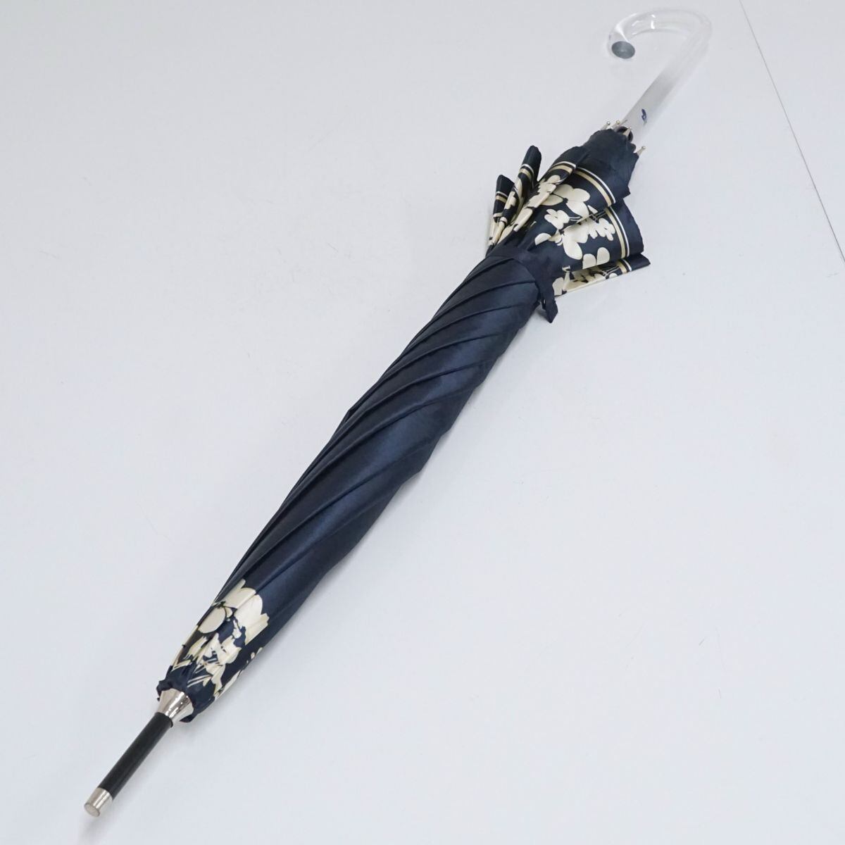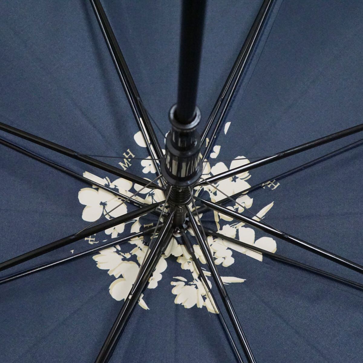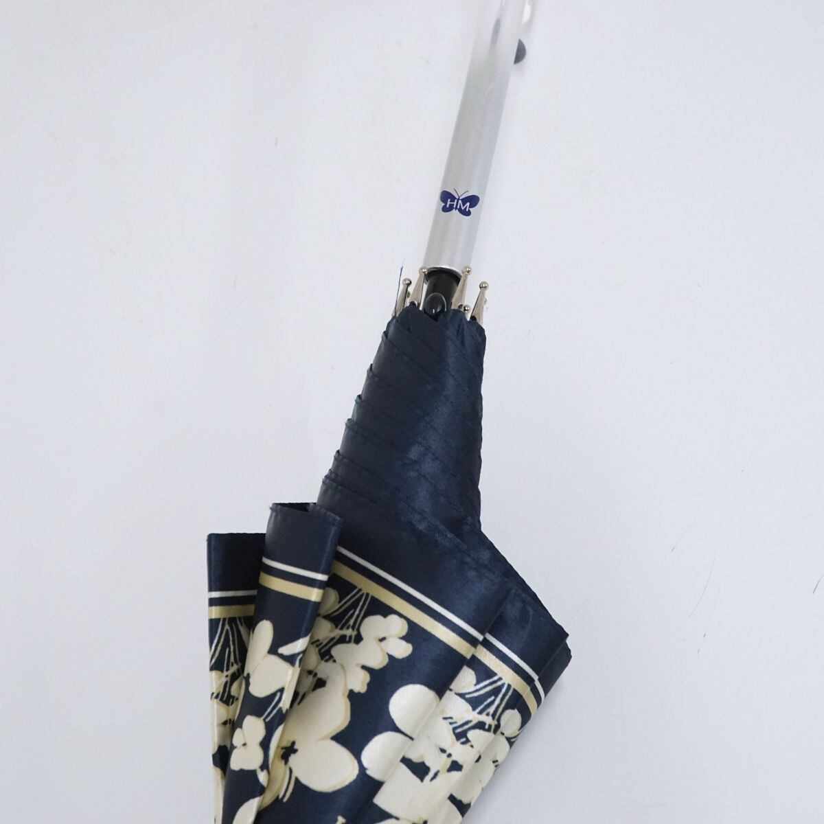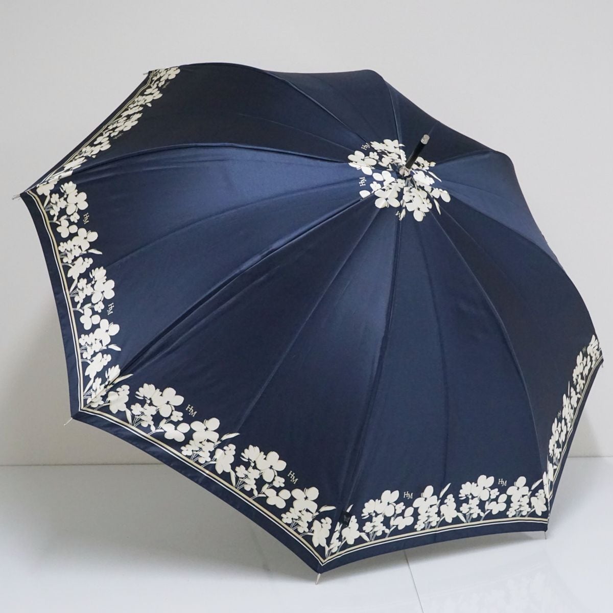 HANAE MORI ハナエモリ 傘 USED美品 モダン ネイビー フラワー グラス骨 ジャンプ 60cm S1530