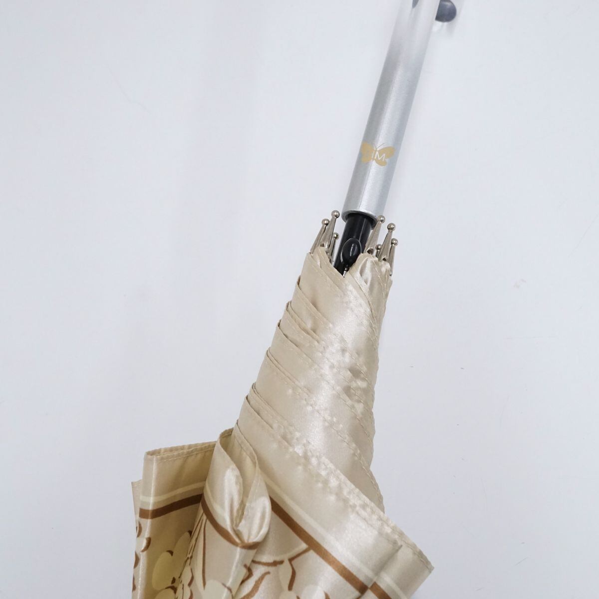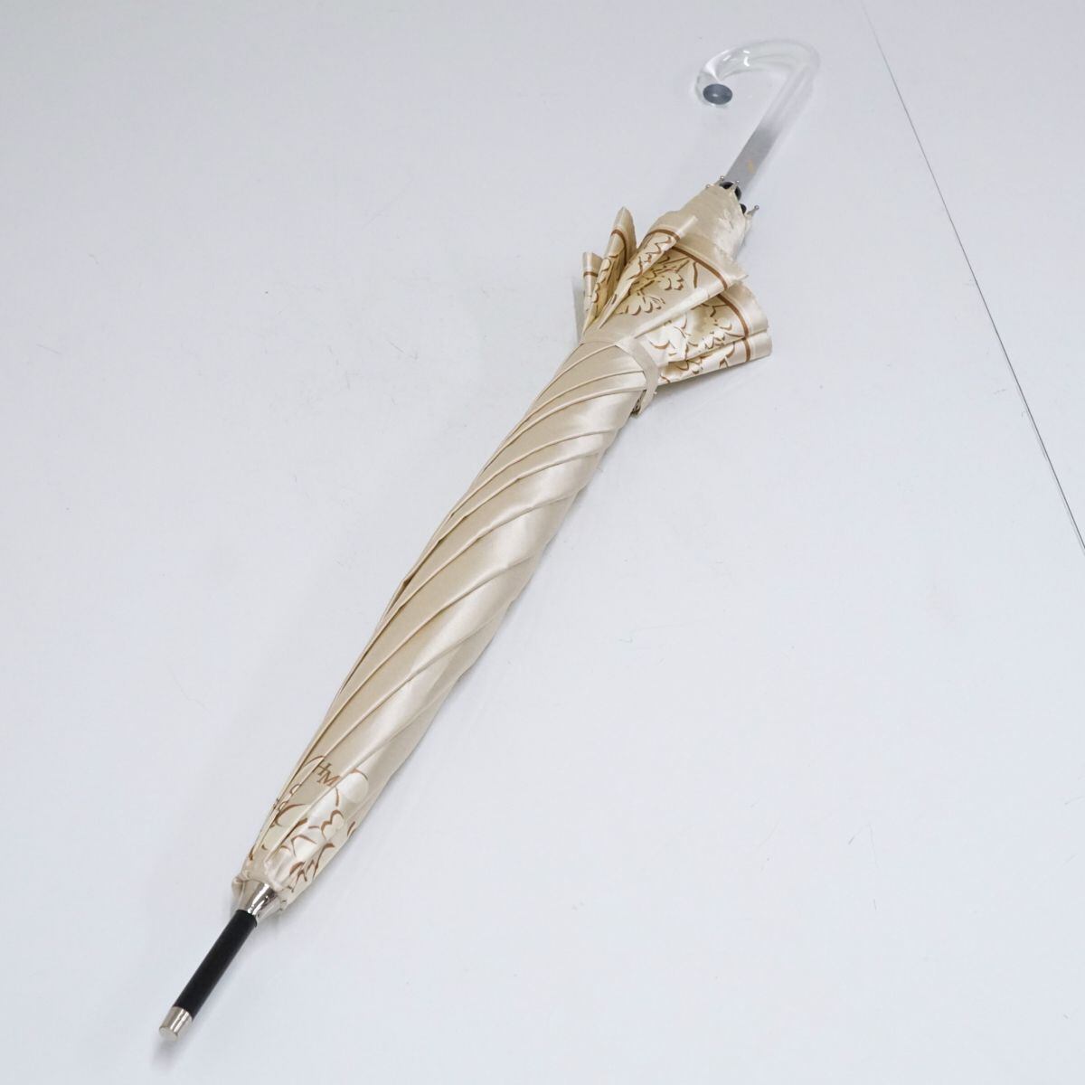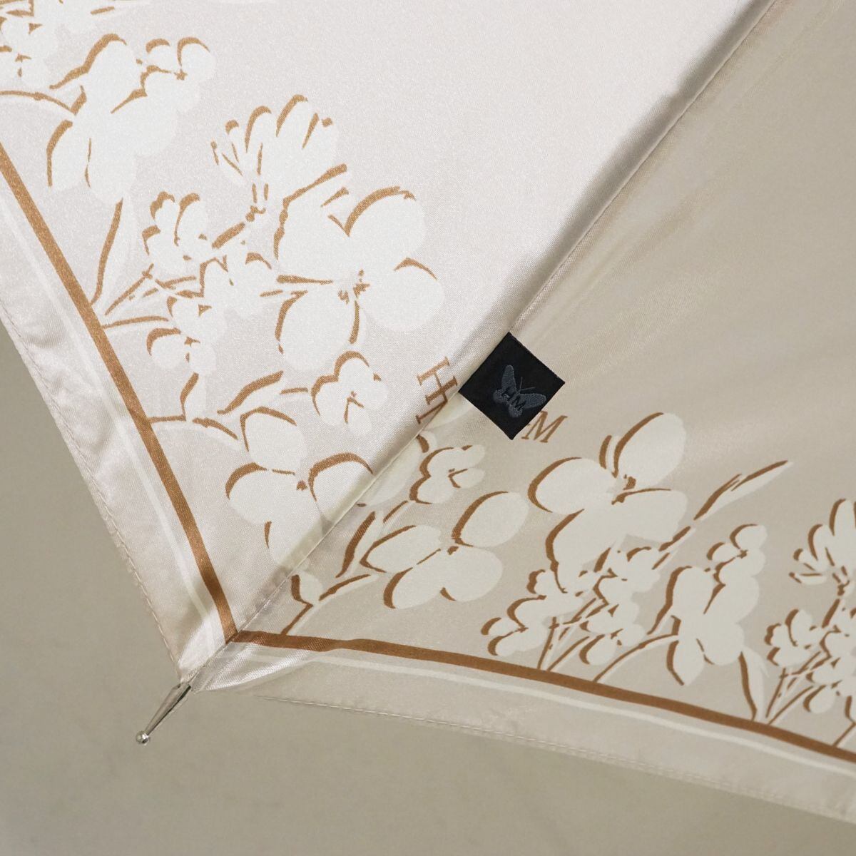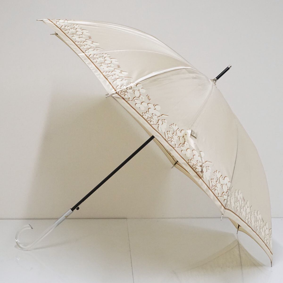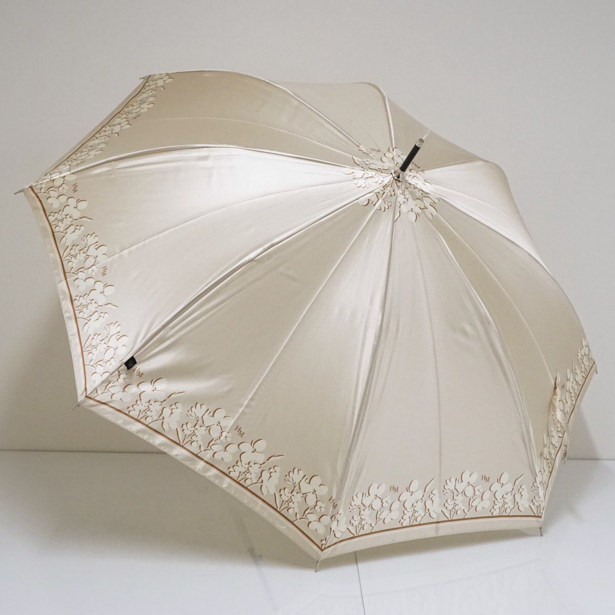 HANAE MORI ハナエモリ 傘 USED美品 モダン ベージュ フラワー グラス骨 ジャンプ 60cm S1528