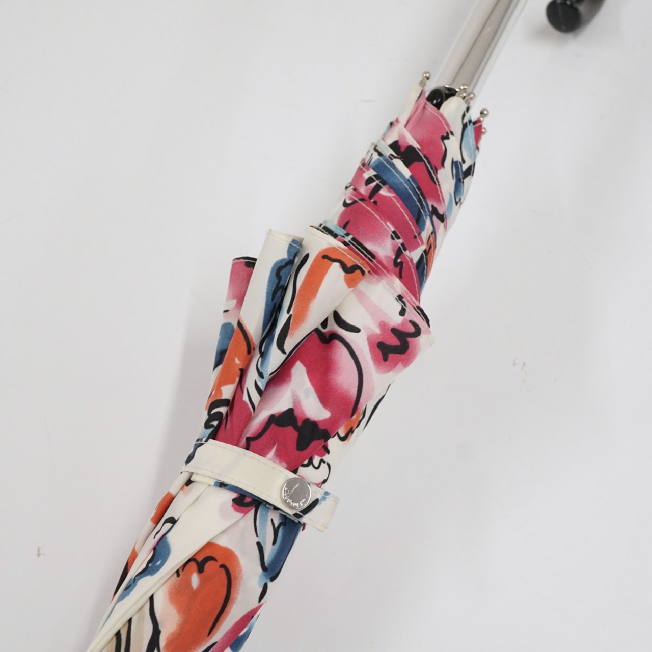 耐風傘 JILLSTUART ジルスチュアート USED美品 雨傘 花柄 ホワイト アート グラス骨 ジャンプ 60cm A2785