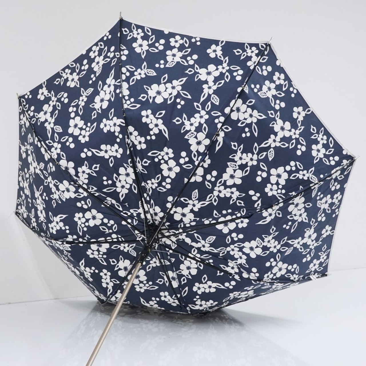 耐風傘 mila schon ミラショーン USED品 フラワープリント 花柄 ロゴ ジャンプ グラス骨 ネイビー 風に強い ブランド 60cm A1535