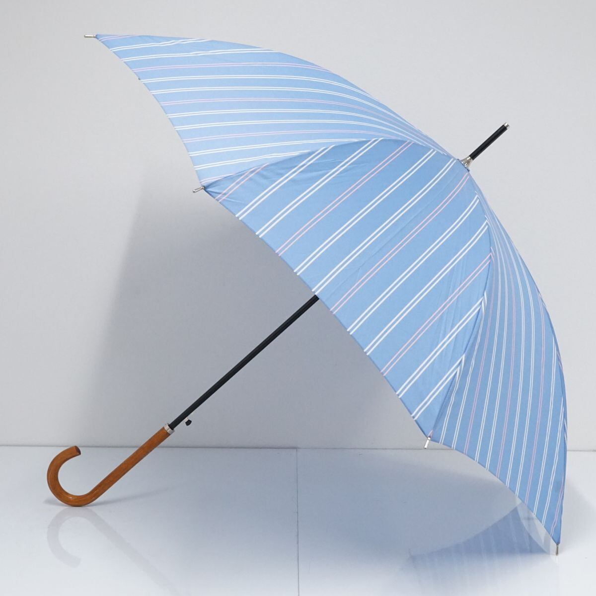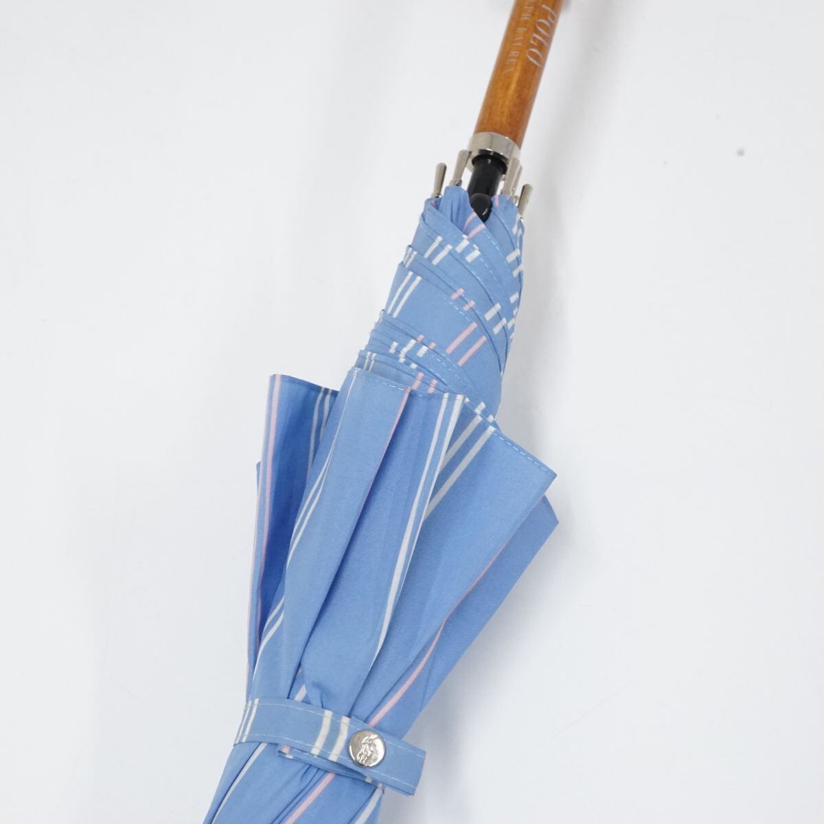 傘 Polo Ralph Lauren ポロラルフローレン USED美品 ストライプ ライトブルー ポロ 高級 ジャンプ 60cm S1543