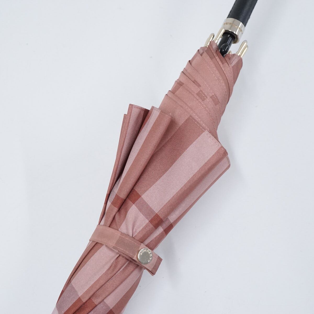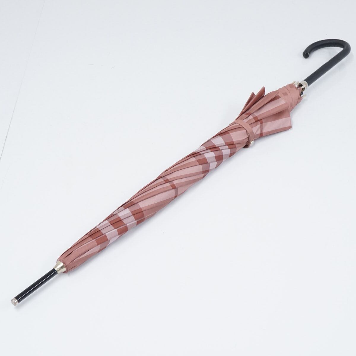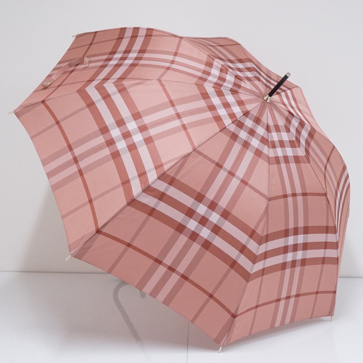 傘 BURBERRY バーバリー USED品 チェック レディース ピンク ジャガード ジャンプ 高級 60cm S2558