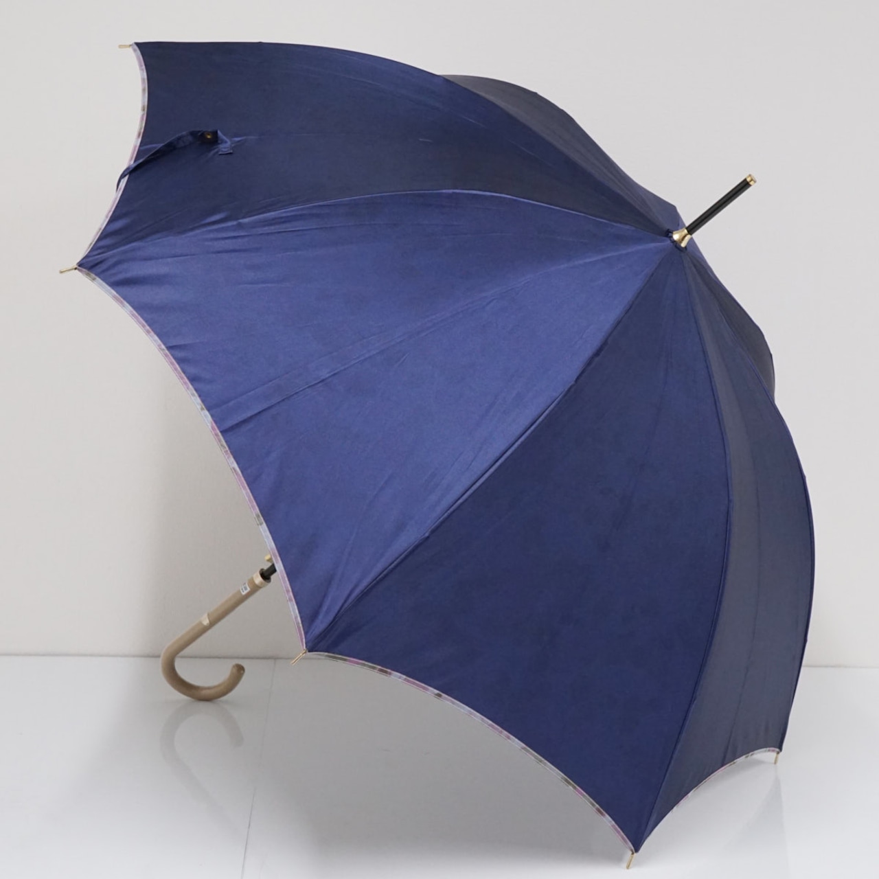 裏地に華やかなフラワープリントをあしらい、傘の内側に優美な世界観が広がるデザインです。