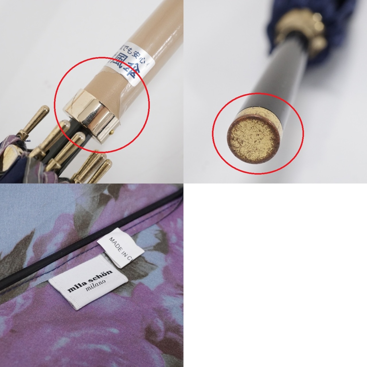耐風傘 mila schon ミラショーン USED美品 フラワープリント 花柄 ジャンプ ネイビー グラス骨 風に強い 60cm S2357