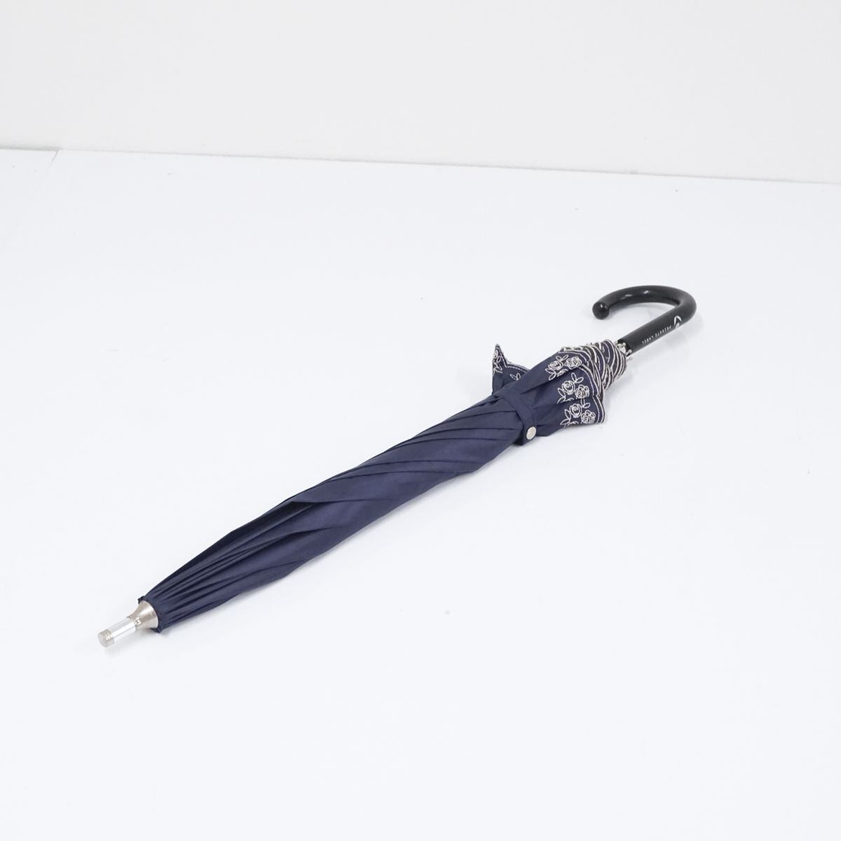 Private Label プライベートレーベル 晴雨兼用 日傘 USED美品 フラワー刺繍 ロゴ ネイビー UV 遮光 47cm BT1552
