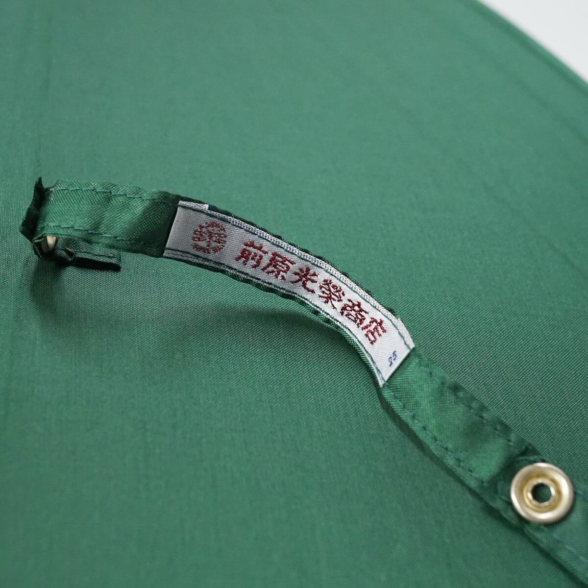 お色はグリーンで、薄手のポリエステル生地(富士絹)を用い、美しいシルクのような輝きがあります。
