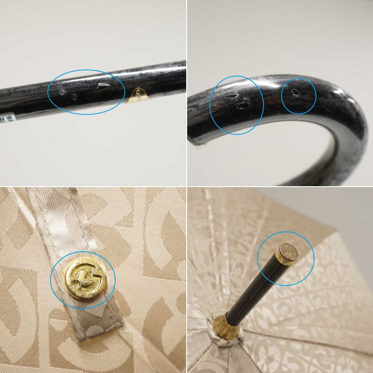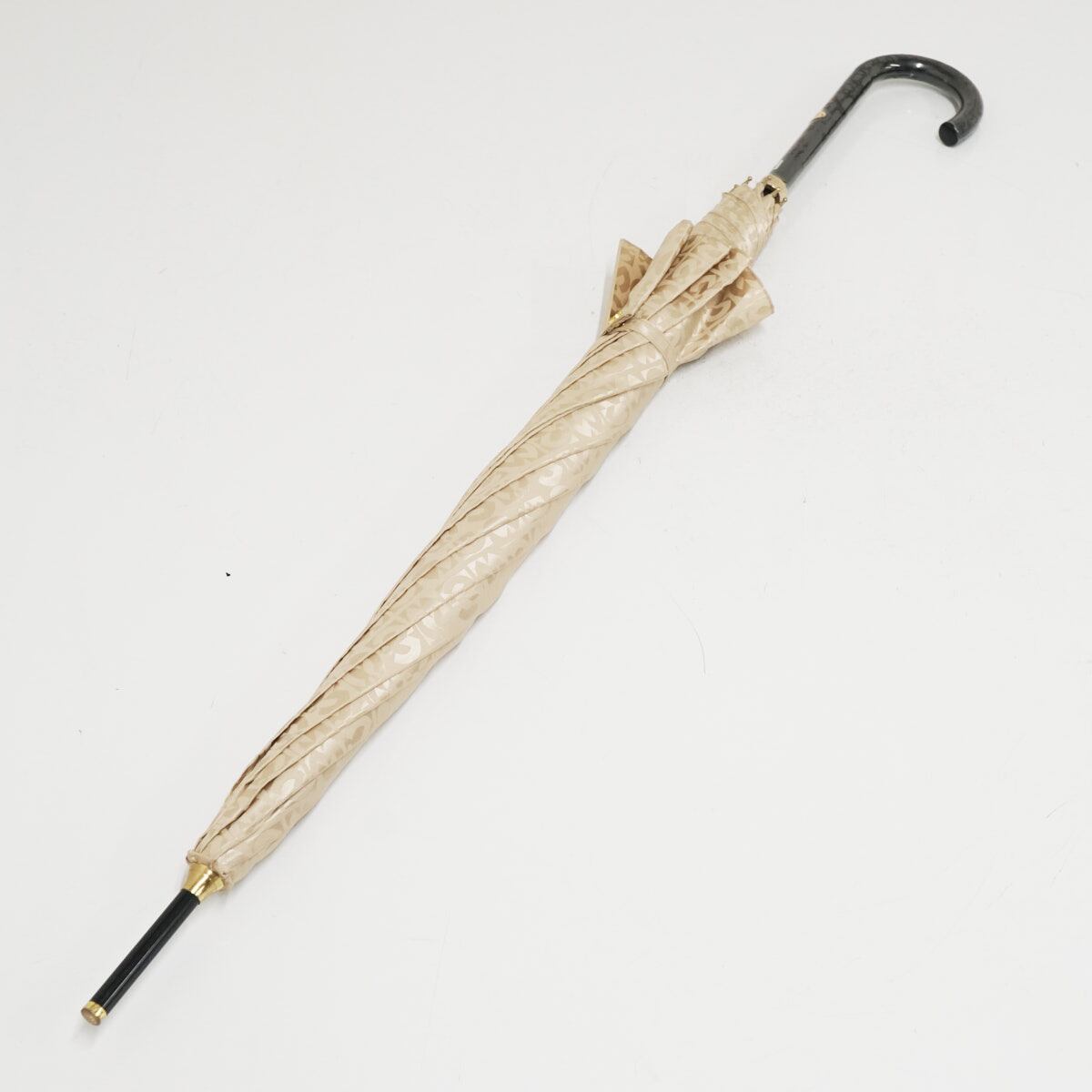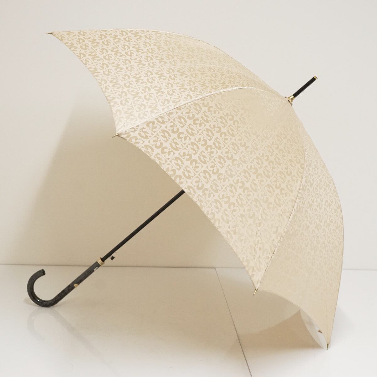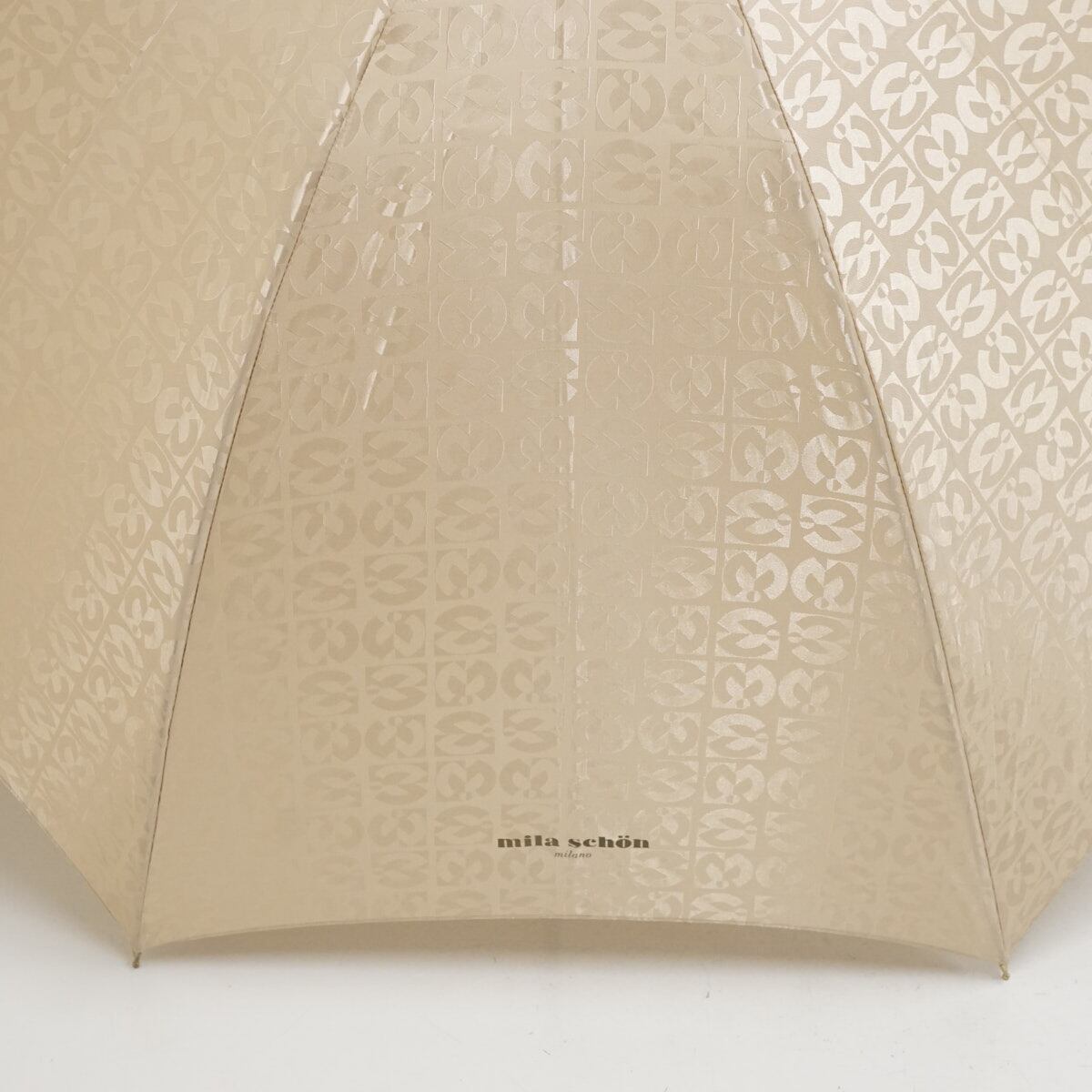 傘 mila schon ミラショーン 耐風傘 USED美品 ロゴジオメトリー ベージュ ジャンプ ブランド 60cm A3484