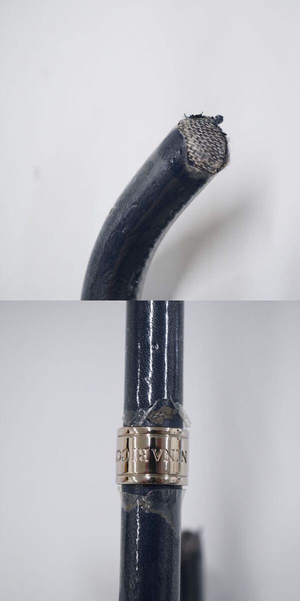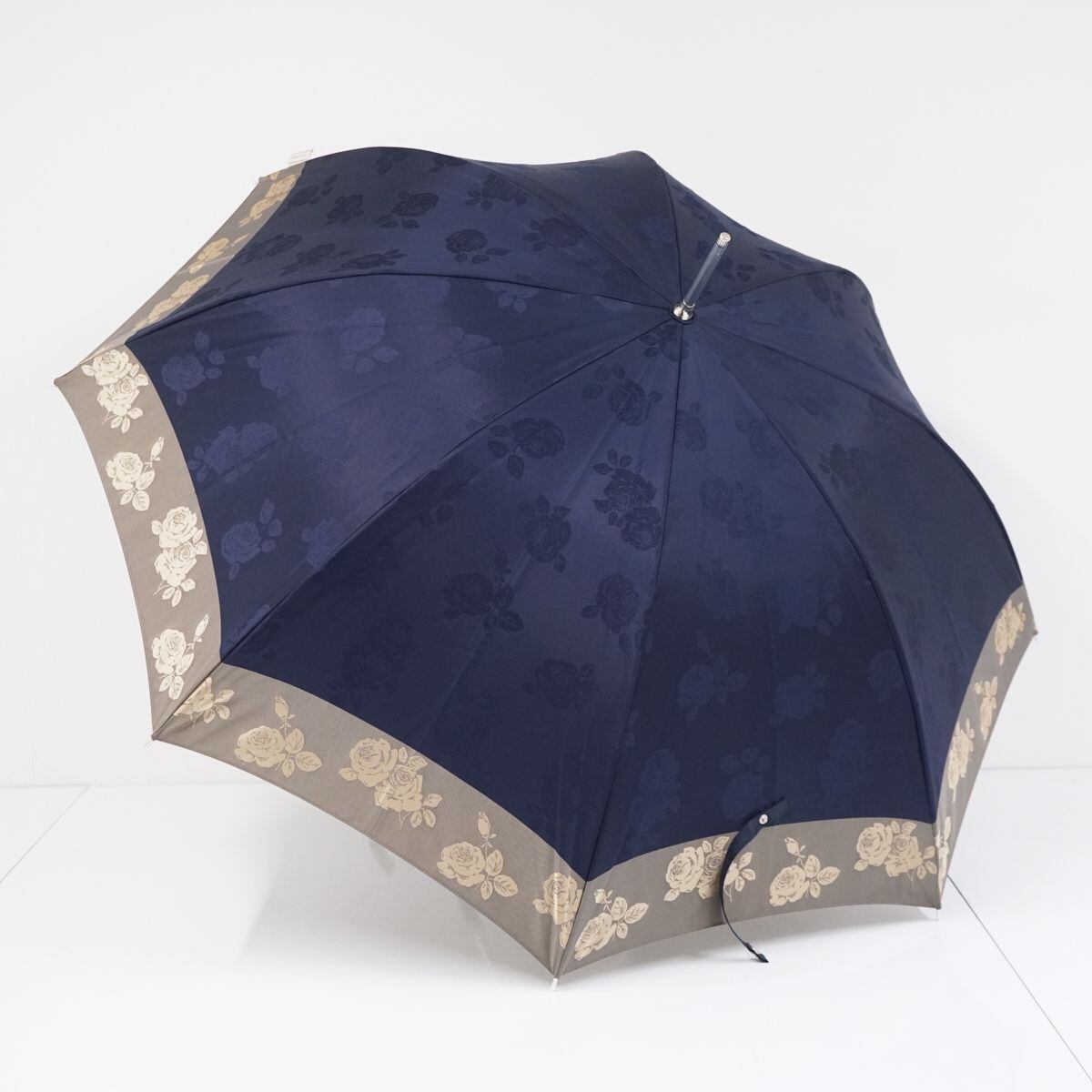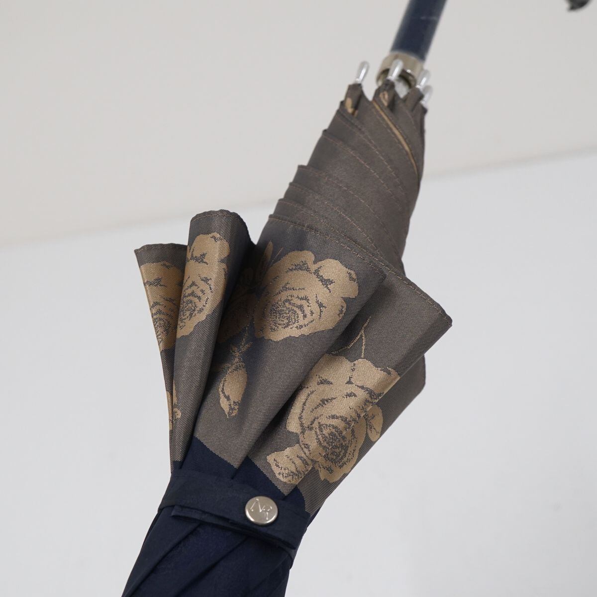 傘 NINA RICCI ニナリッチ USED品 ネイビー エレガント ジャガード フラワー バイカラー ロゴ グラス骨 60cm A1505