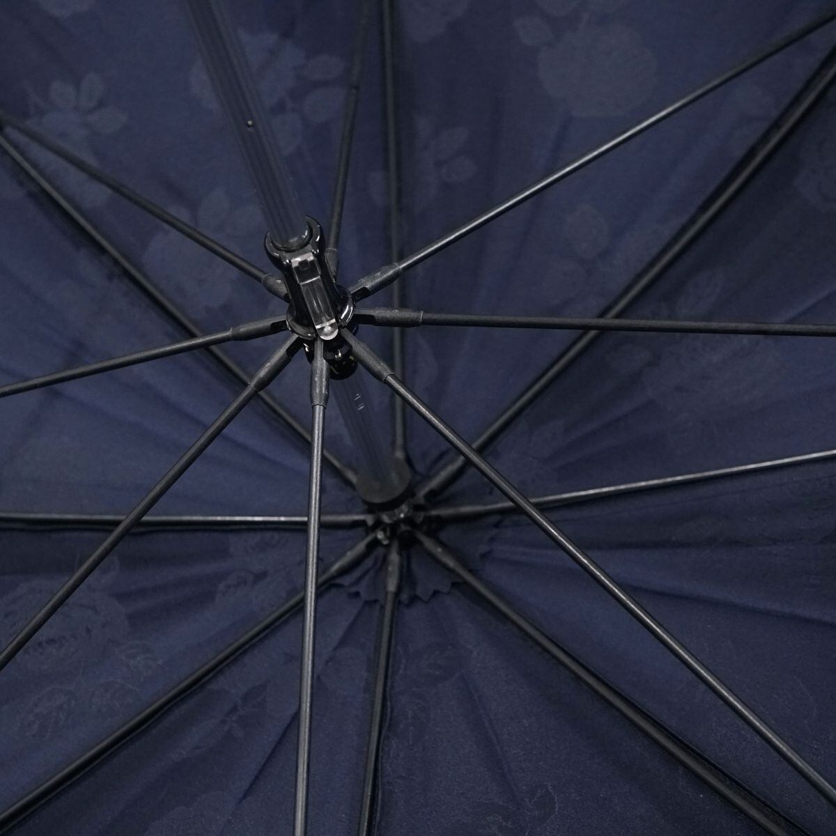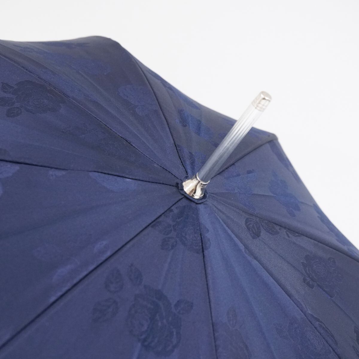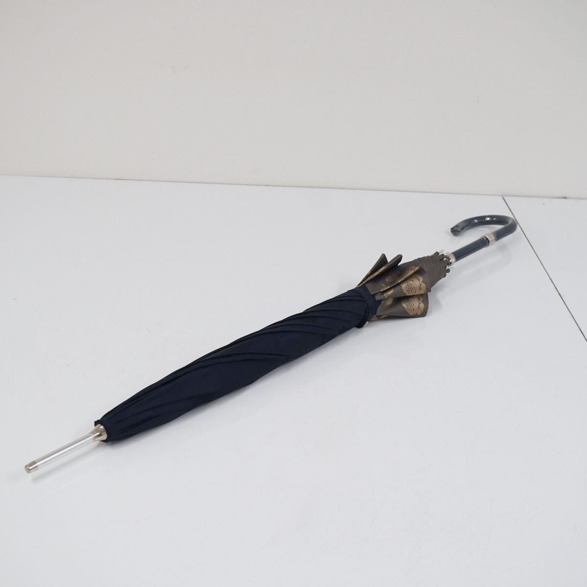 傘 NINA RICCI ニナリッチ USED品 ネイビー エレガント ジャガード フラワー バイカラー ロゴ グラス骨 60cm A1505