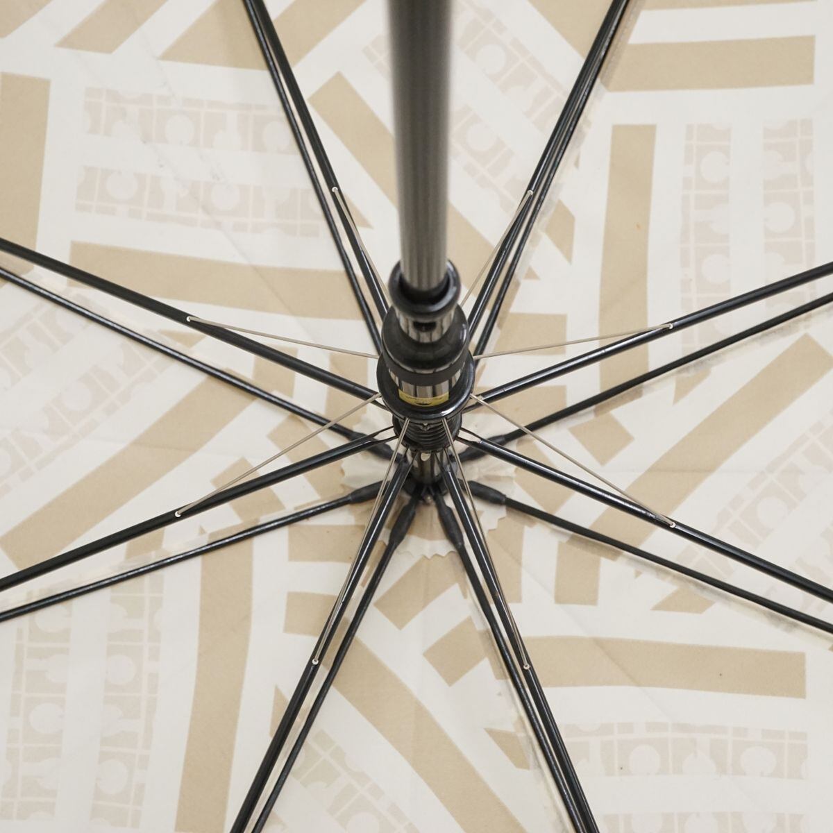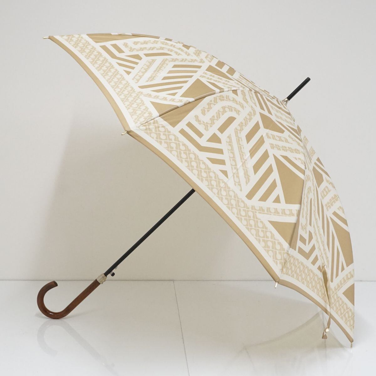 傘 GHERARDINI ゲラルディーニ USED品 ロゴ ジオメトリック ベージュ 木製手元 グラス骨 ジャンプ 軽量 60cm A1577