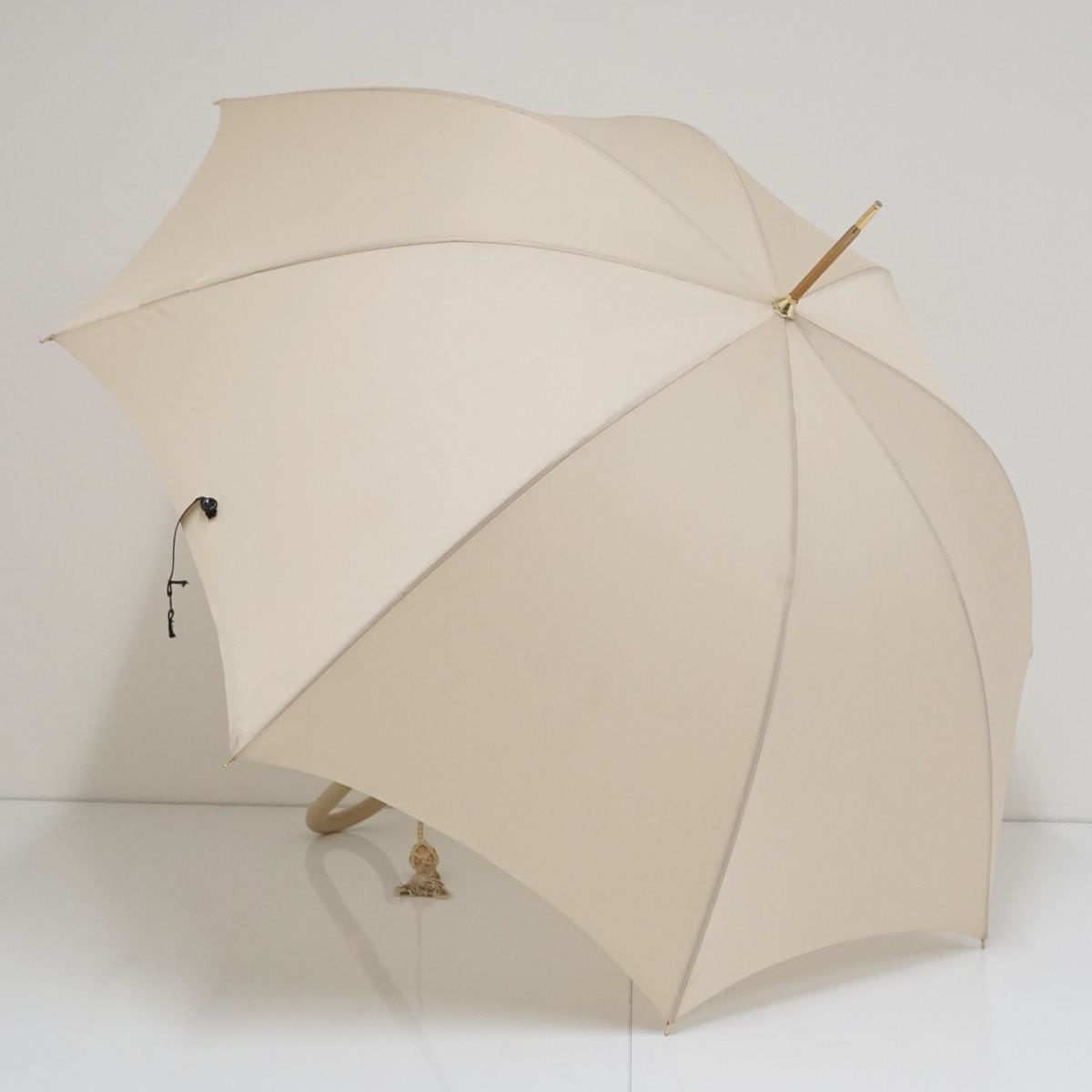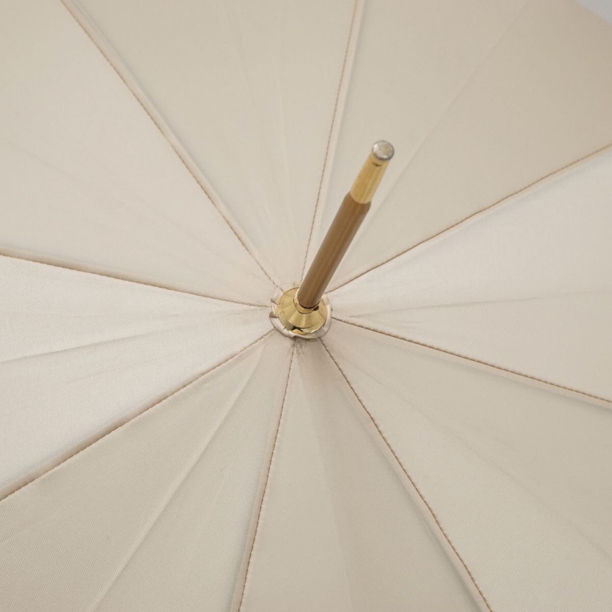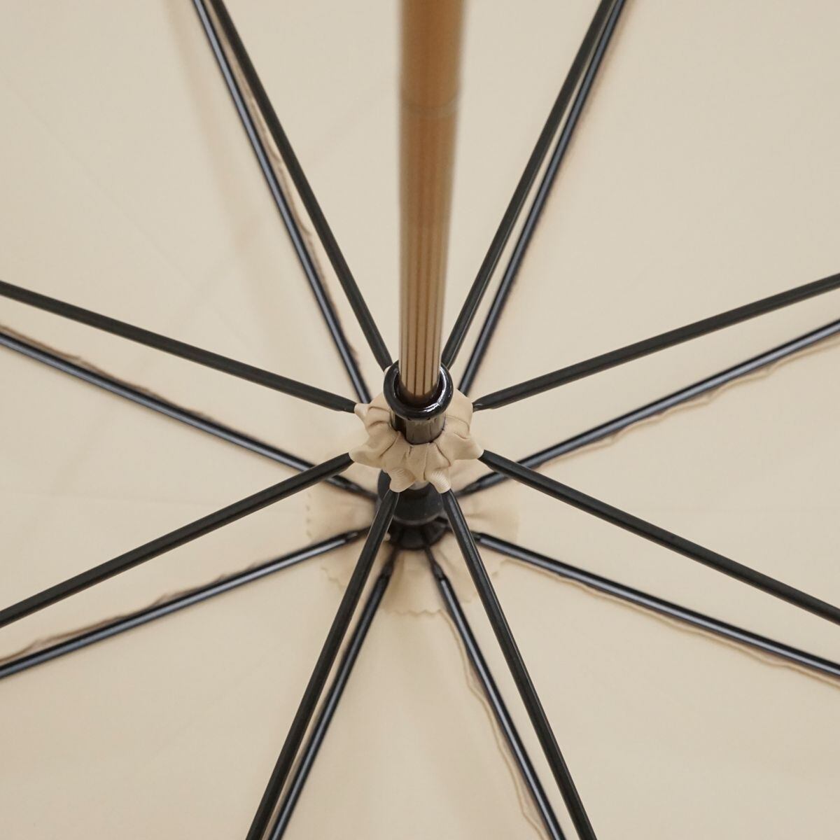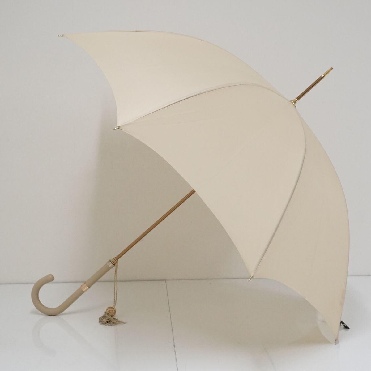 高級感を感じさせる張りのあるライトベージュの傘生地がクールな印象です。