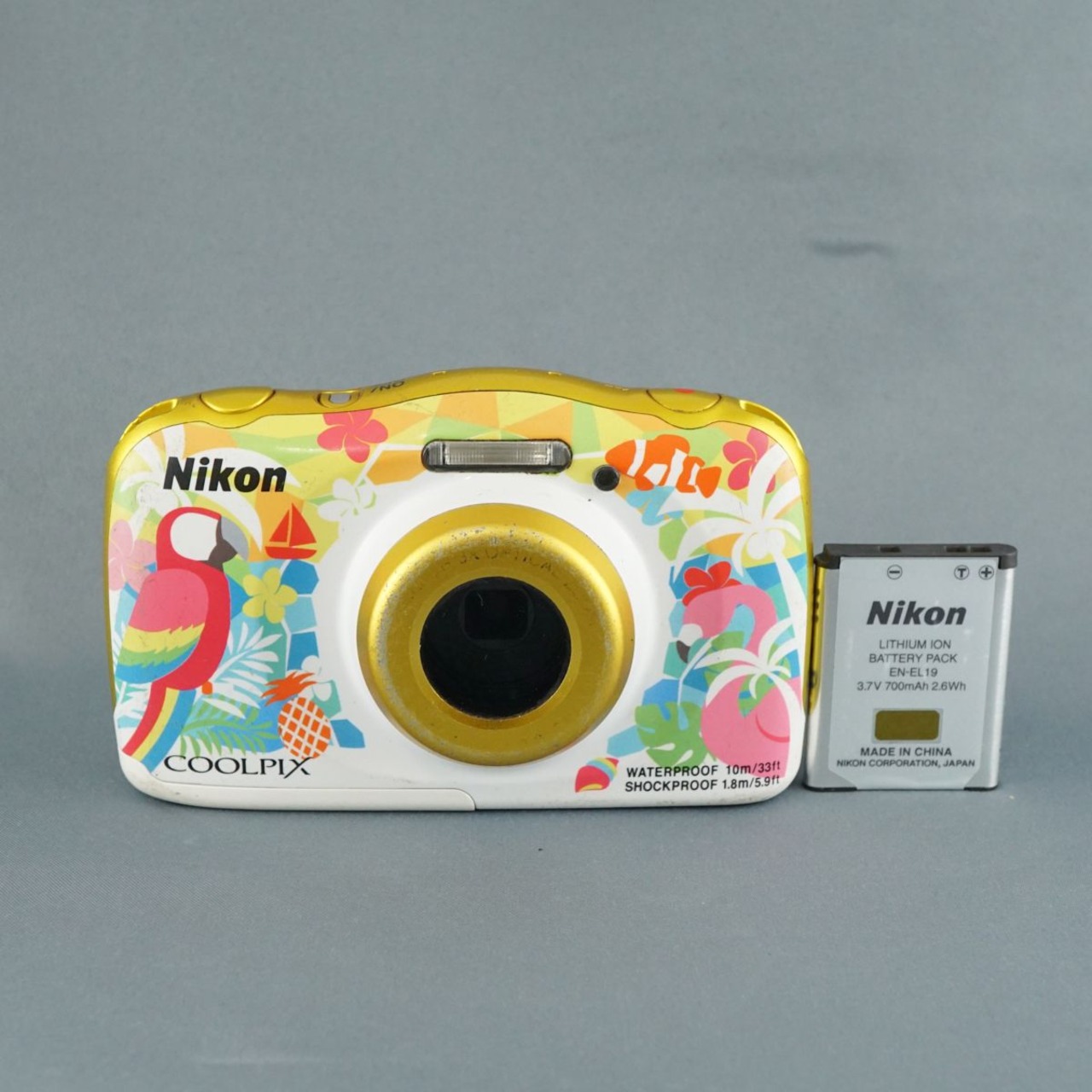 Nikon COOLPIX W150 USED品 デジタルカメラ 本体+バッテリー 防水 耐衝撃 タフ Wi-Fi アウトドア 旅行 水中 リゾート柄 完動品 中古 CP7372
