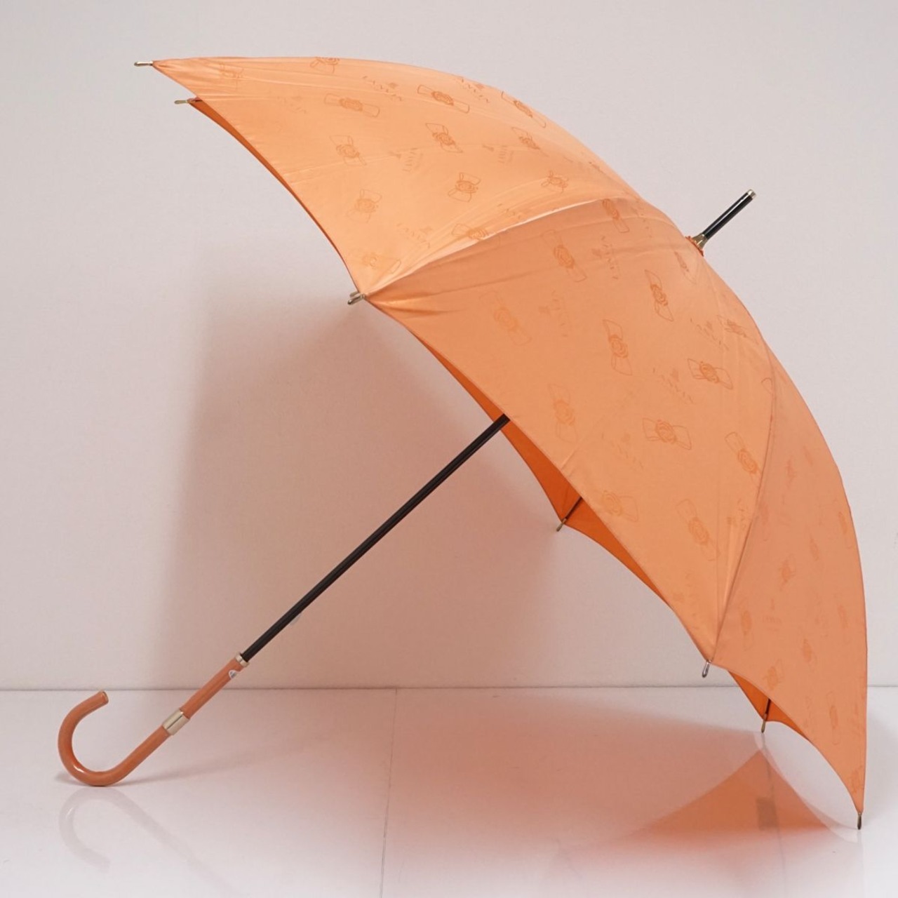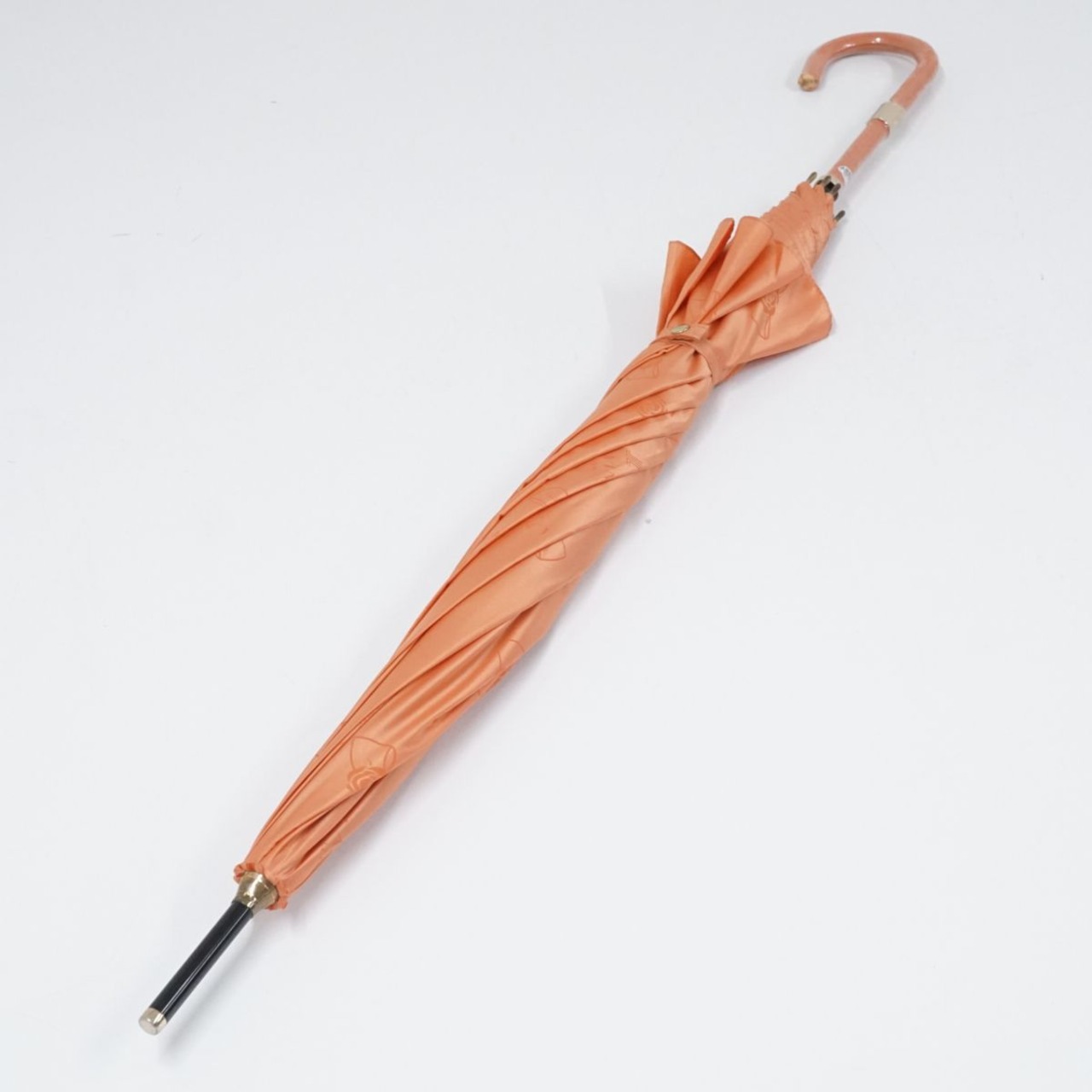 傘 LANVIN COLLECTION ランバンコレクション USED品 オレンジ リボン ロゴ カーボン レザー手元 60cm A1597