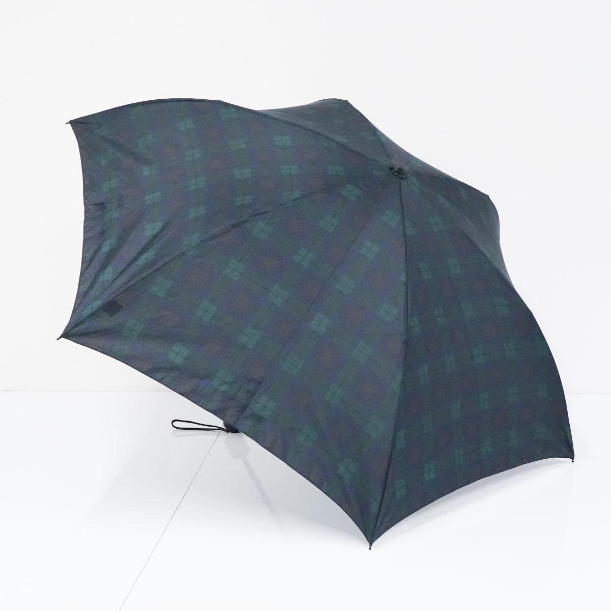 無印良品の2通りにたためる折りたたみ傘です。グリーン×ネイビーのチェックデザインになります。