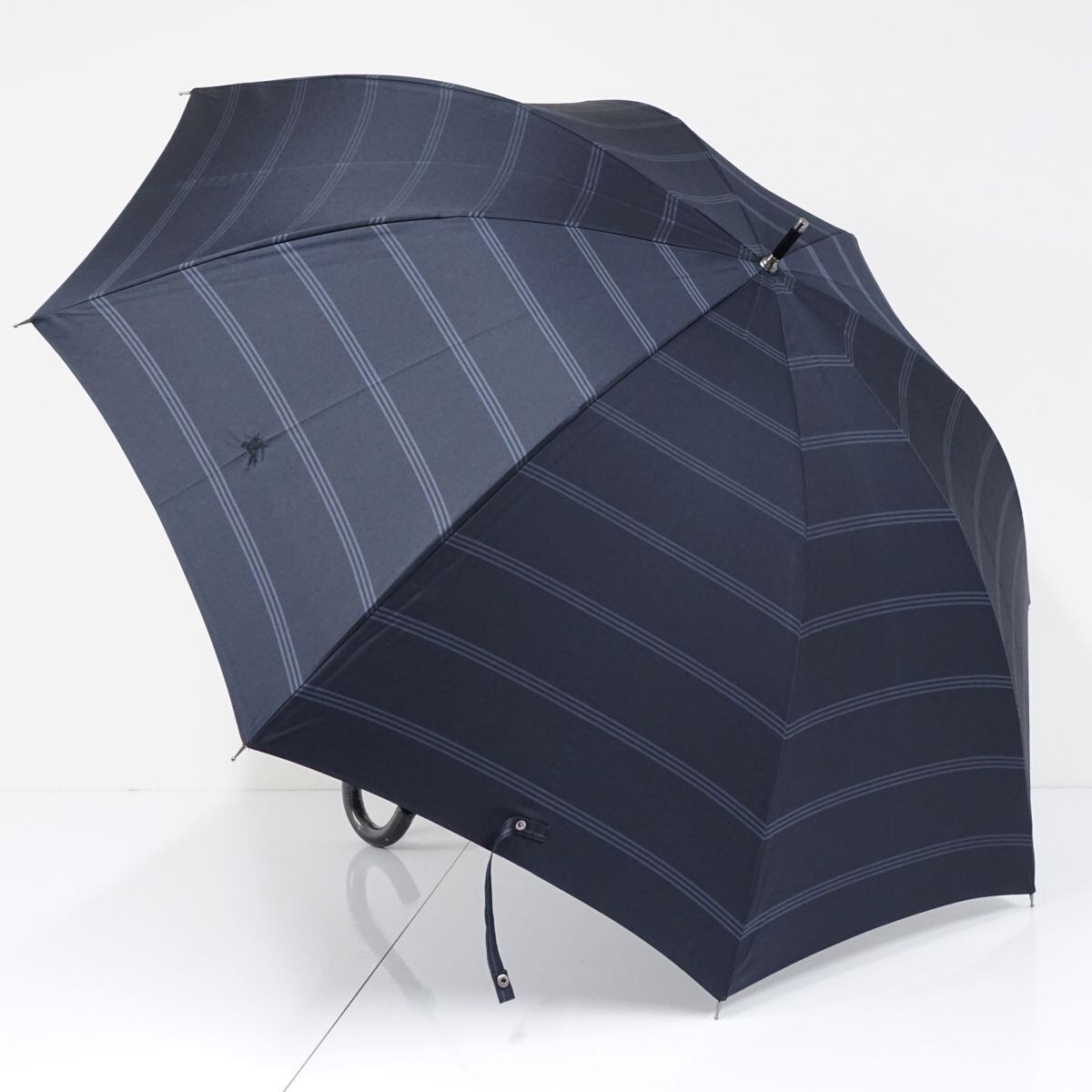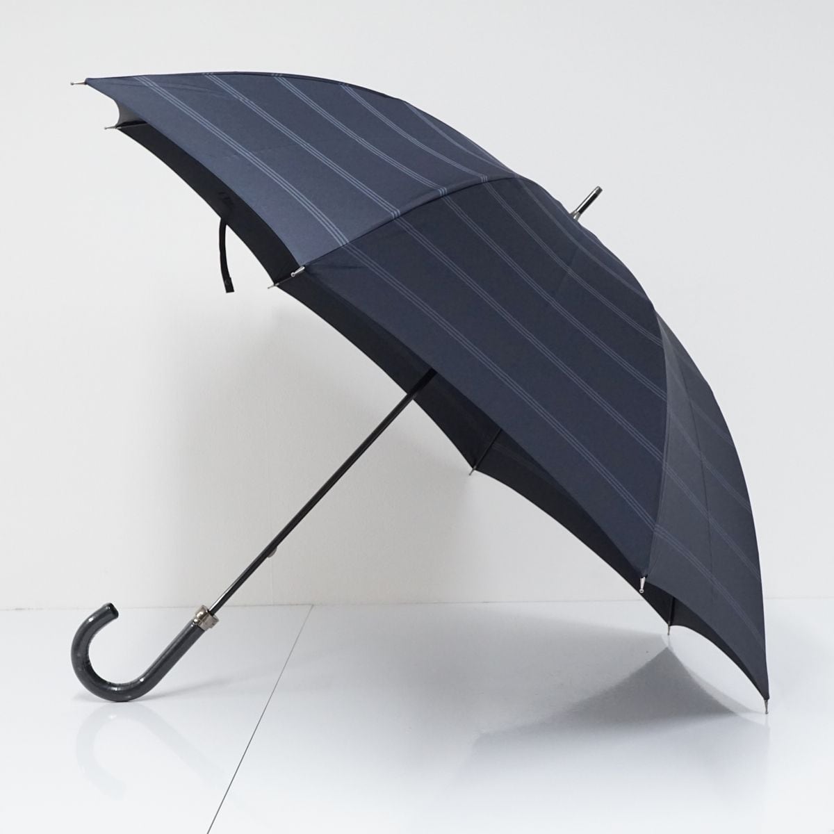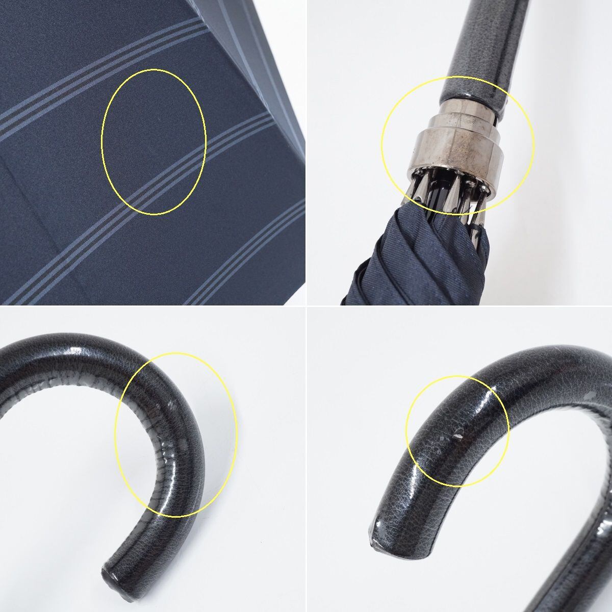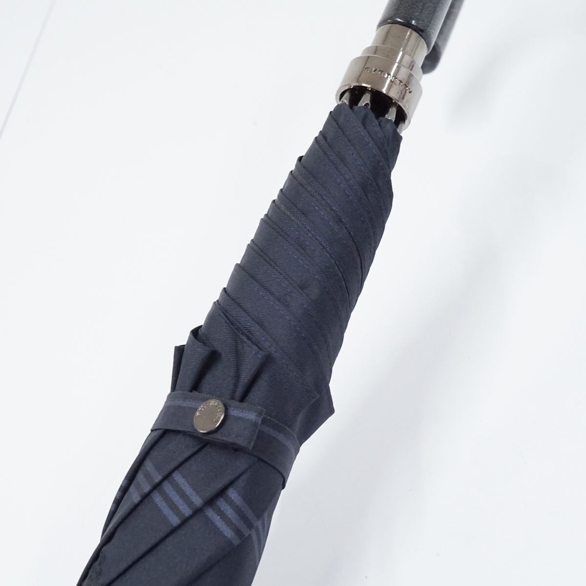 傘 BURBERRY バーバリー USED美品 ジャガードボーダー ネイビー レザー手元 細巻 高級 紳士傘 メンズ 65cm KR S1609