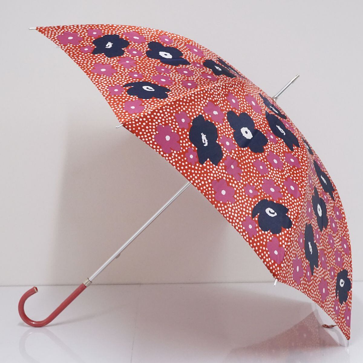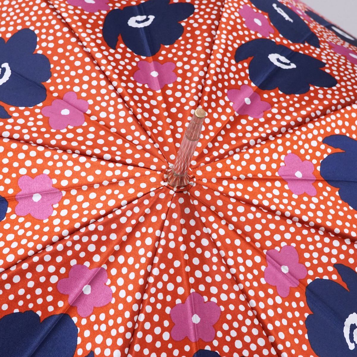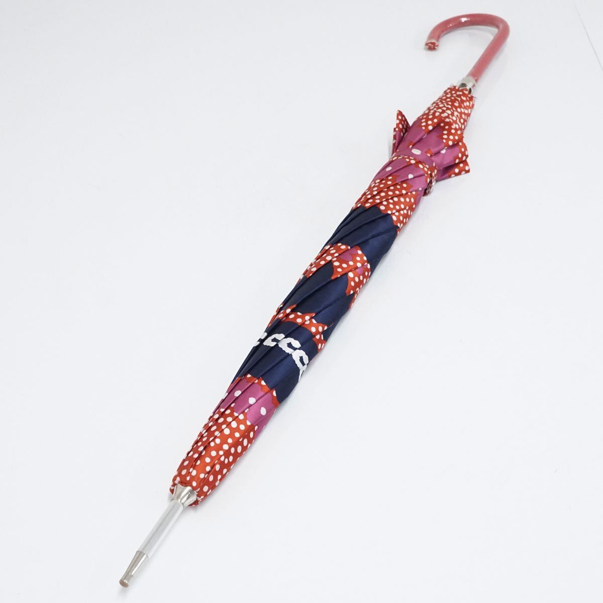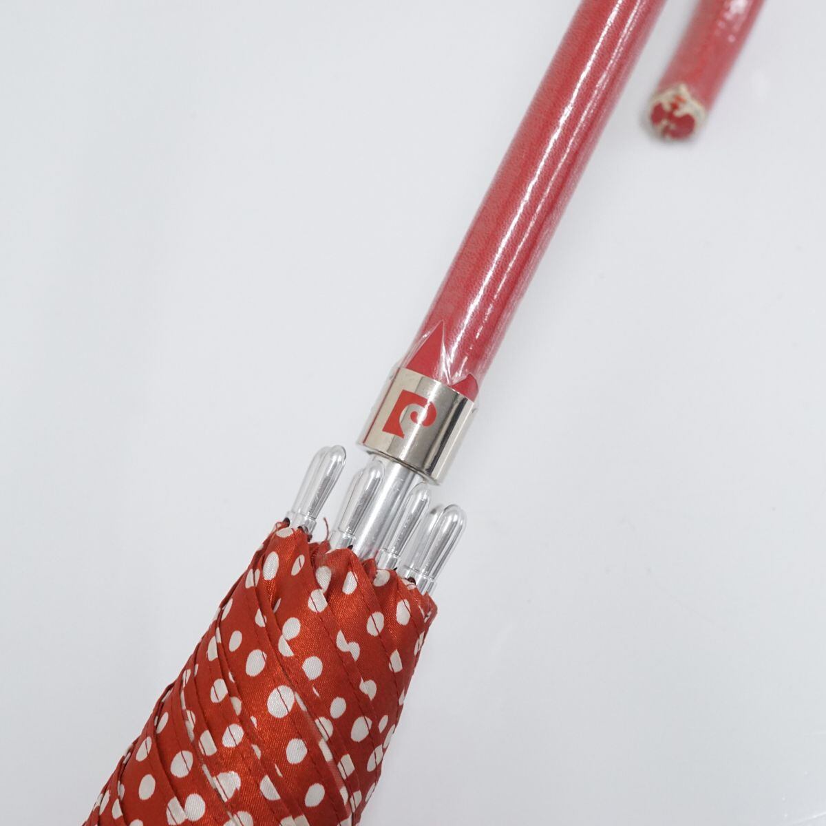 傘 Pierre Cardin ピエールカルダン USED美品 レッド ドット フラワー グラス骨 60cm A1619