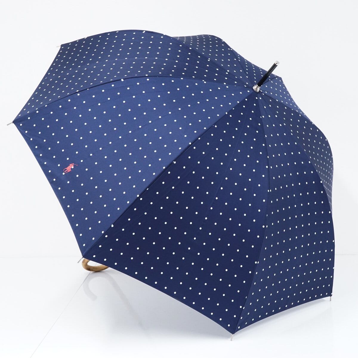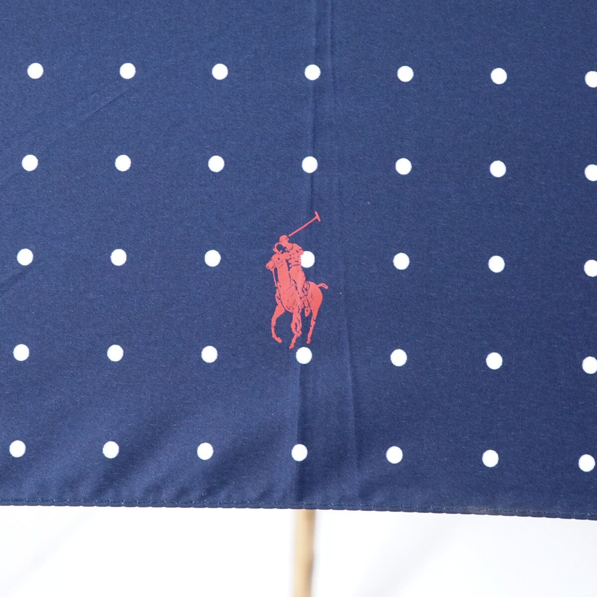 傘 Polo Ralph Lauren ポロラルフローレン USED美品 ドット ネイビー 紺 ポロマーク 高級 ジャンプ 60cm S2554