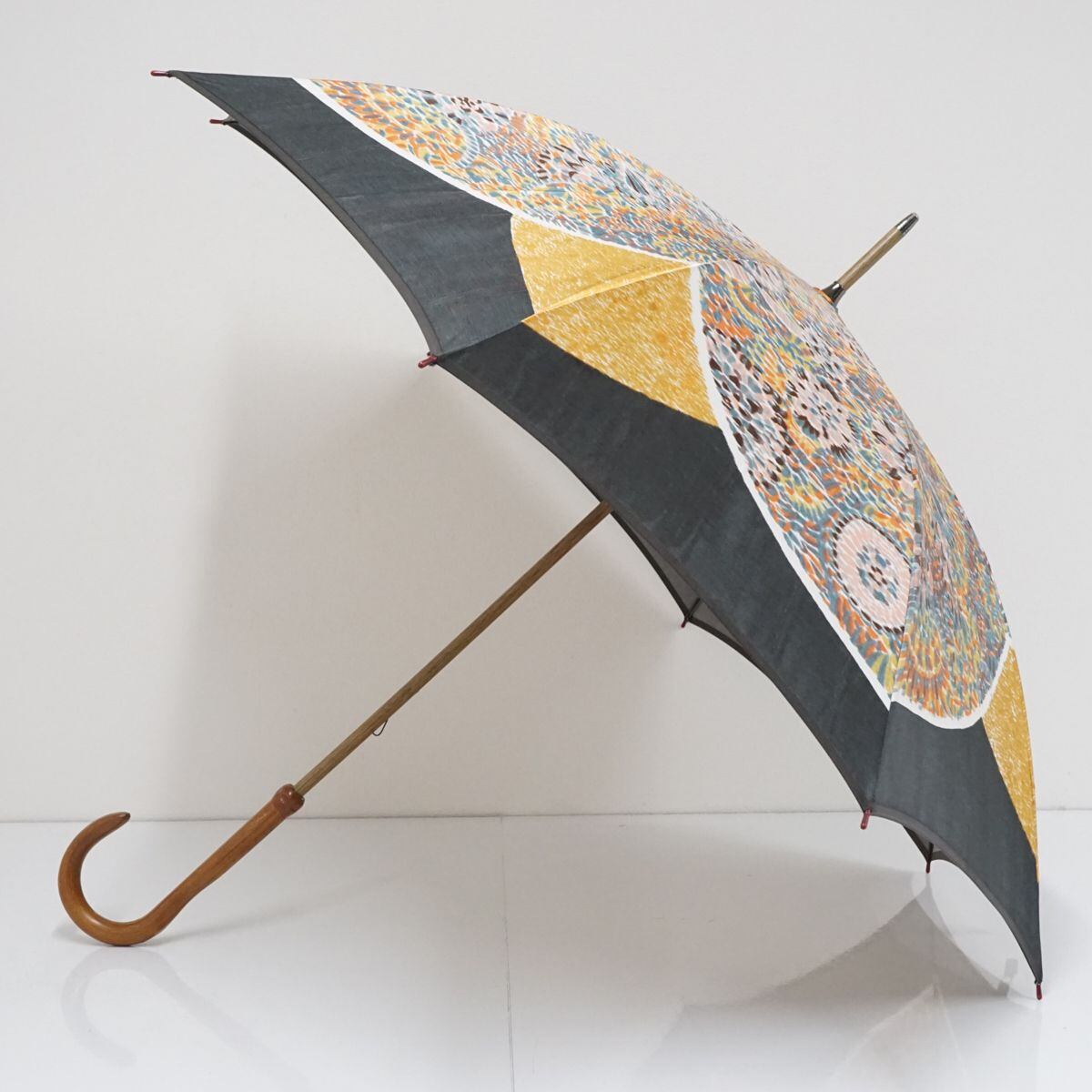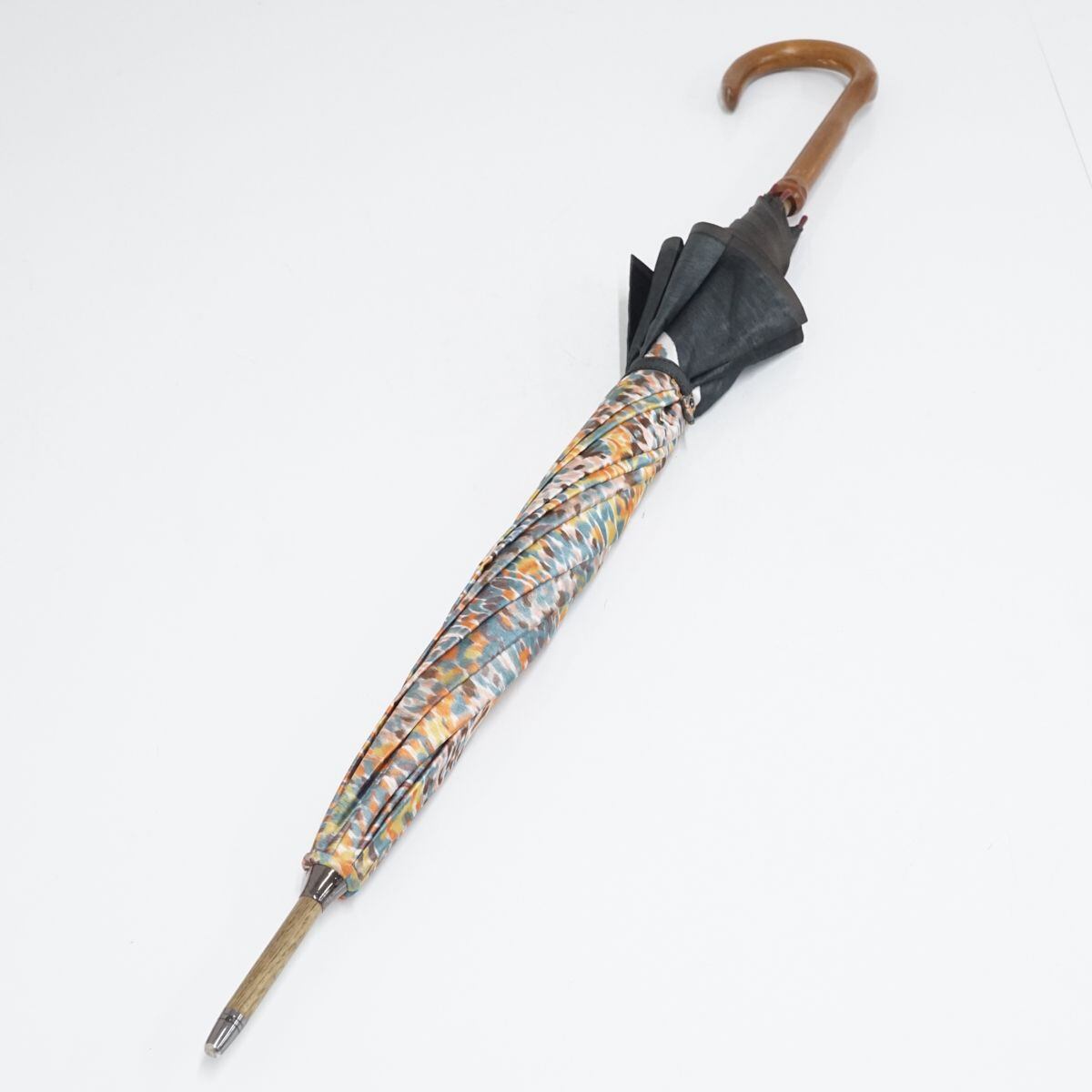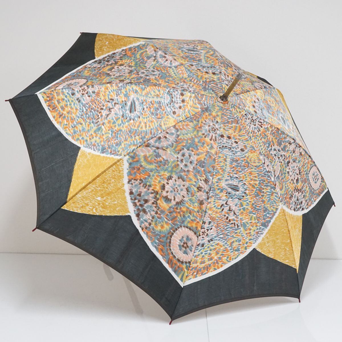 モンブランヤマグチ 傘 USED美品 ほぐし織 万華鏡 カラフル ブラック 日本製 アート 絵画 高級 58cm S1624