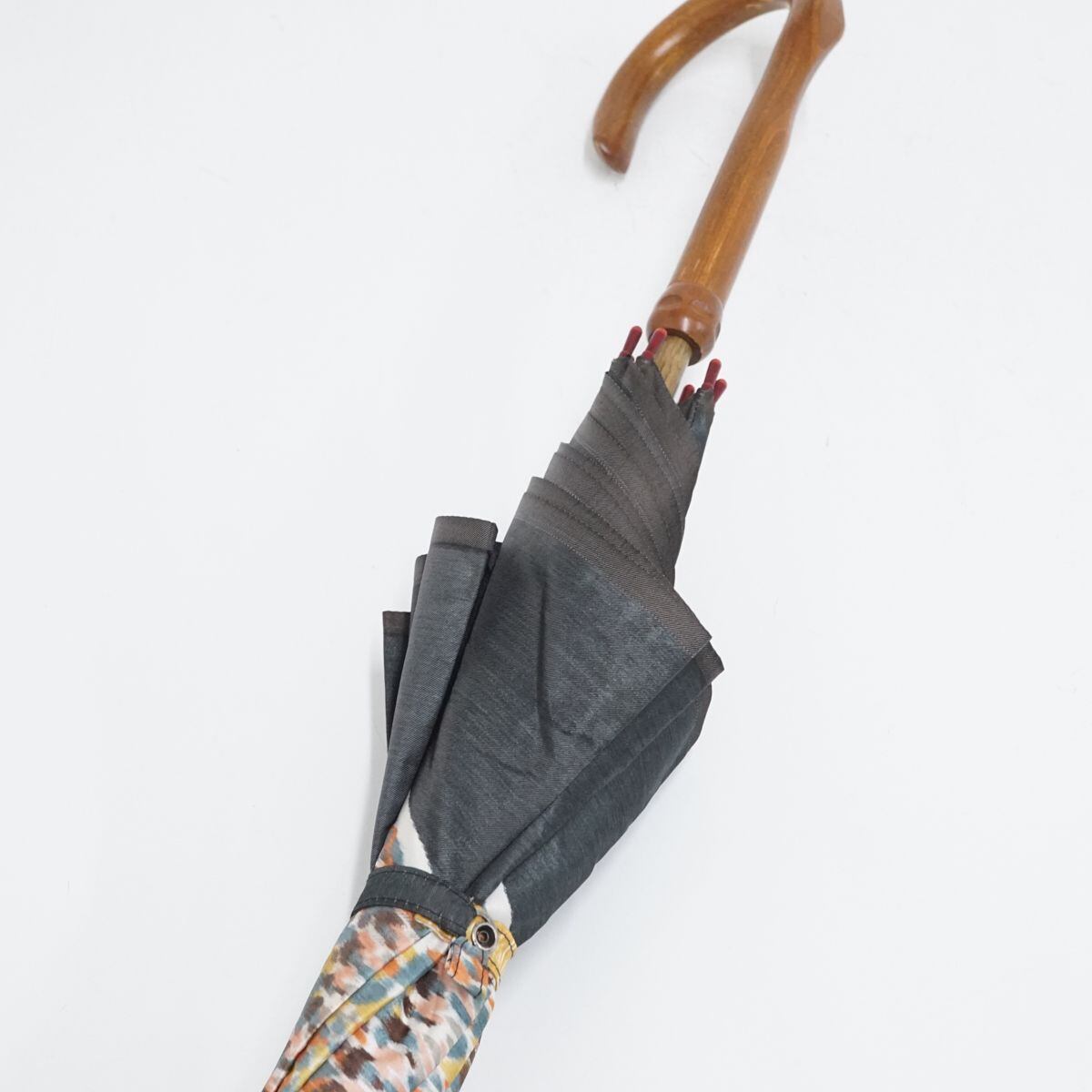手元・石突に天然木を採用しており、ナチュラルな雰囲気がほぐし織の生地にピッタリです。