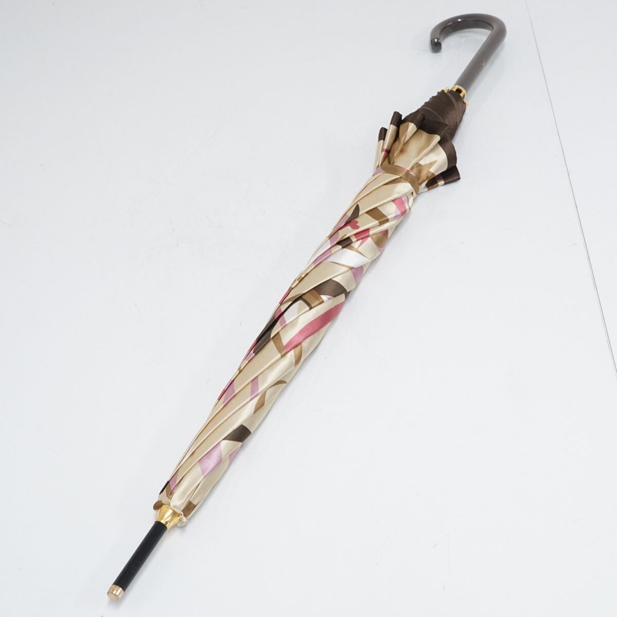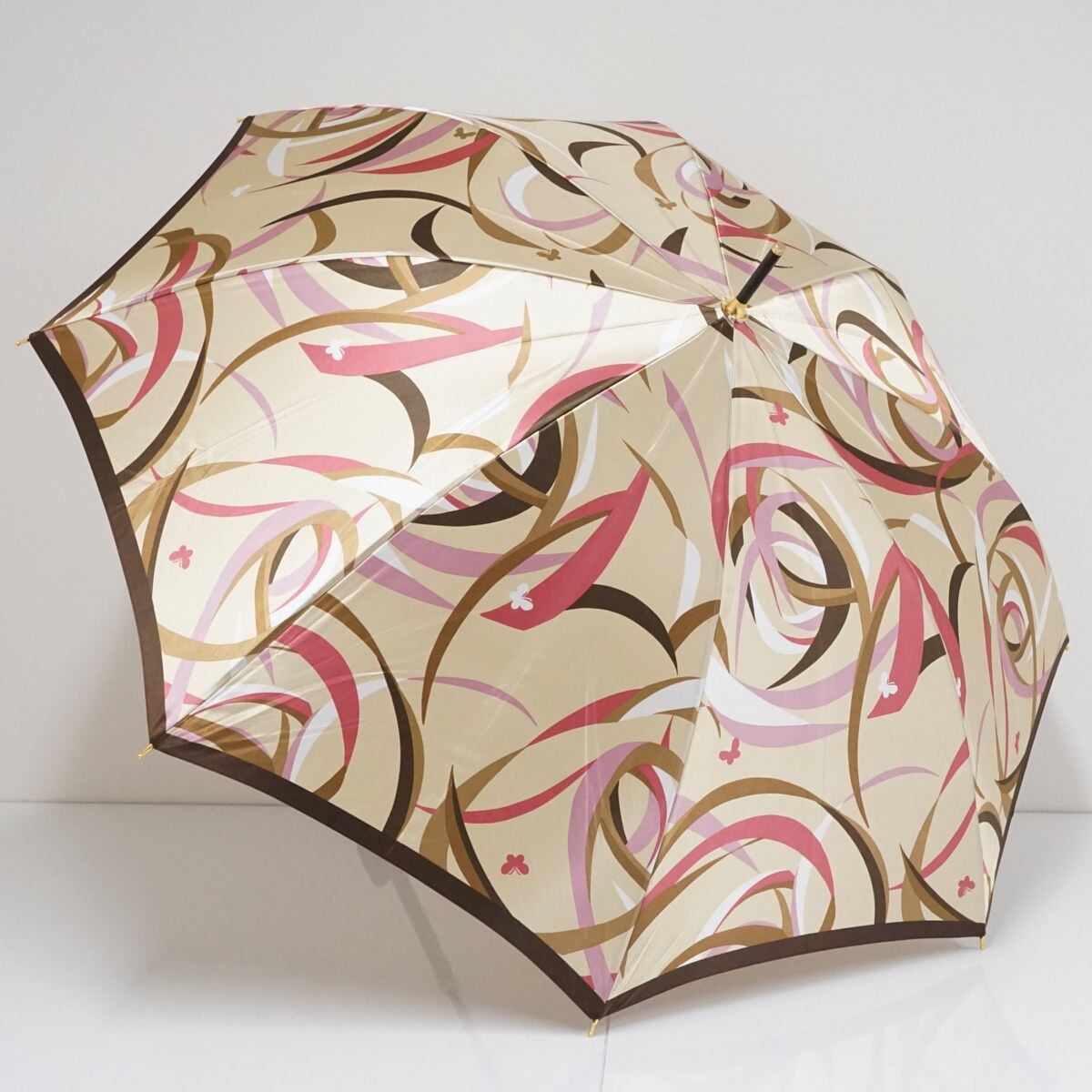 HANAE MORI ハナエモリ 傘 USED美品 ベージュ ゴールド ジャンプ ブランド 58cm S1634