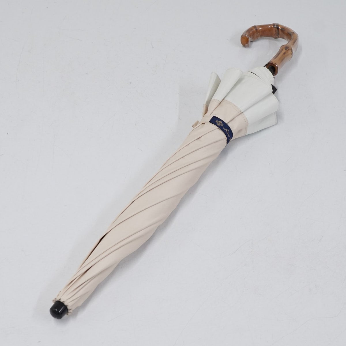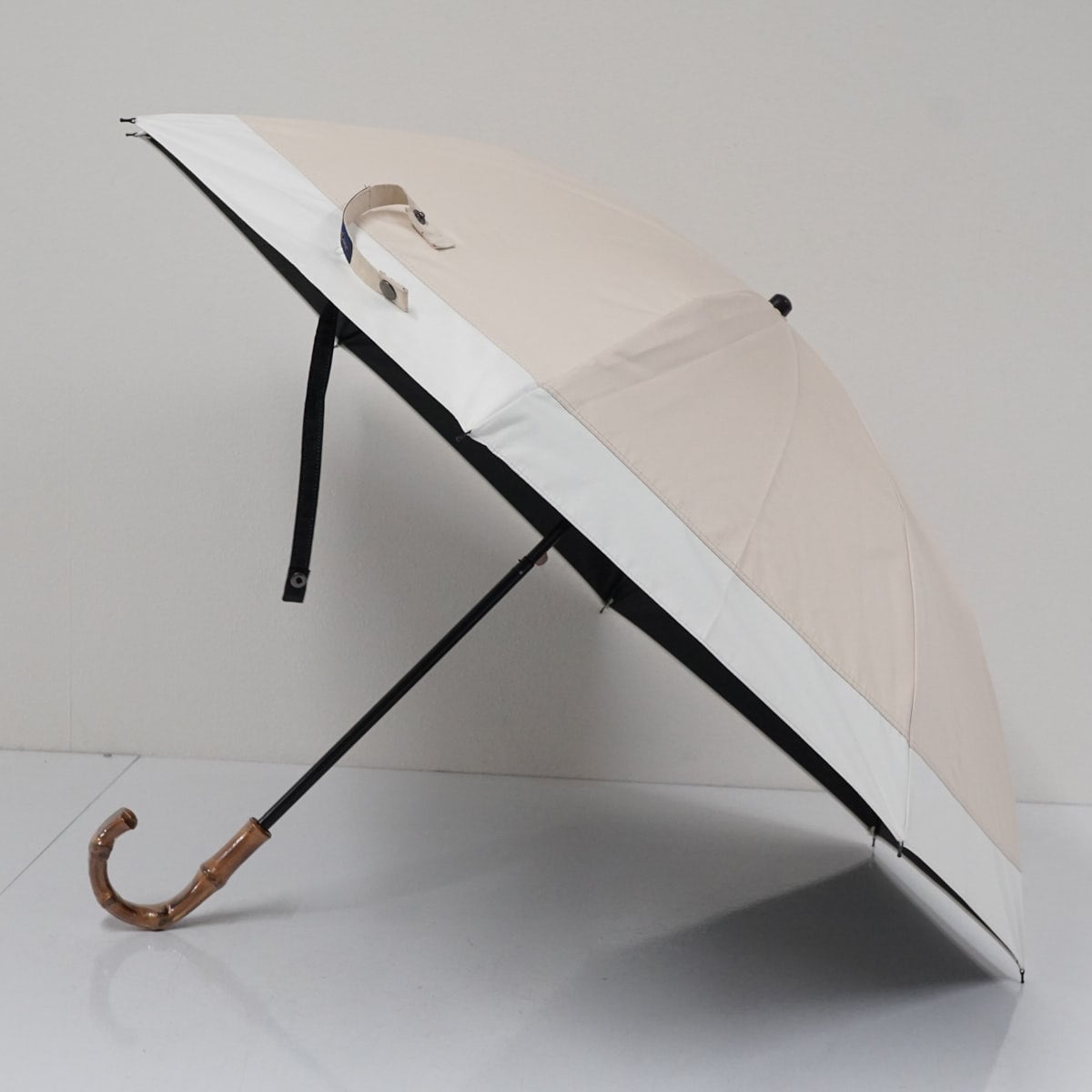 完全遮光折りたたみ日傘 芦屋ロサブラン USED美品 2段ショート コンビ シャンパンベージュ アイボリー 50cm FS9211