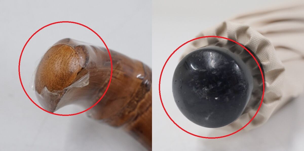 ※手元のフィルムに一部破れがあります。また、石突に若干のスレがあります。(一部を画像にてご確認ください。)