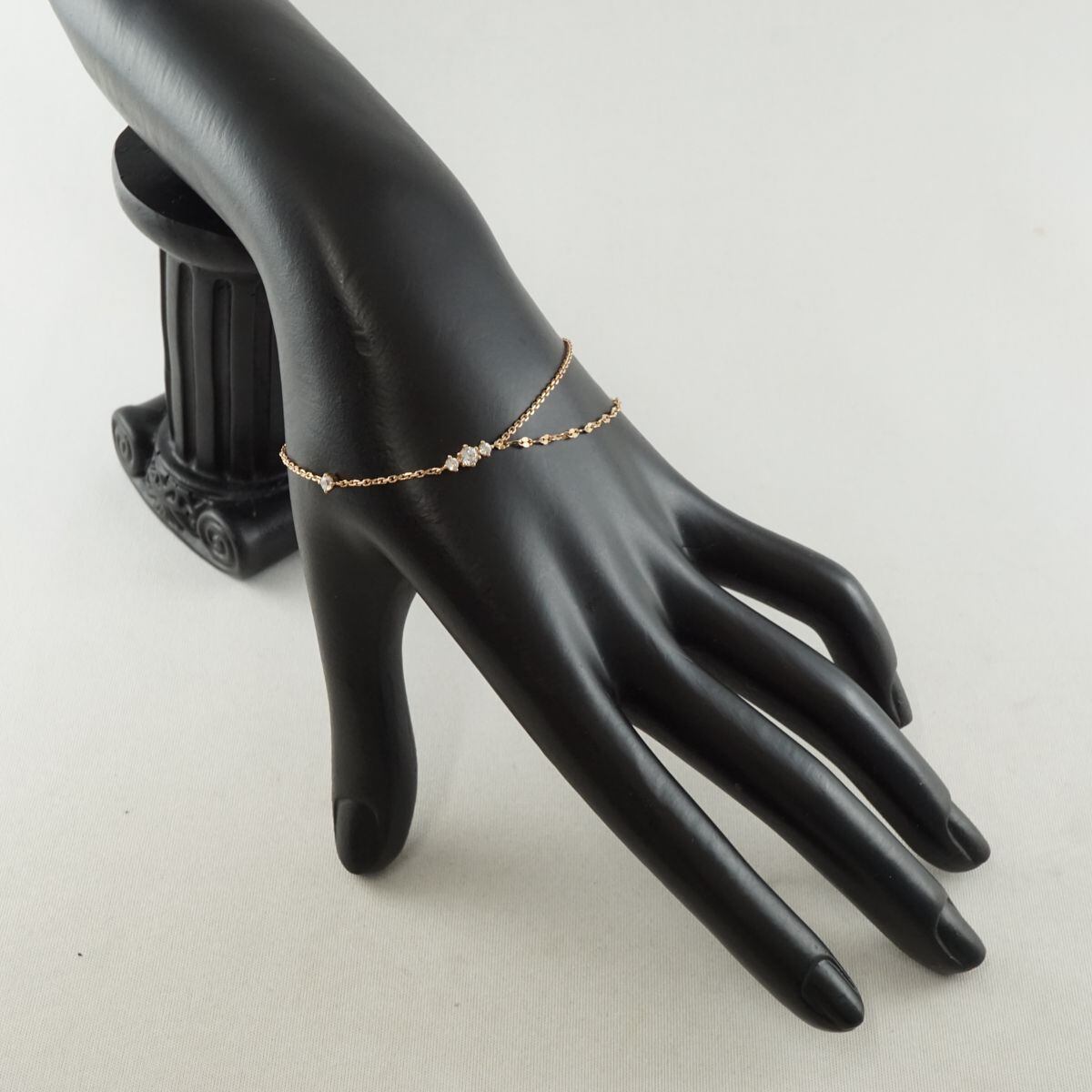 カラーはピンクゴールド系で、片側のみ2連チェーンでデザインされたオシャレな逸品です。