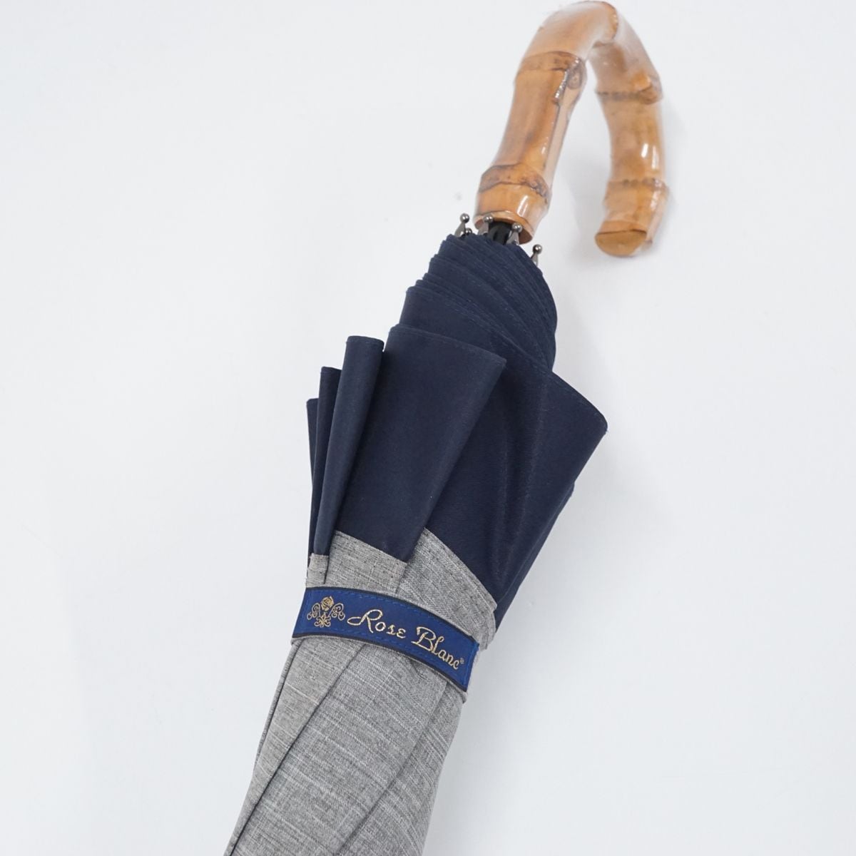 芦屋ロサブラン 完全遮光日傘 USED美品 ショート コンビ ダンガリーグレー ネイビー UV 遮光 遮熱 50cm S1648