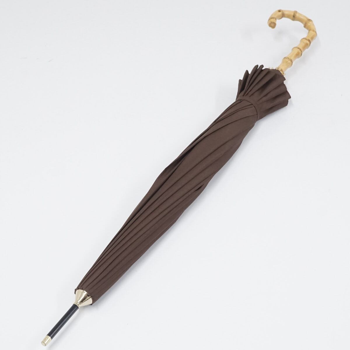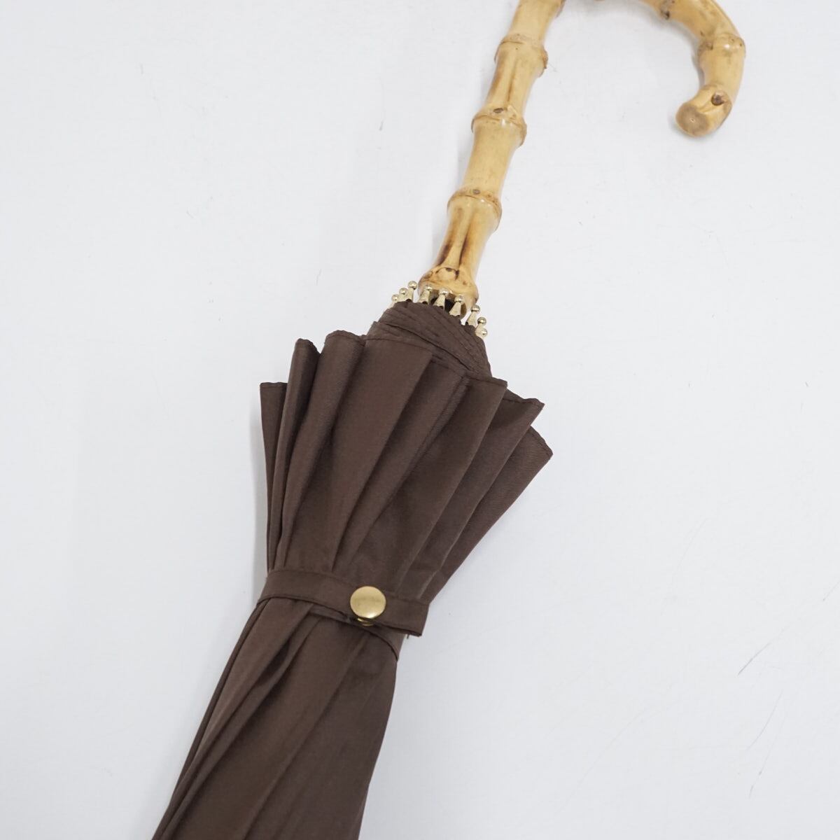 ブラウンの生地に寒竹手元がシンプルでおしゃれな一品です。