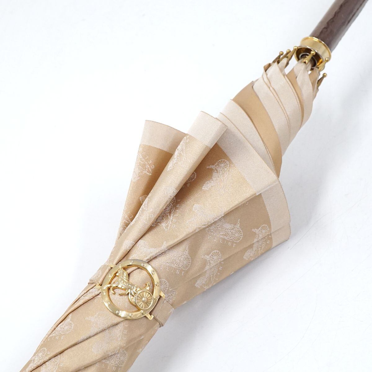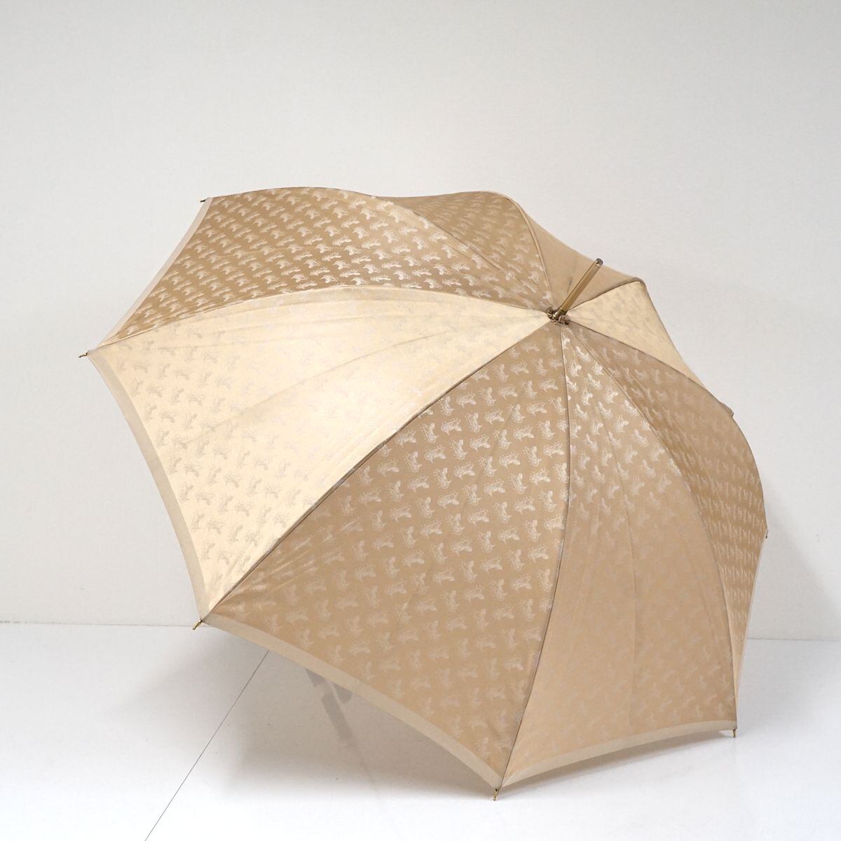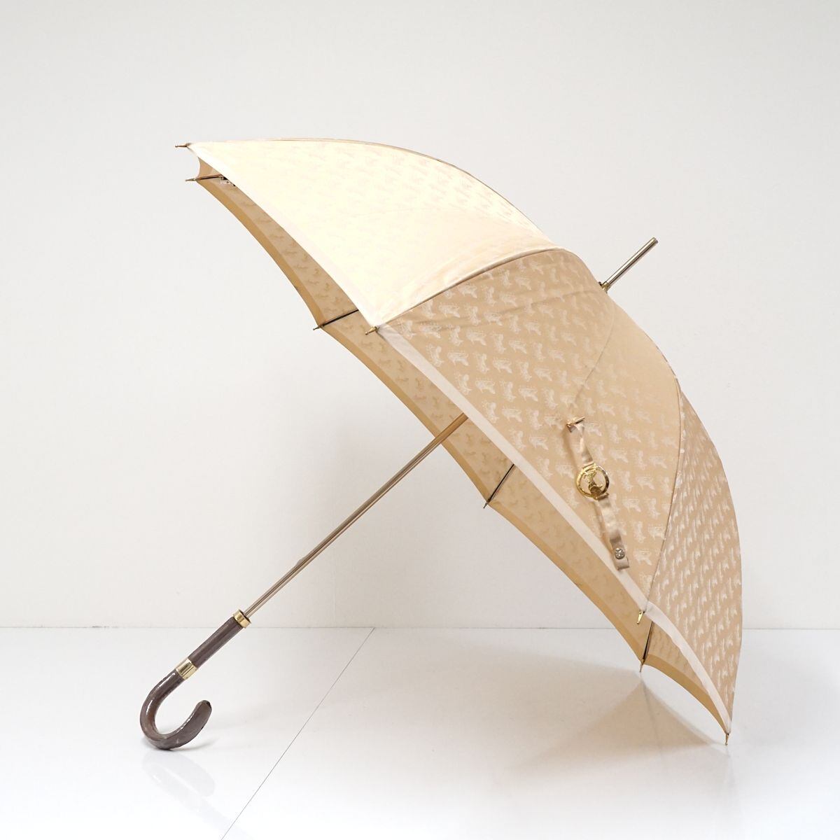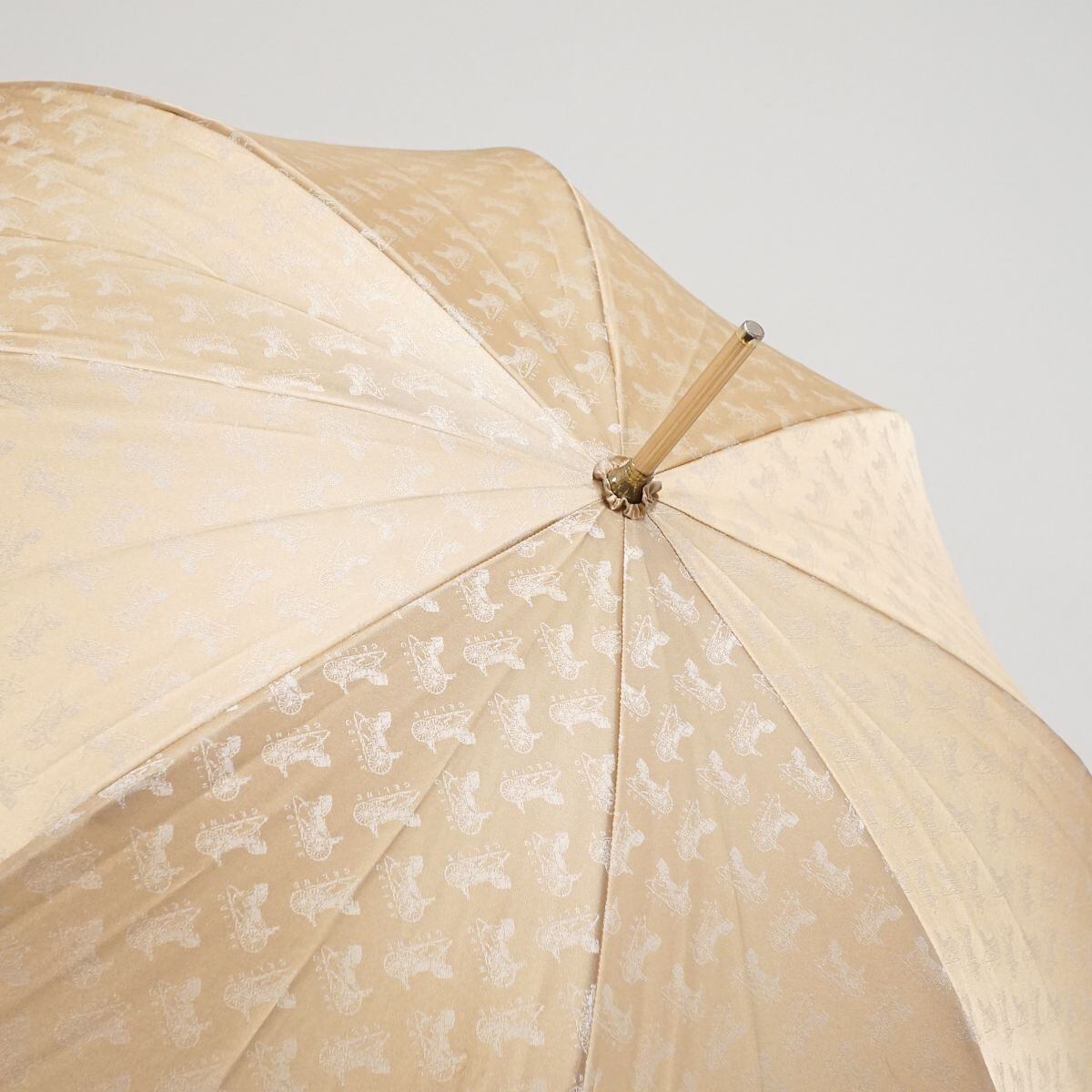 高級傘 CELINE セリーヌ USED美品 サルキー 馬車柄 ライトベージュ ブランド 希少 クラシカル グラス骨 60cm S1670