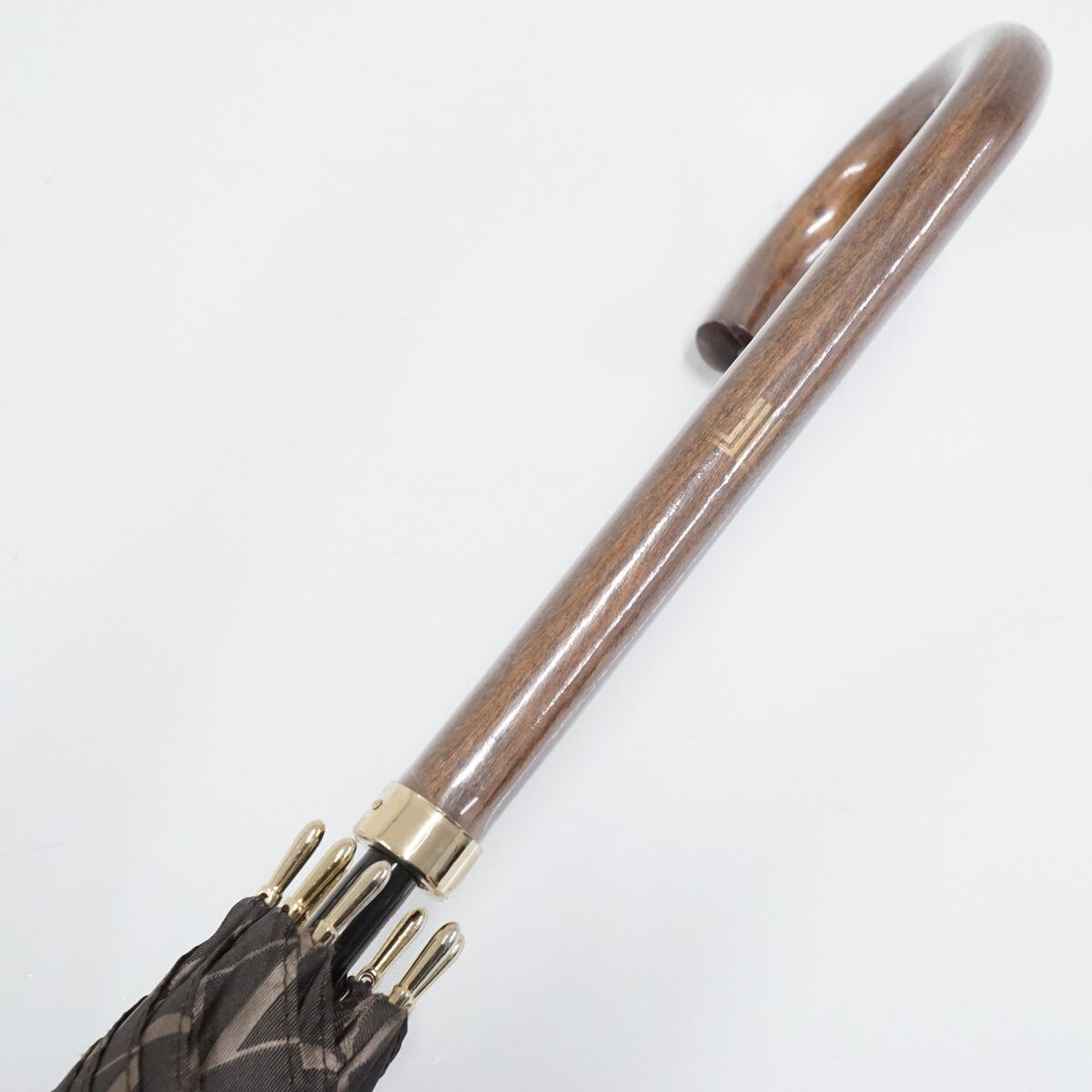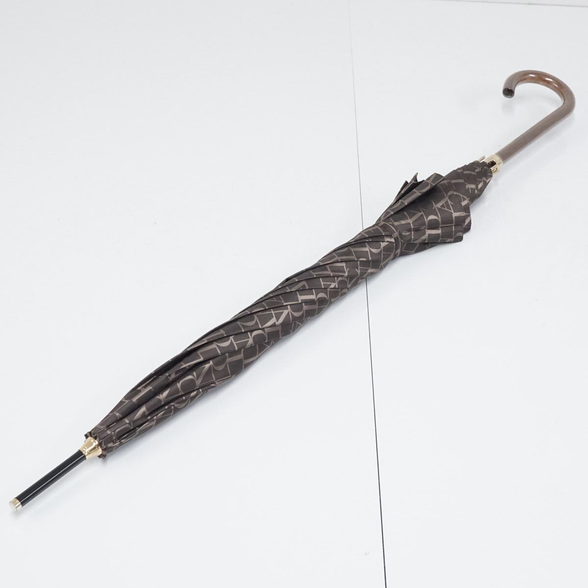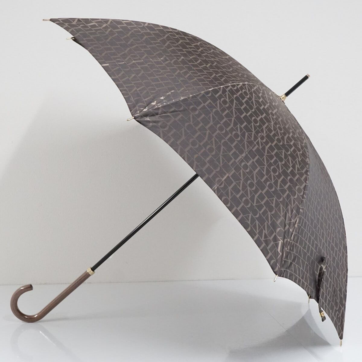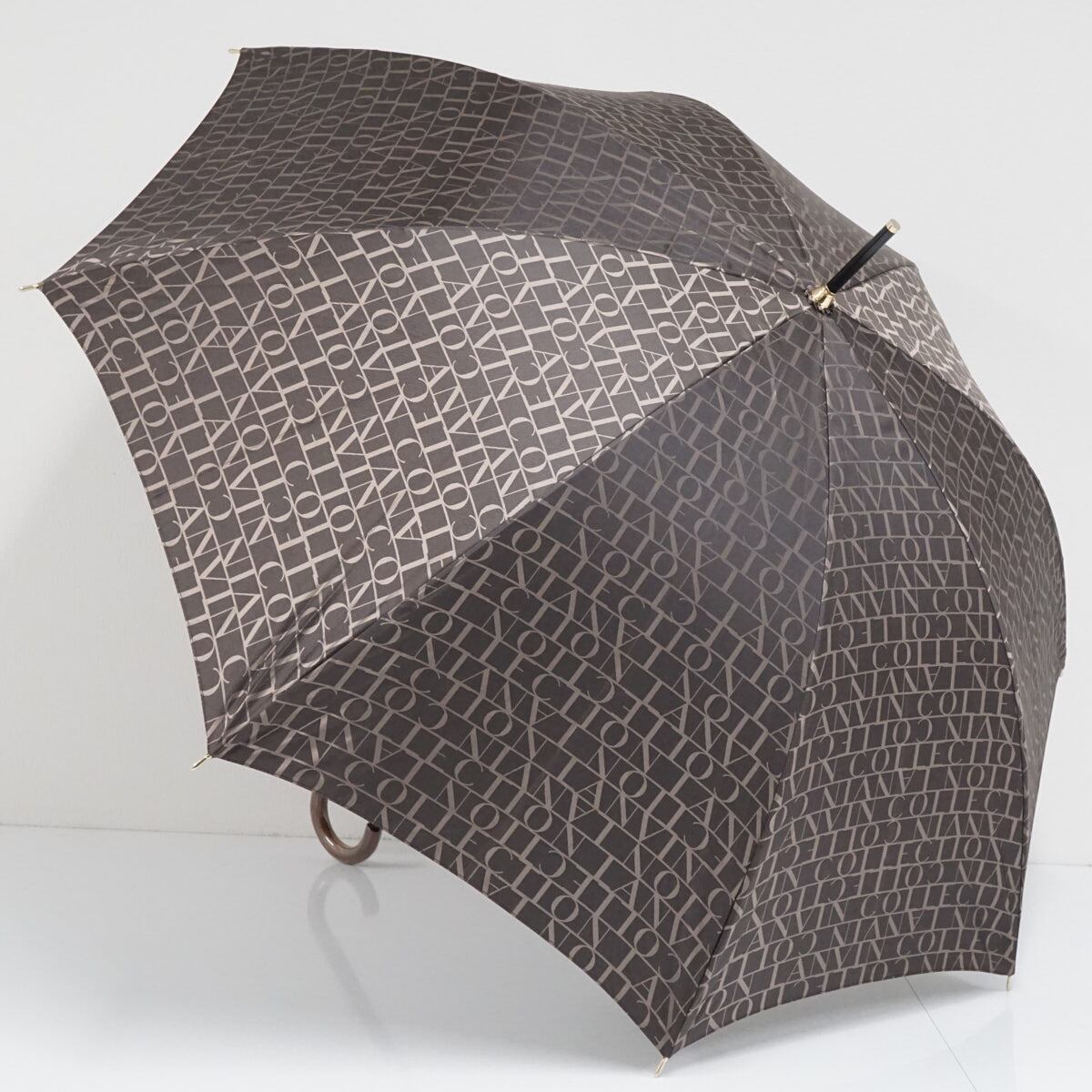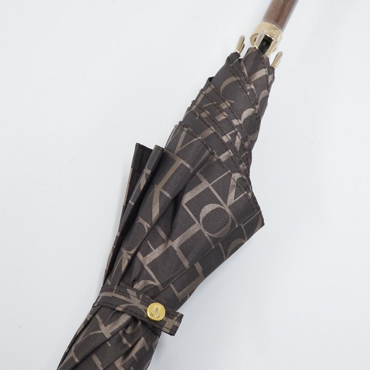 傘 LANVIN COLLECTION ランバンコレクション USED美品 ロゴジャカード ジオメトリック モダン エレガント 木製手元 ブラウン 60cm S2449
