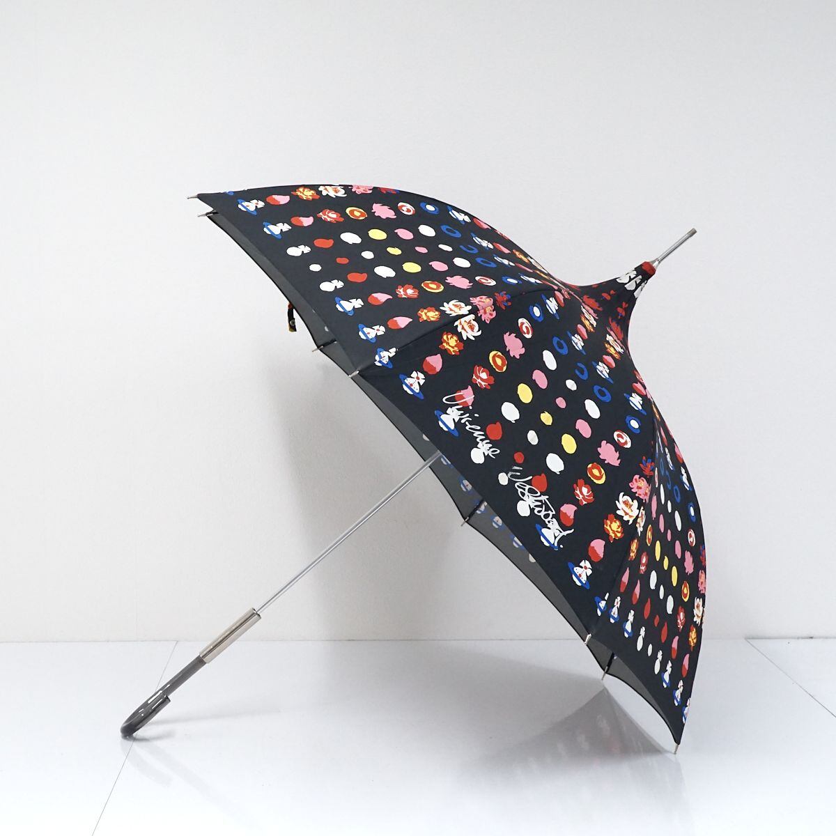 パゴダ傘 Vivienne Westwood ヴィヴィアンウエストウッド USED品 ORB オーブ フラワー ドット ロゴ カラフル アイコン 58cm S1674