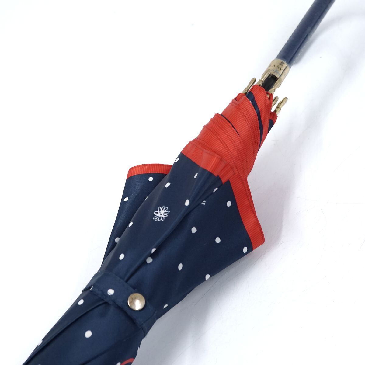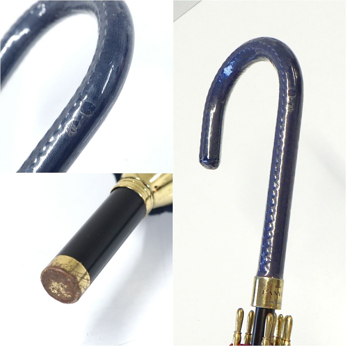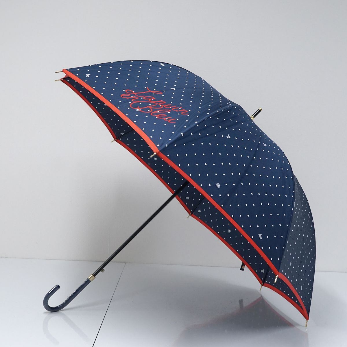 耐風傘 LANVIN en Bleu ランバンオンブルー USED品 ネイビーxレッド ドット ロゴ アイコン ジャンプ グラス骨 風に強い 60cm A1678