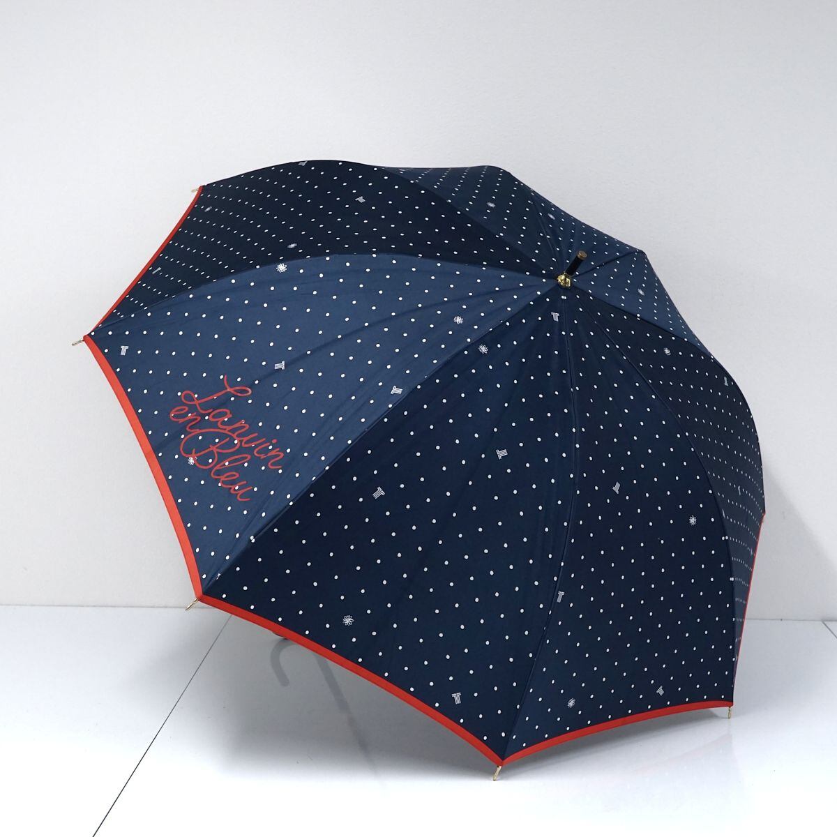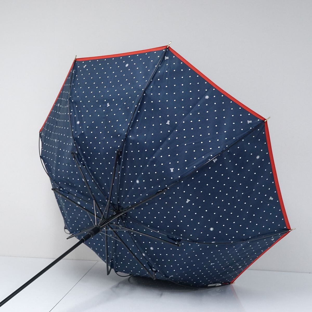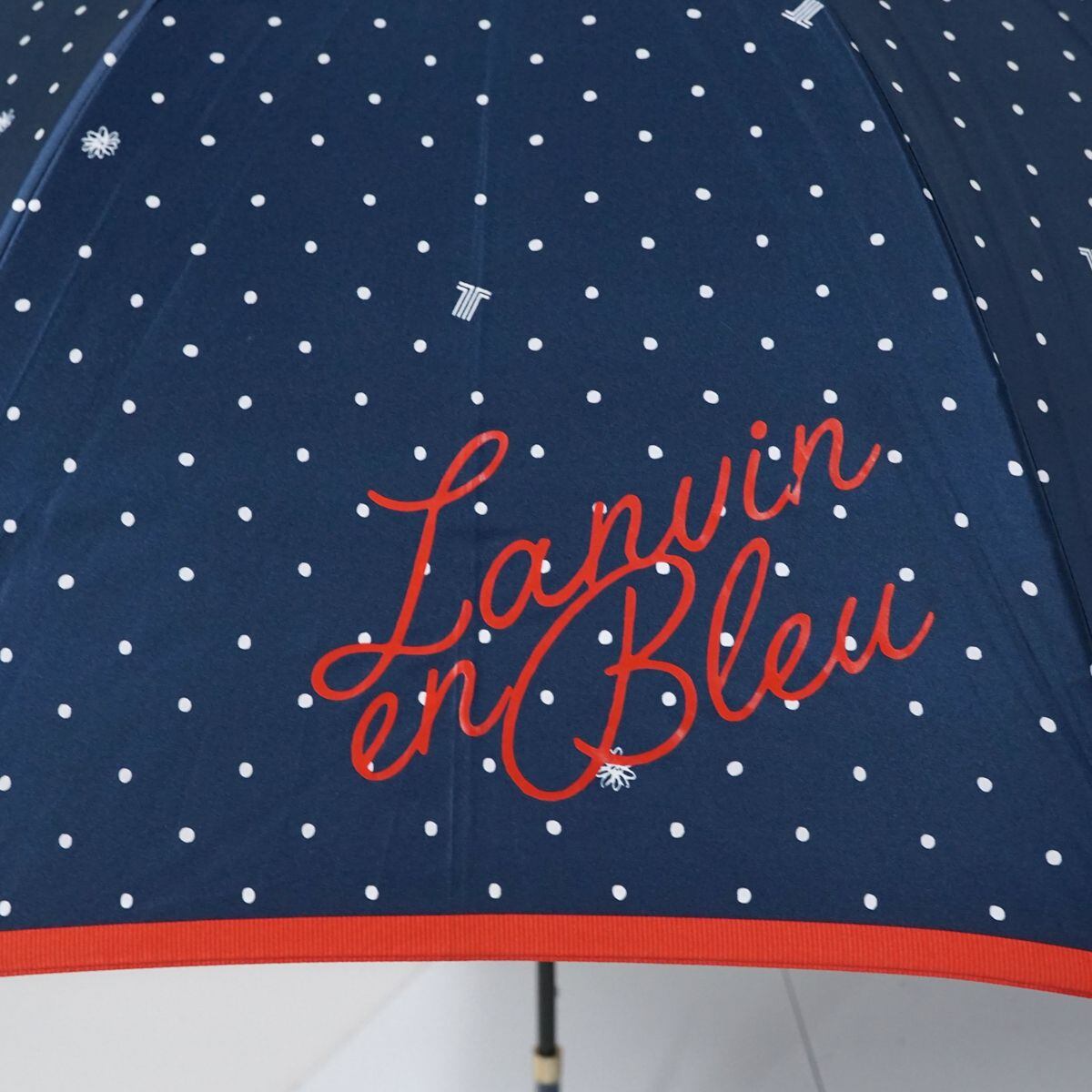 耐風傘 LANVIN en Bleu ランバンオンブルー USED品 ネイビーxレッド ドット ロゴ アイコン ジャンプ グラス骨 風に強い 60cm A1678
