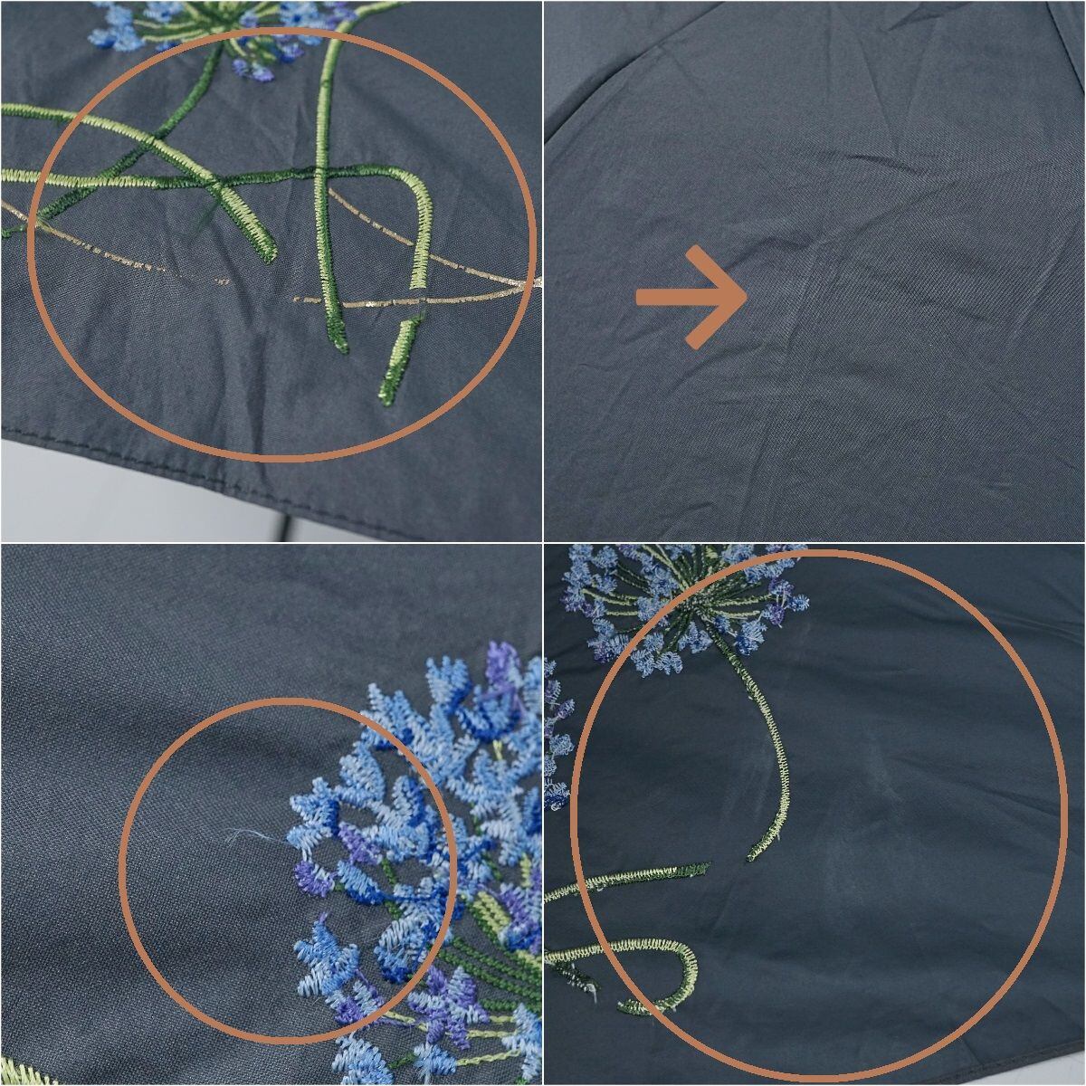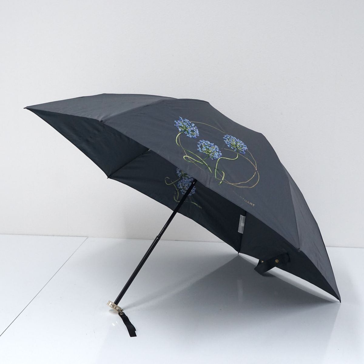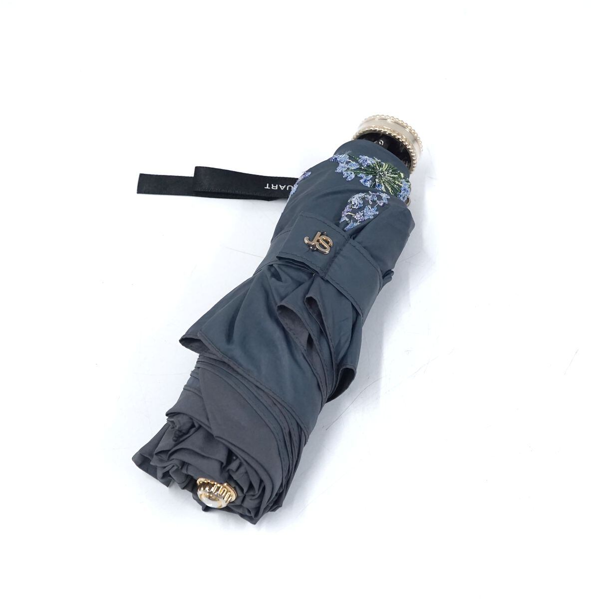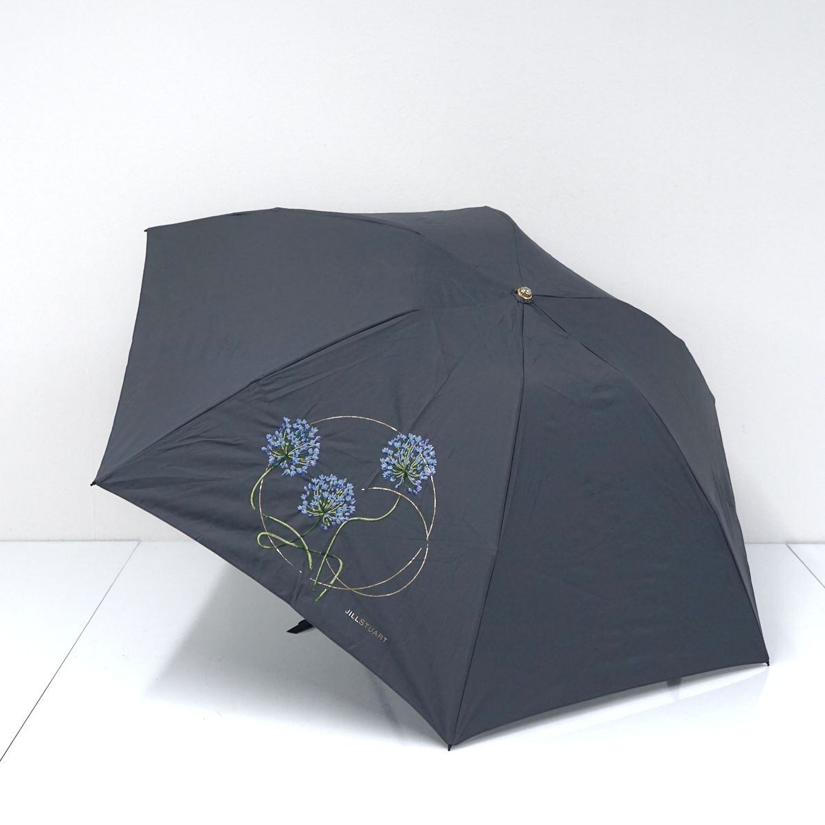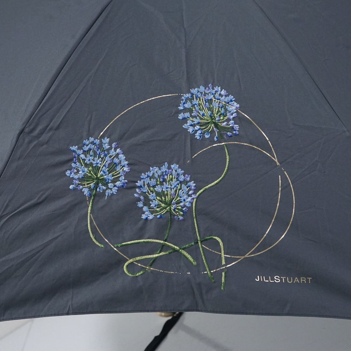 折りたたみ日傘 JILL STUART ジルスチュアート USED品 晴雨兼用 グレー 箔プリント 刺繍 植物柄 ロゴ シンプル 軽量 UV 50cm FA8722