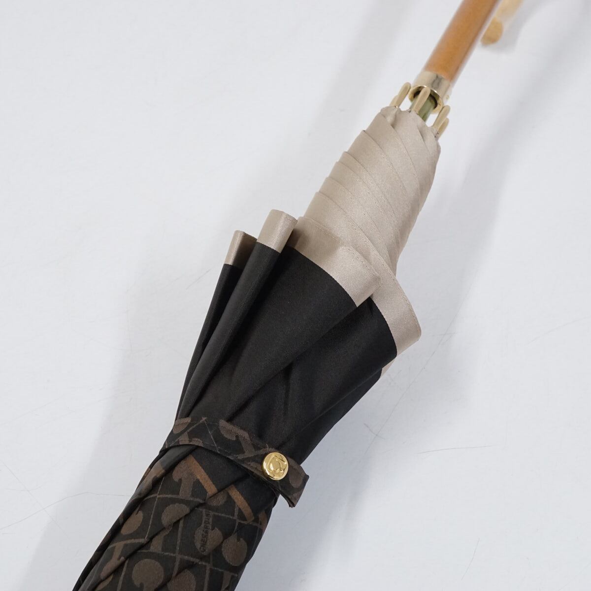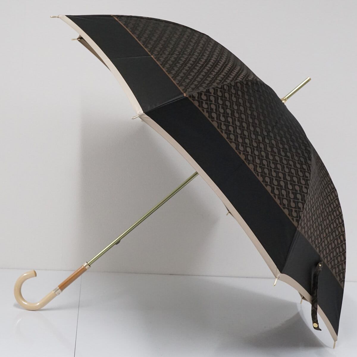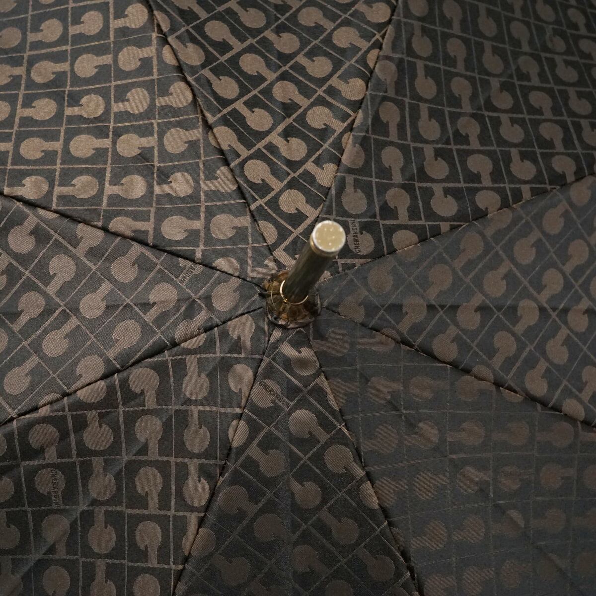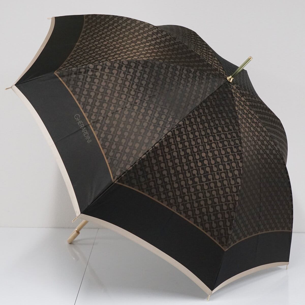傘 GHERARDINI ゲラルディーニ USED美品 モノグラム ジャガード 日本製 木製手元 グラス骨 軽量 60cm S2292