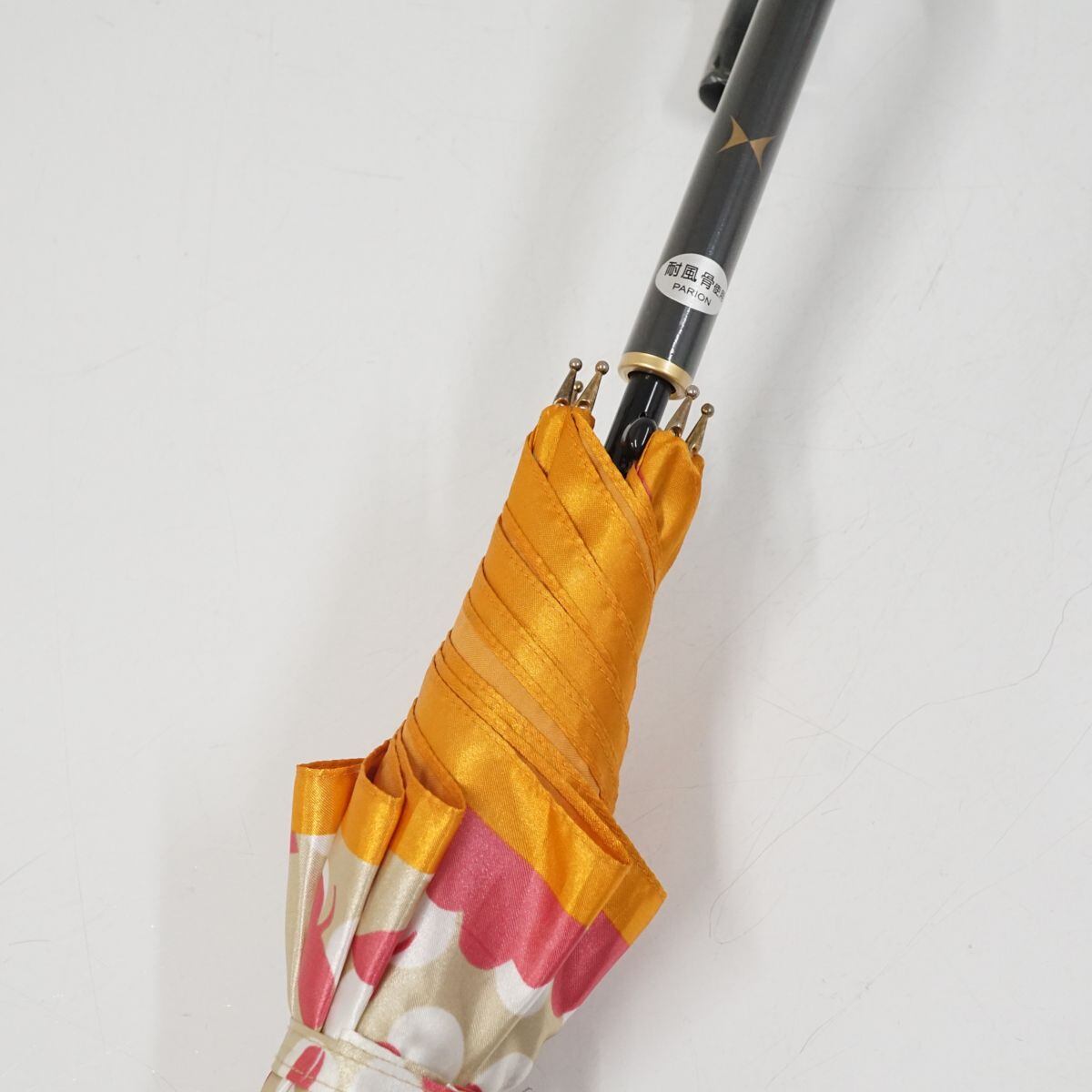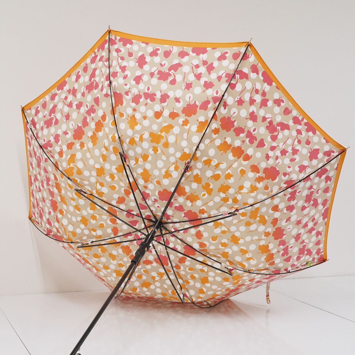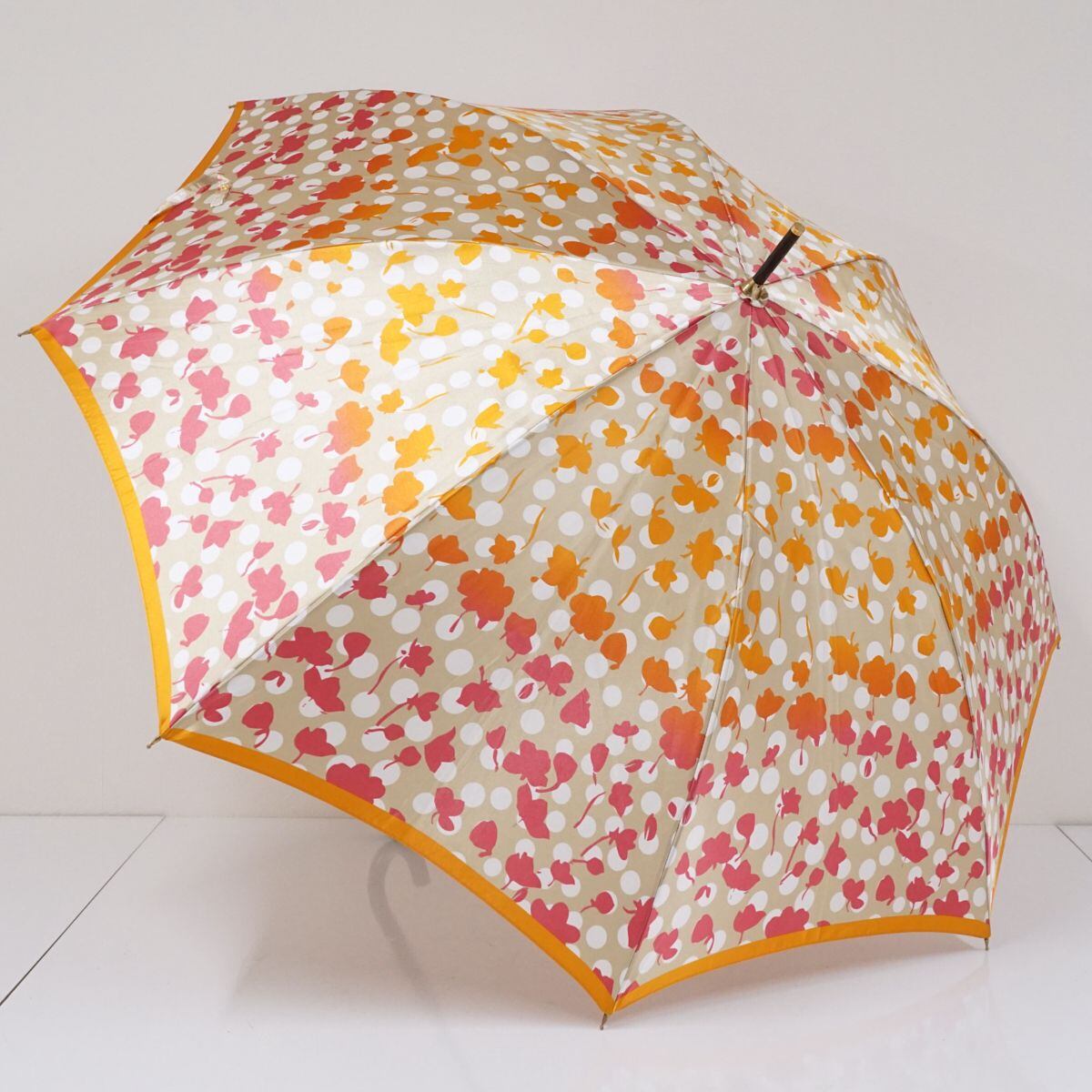 HANAE MORI ハナエモリ 耐風傘 USED美品 フラワー グラデーション ドット ジャンプ ブランド オレンジ系 58cm S1688