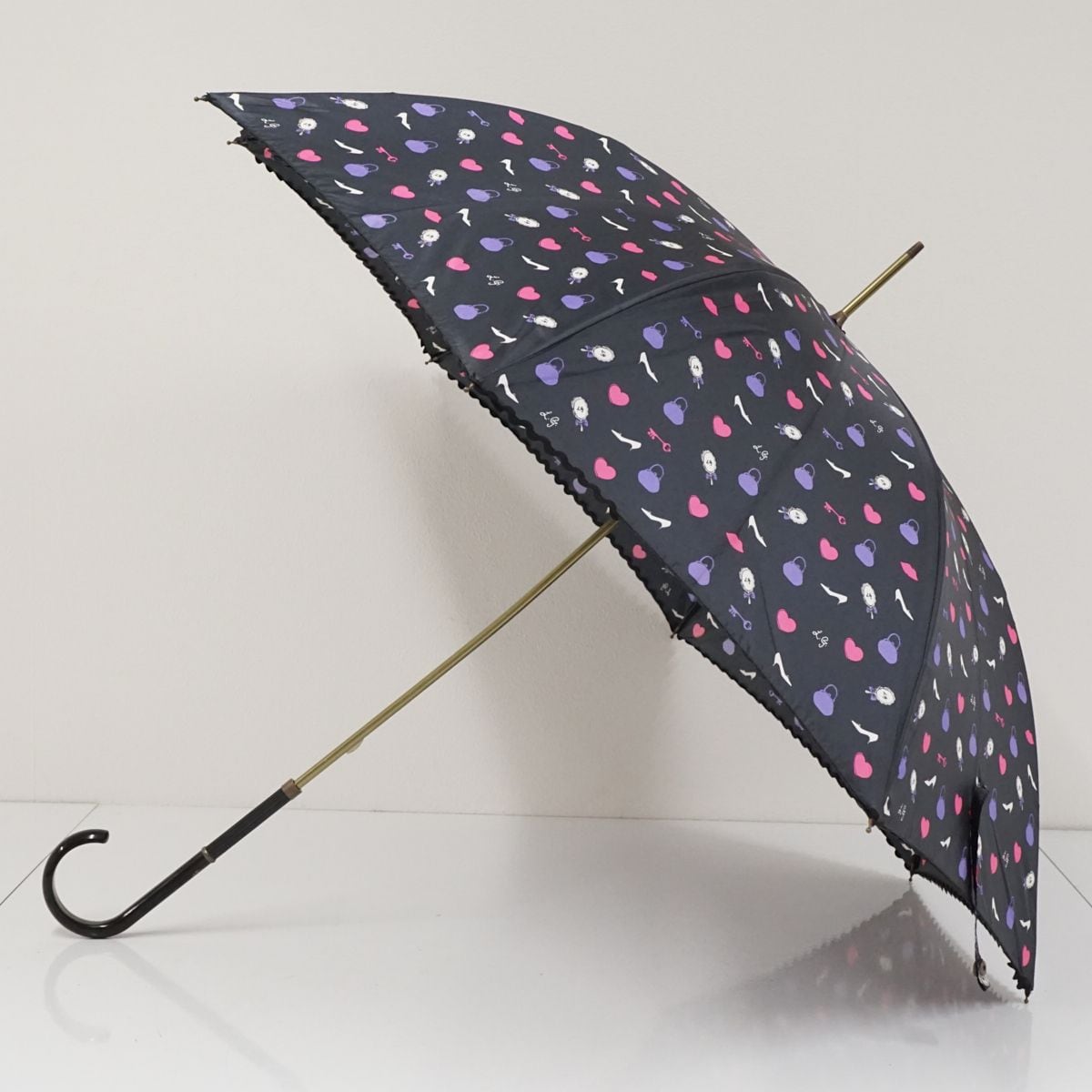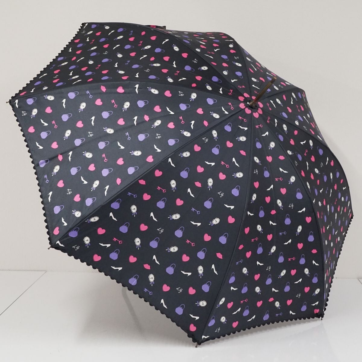 傘 LULU GUINNESS ルルギネス USED美品 かわいい ロゴ 55cm A1687