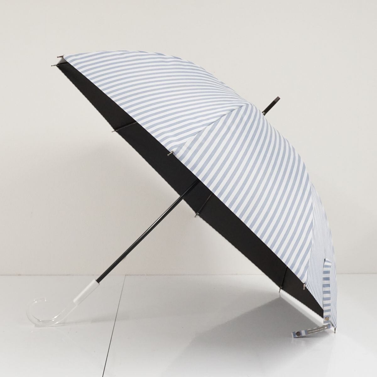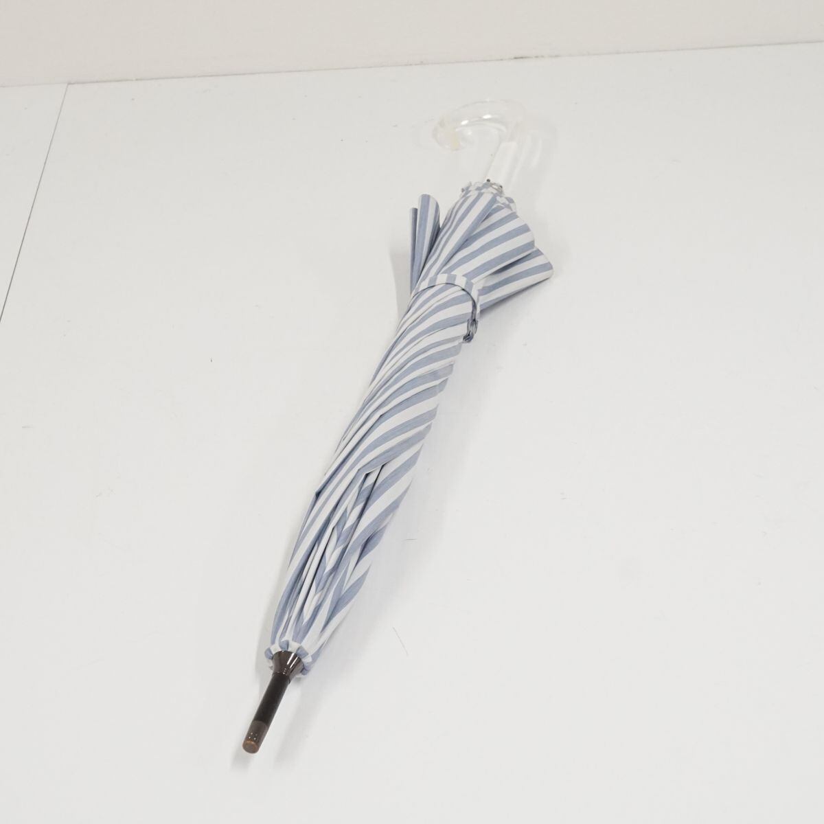 サンバリア100 完全遮光日傘 USED美品 ブルーストライプ UV 遮光 遮熱 Mサイズ カーボン骨 55cm S1680