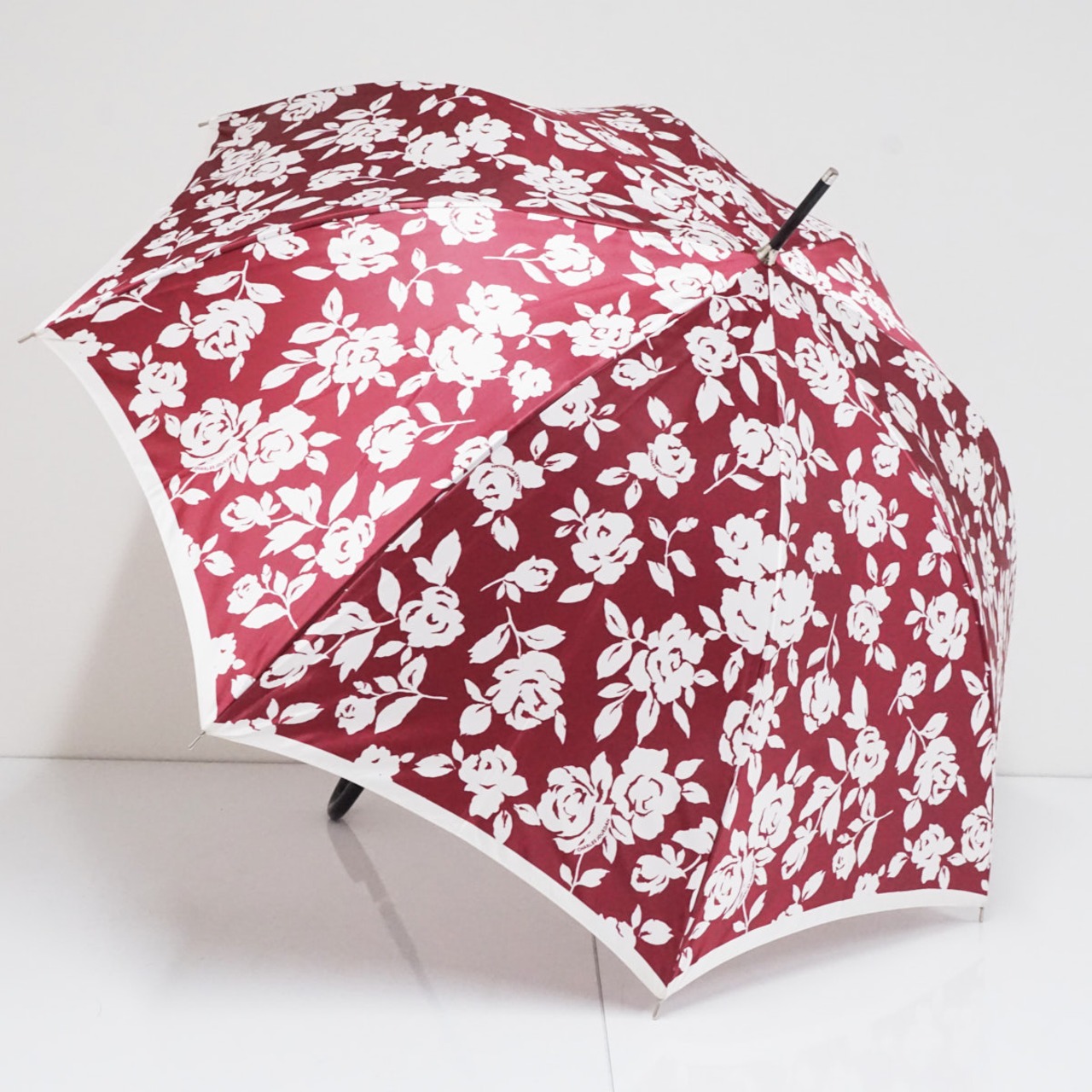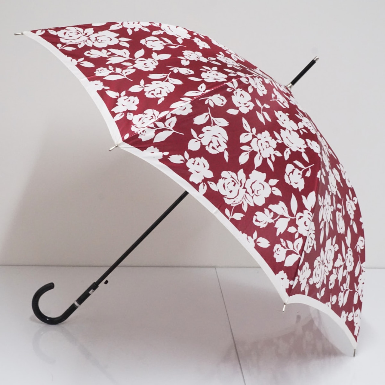 サテン地の淡い艶のある生地にシルエットフラワーをデザインしたエレガントなアンブレラです。