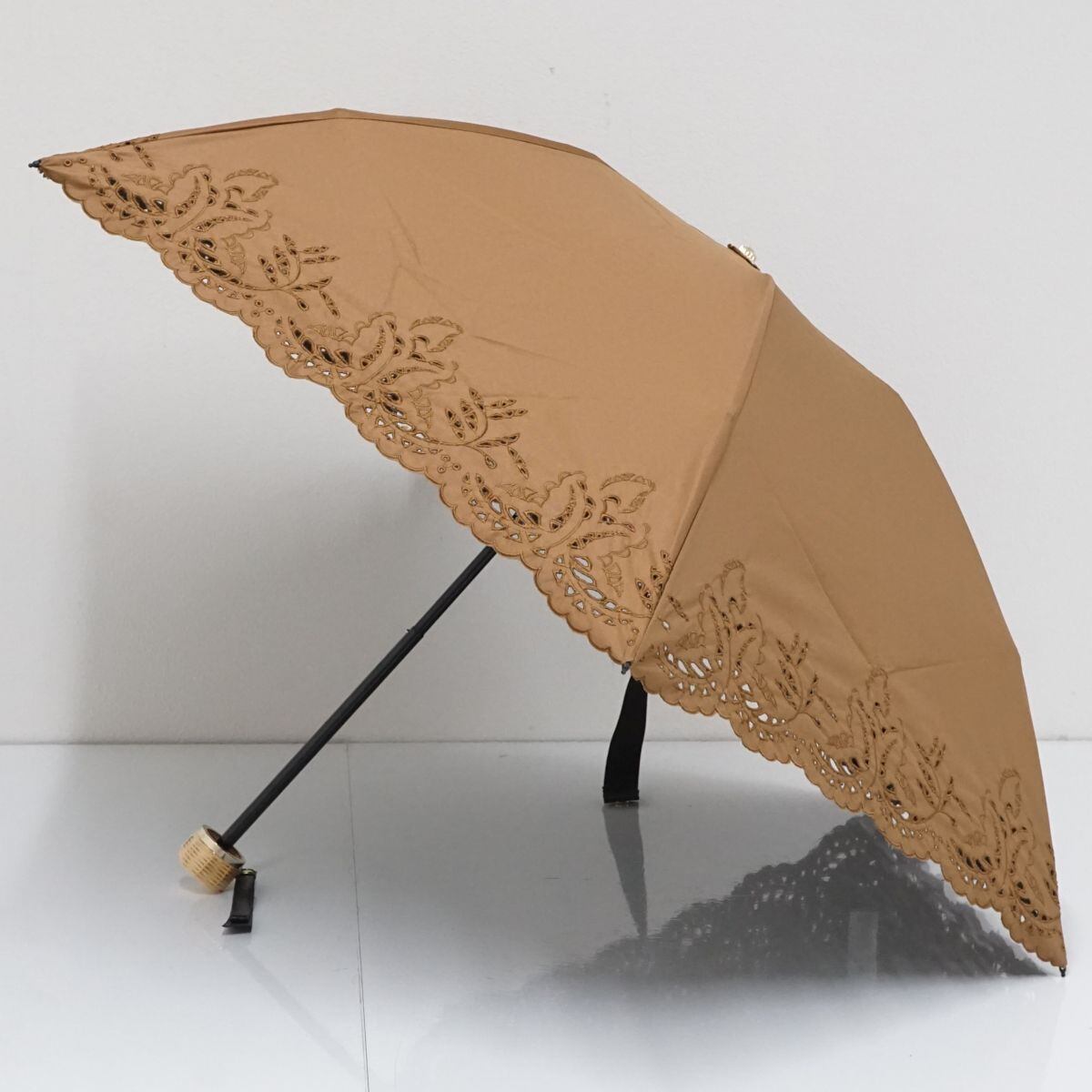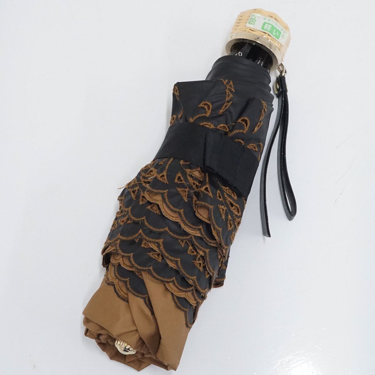 折りたたみ日傘 AUROLA オーロラ USED美品 ブラウン 刺繍 晴雨兼用 サマーシールドLi 3段折 遮光 遮熱 UV 折日傘 50cm FS8723