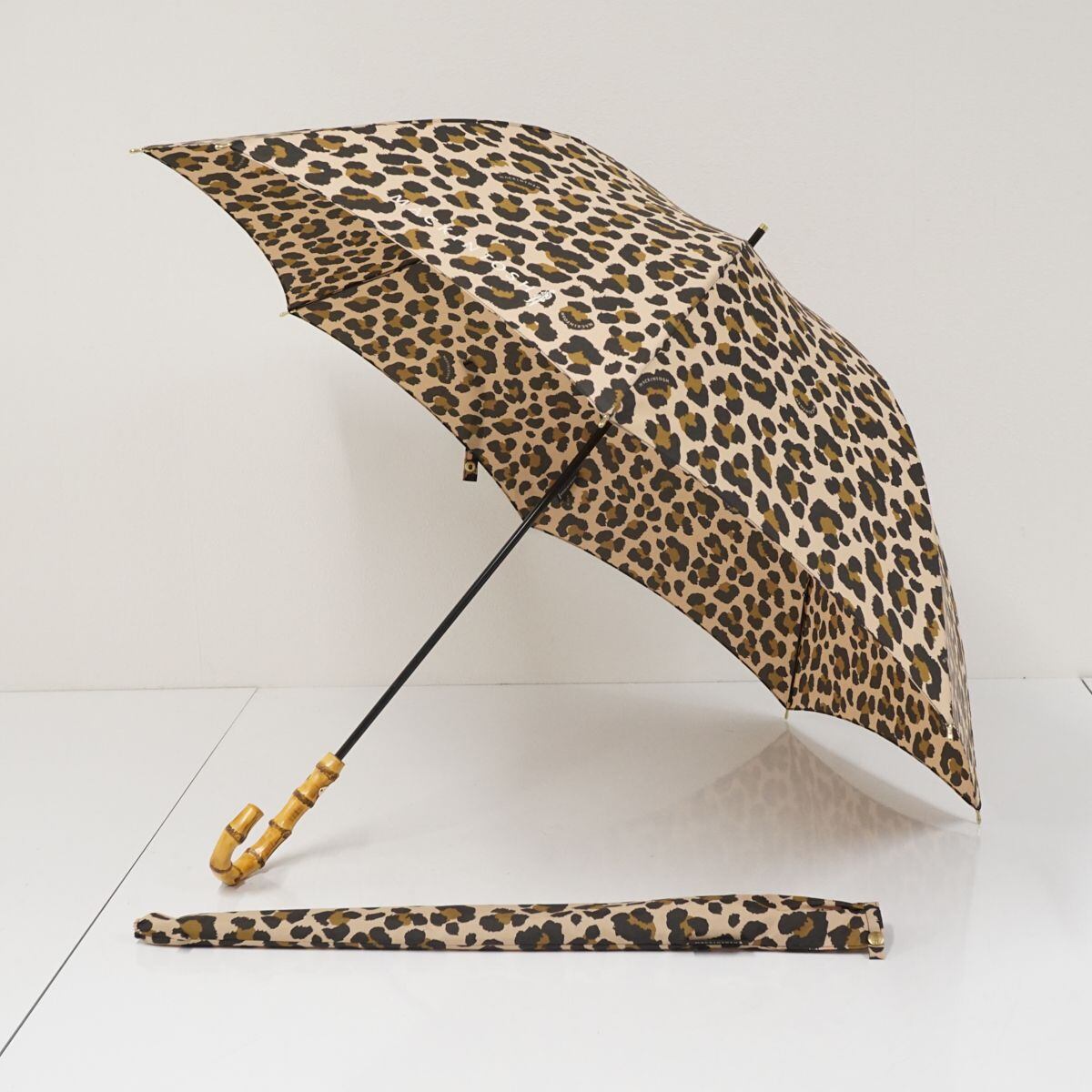 生地はレオパードパターンで、バンブーハンドルを合わせ、小さくスリムにまとめています。