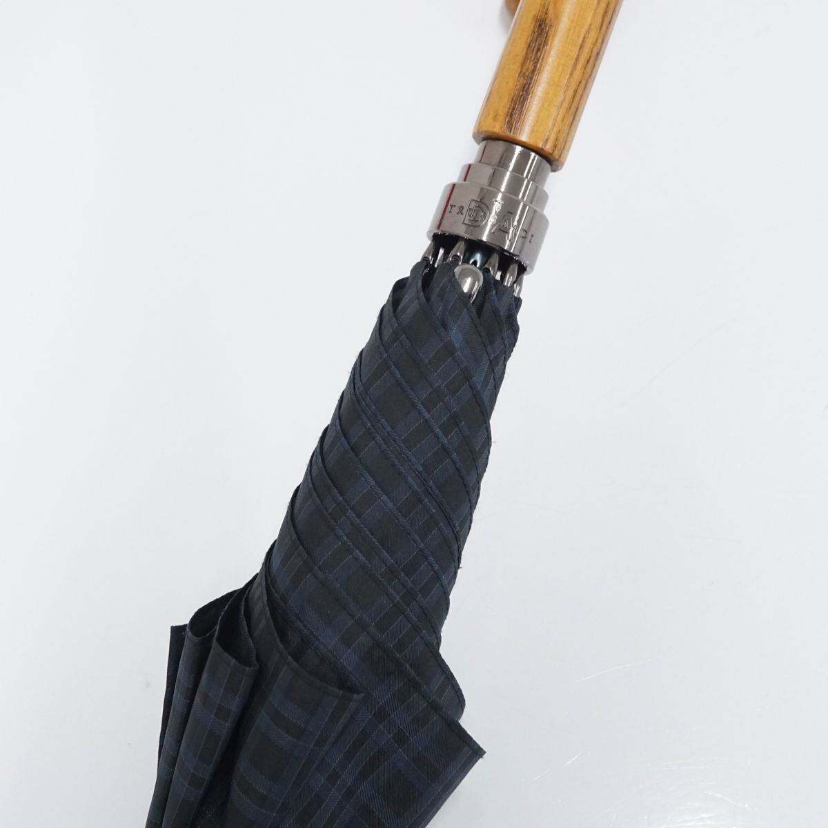 傘 DA TRUSSARDI トラサルディ USED美品 チェック ネイビー ジャンプ 紳士傘 メンズ 超大判 70cm S1721